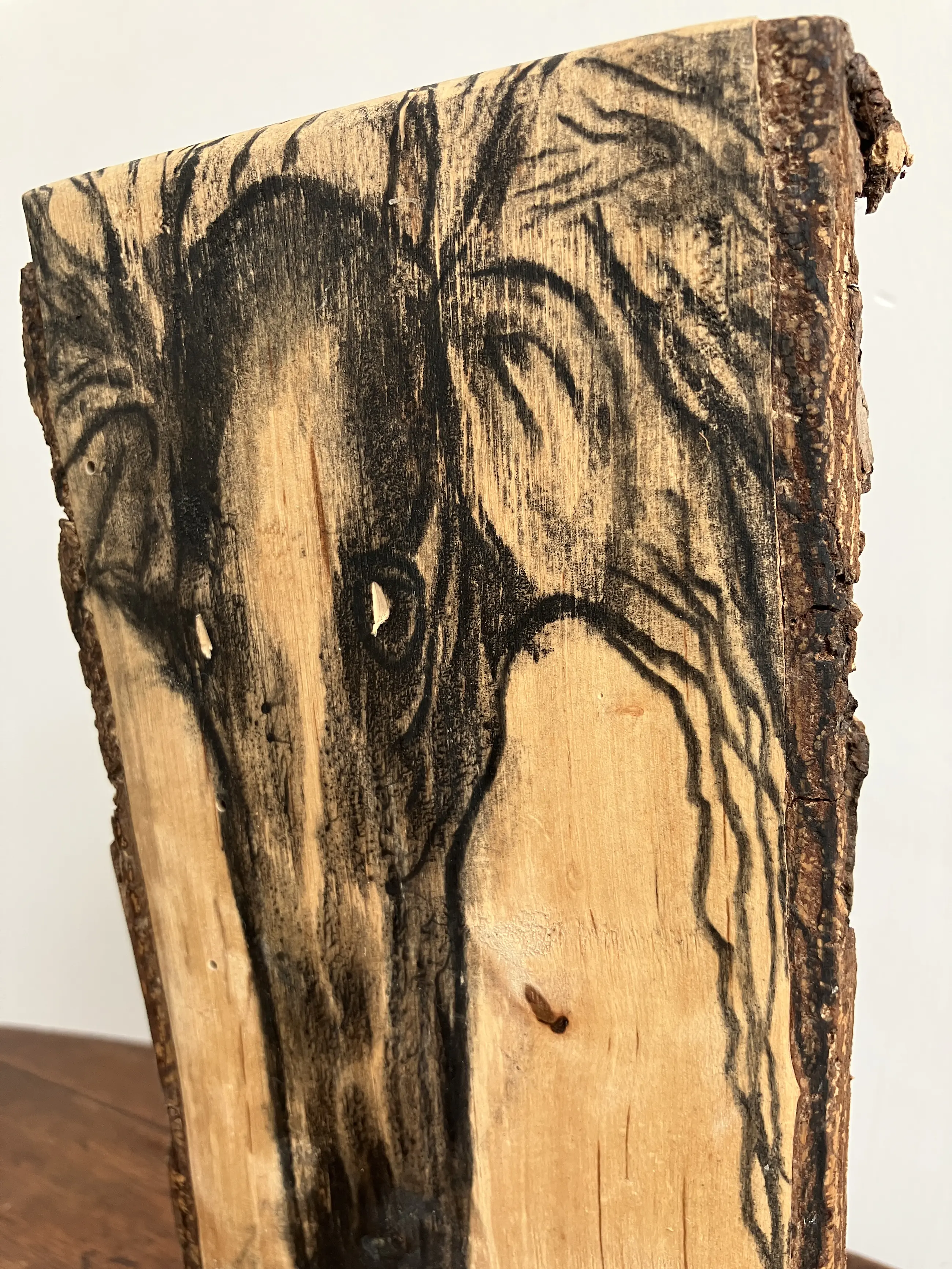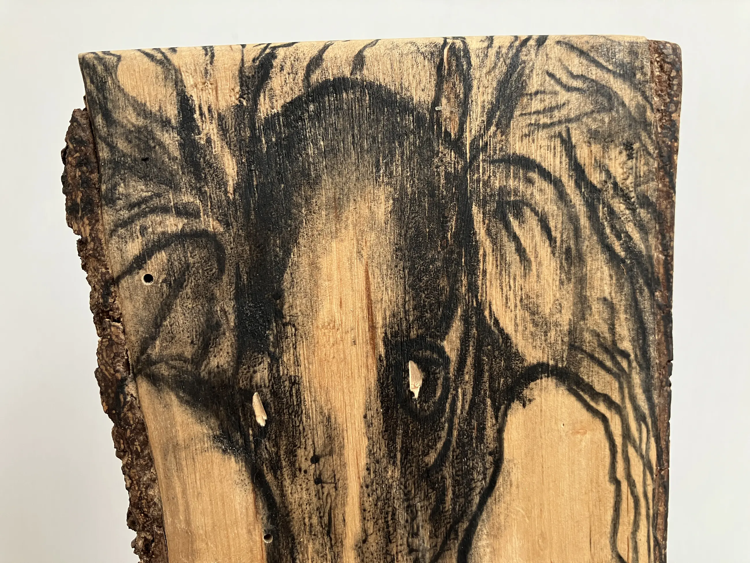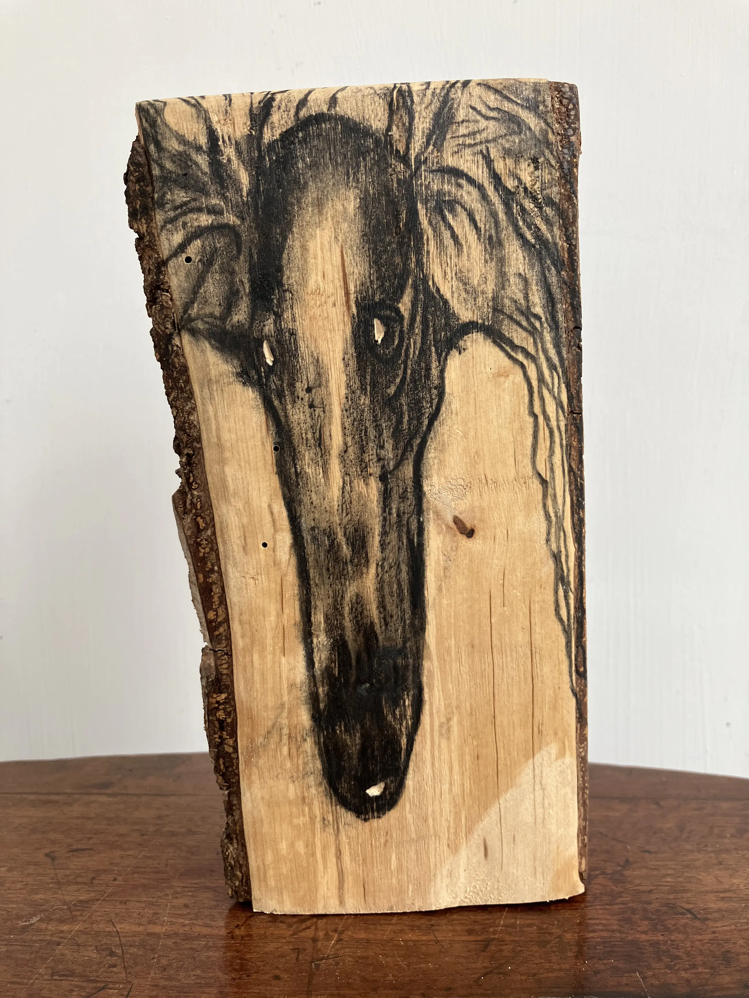 Greyhound (2015) Materiaal: houtskool op hout (gefixeerd) Met de hand gesigneerd Conditie: uitstekend (geen beschadigingen of verkleuringen)