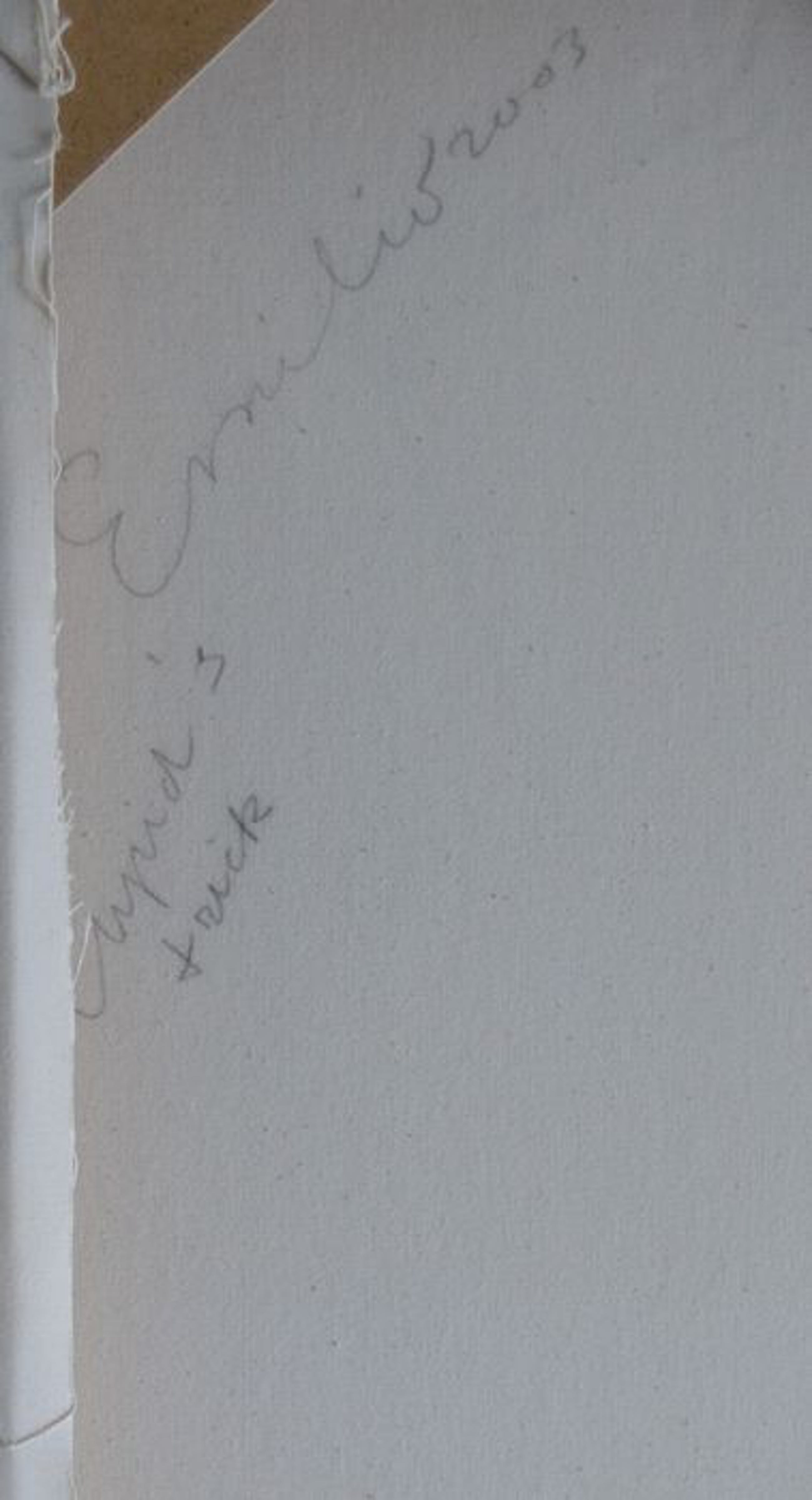 Origineel vrouwenportret van Emilio Kruithof uit 2003 in de voor hem typerende zorgvuldige en sensuele stijl waarmee hij veel succes heeft. Het werk is in perfecte staat en gespannen op een spieraam van 5cm dik. De zijkanten zijn zwart. Een lijst is niet nodig.