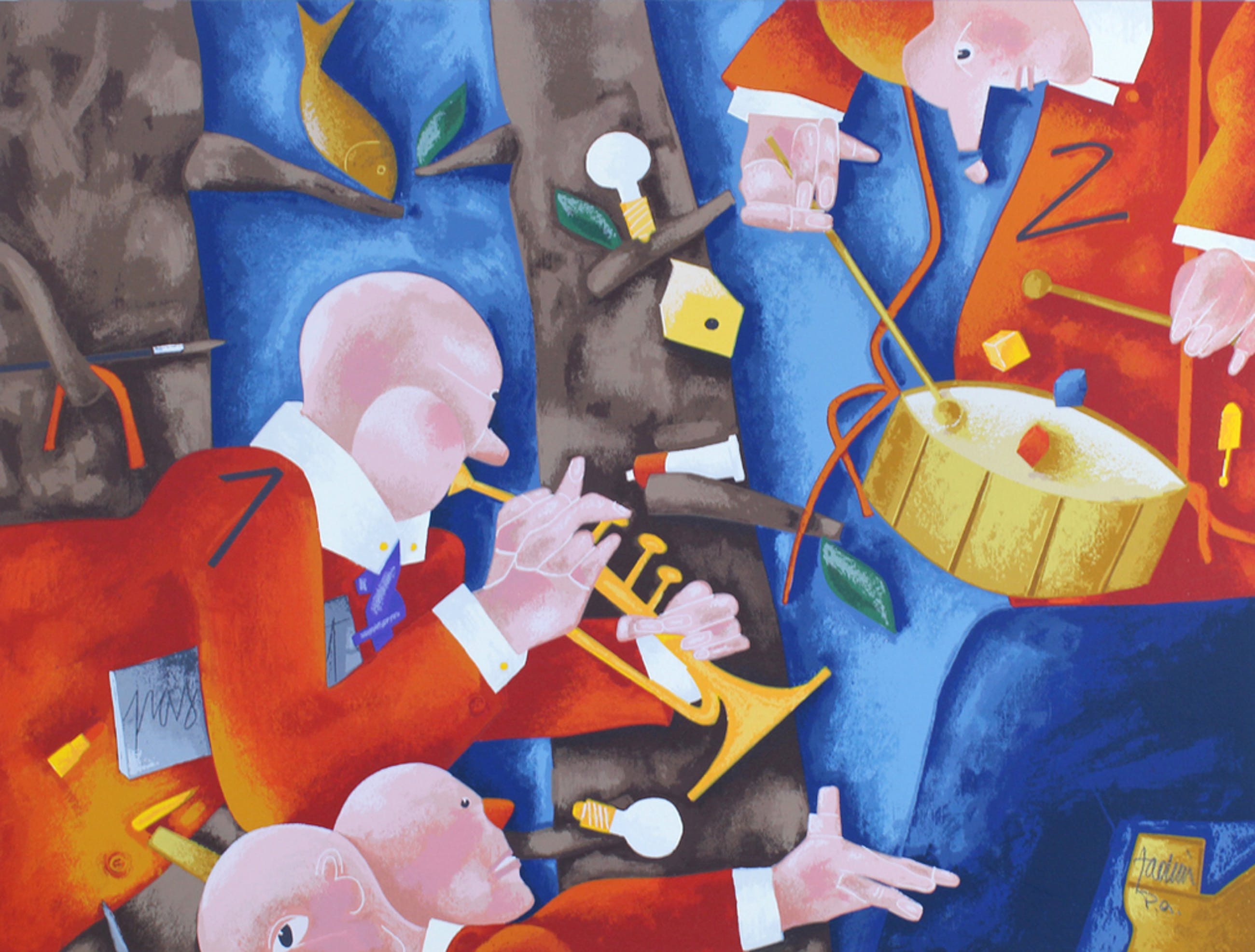 Painter, writer and art theorist. He has exhibited at the Venice Biennial in 1978 and 1982 and is famous also abroad. Close to the avant-garde of the "New Figuration" movement and, at the same time, attentive to Surrealism and Pop-Art, Tadini has divided his production into various thematic phases, mainly using a cold gamut of colours. The pessimism in his works is pointed out by a grotesque style in which the figures, made ghostly by the cool light, move in a muddled and feverish manner.