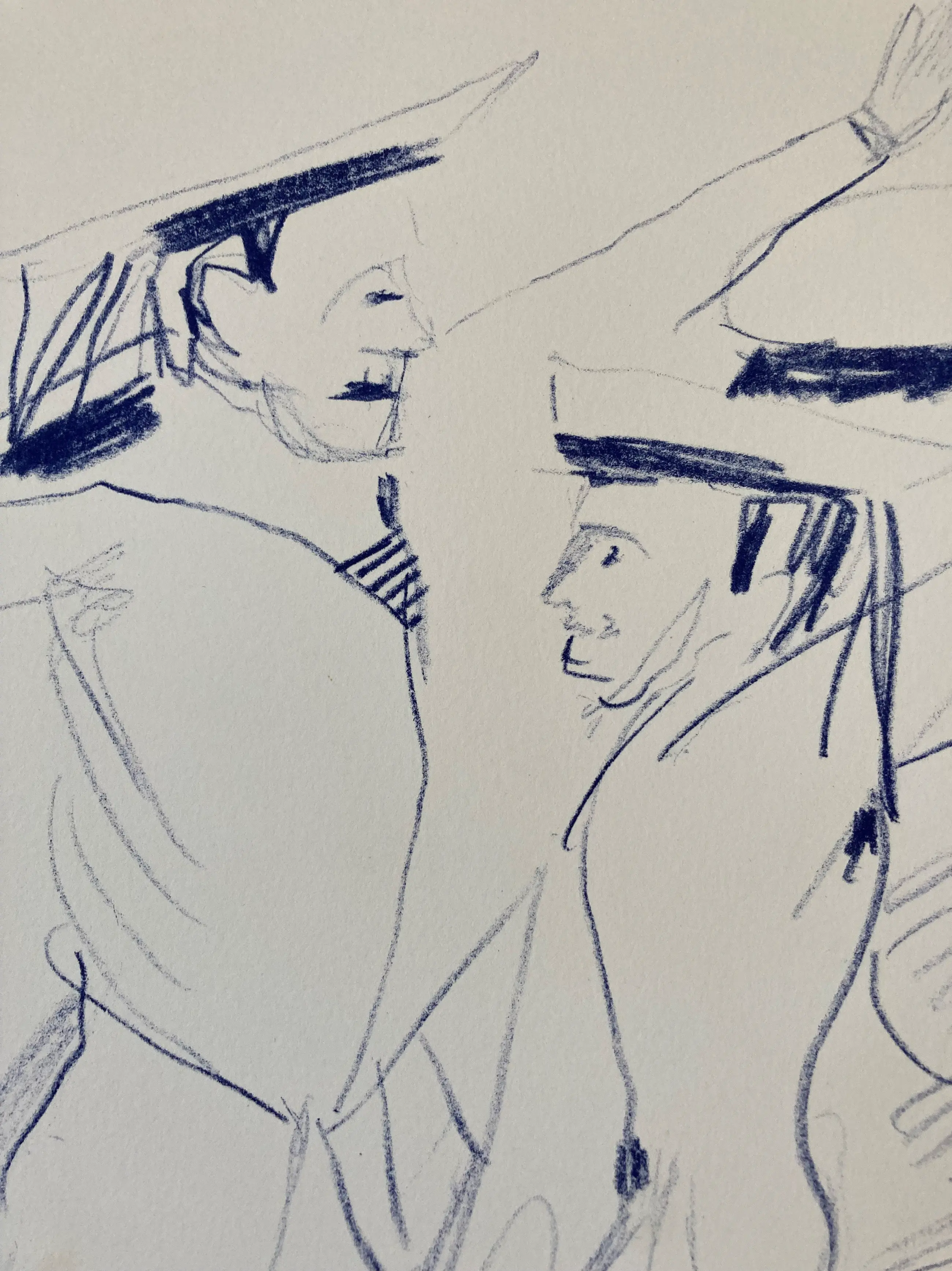 Mooi groot werk van Emo Verkerk. Titel: Dansende mariniers