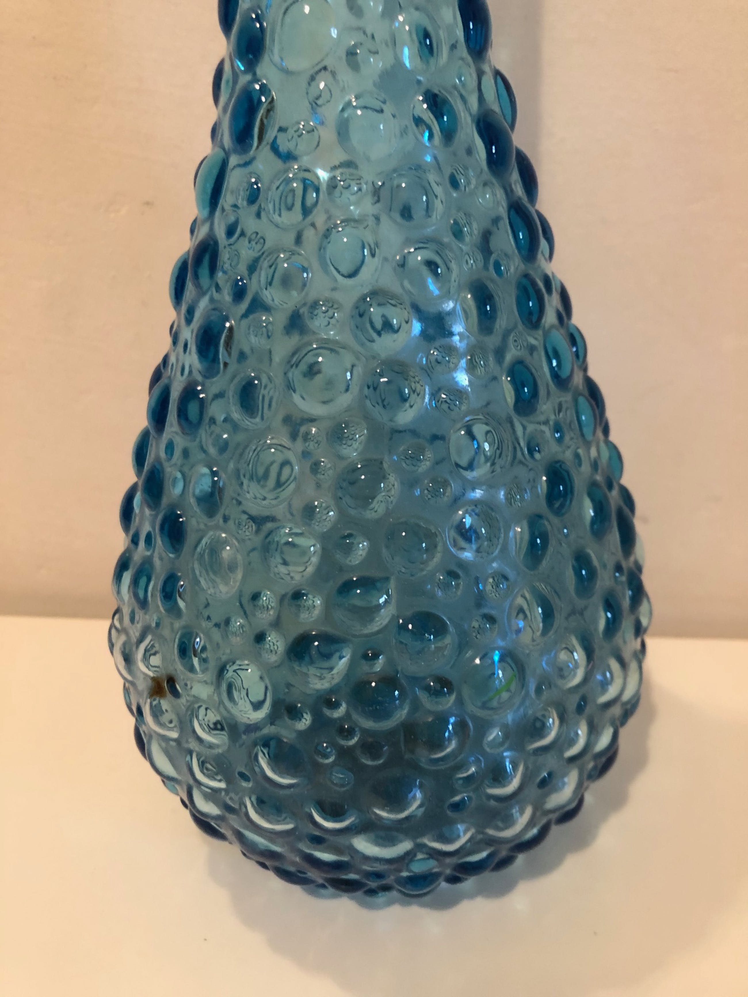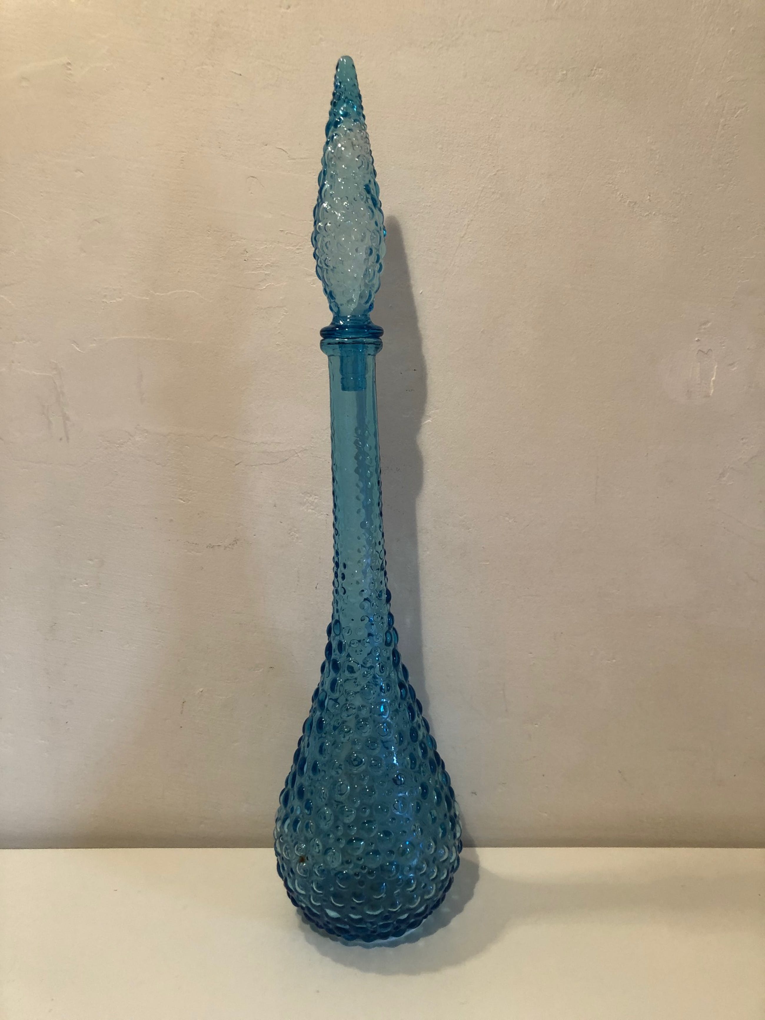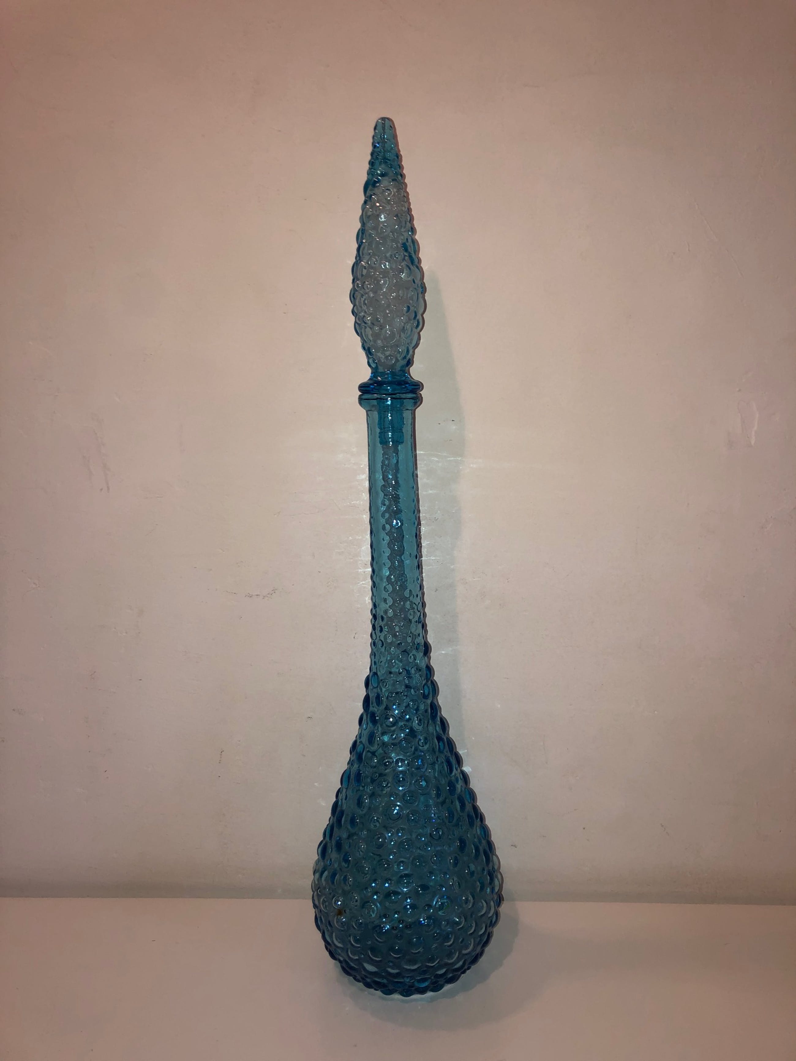 Puntgave Blue Bubble Empoli Genie fles/karaf, compleet met stopper. Jaren 60 van de vorige eeuw. Hoogte ca. 56 cm, doorsnede buik ca. 13 cm.