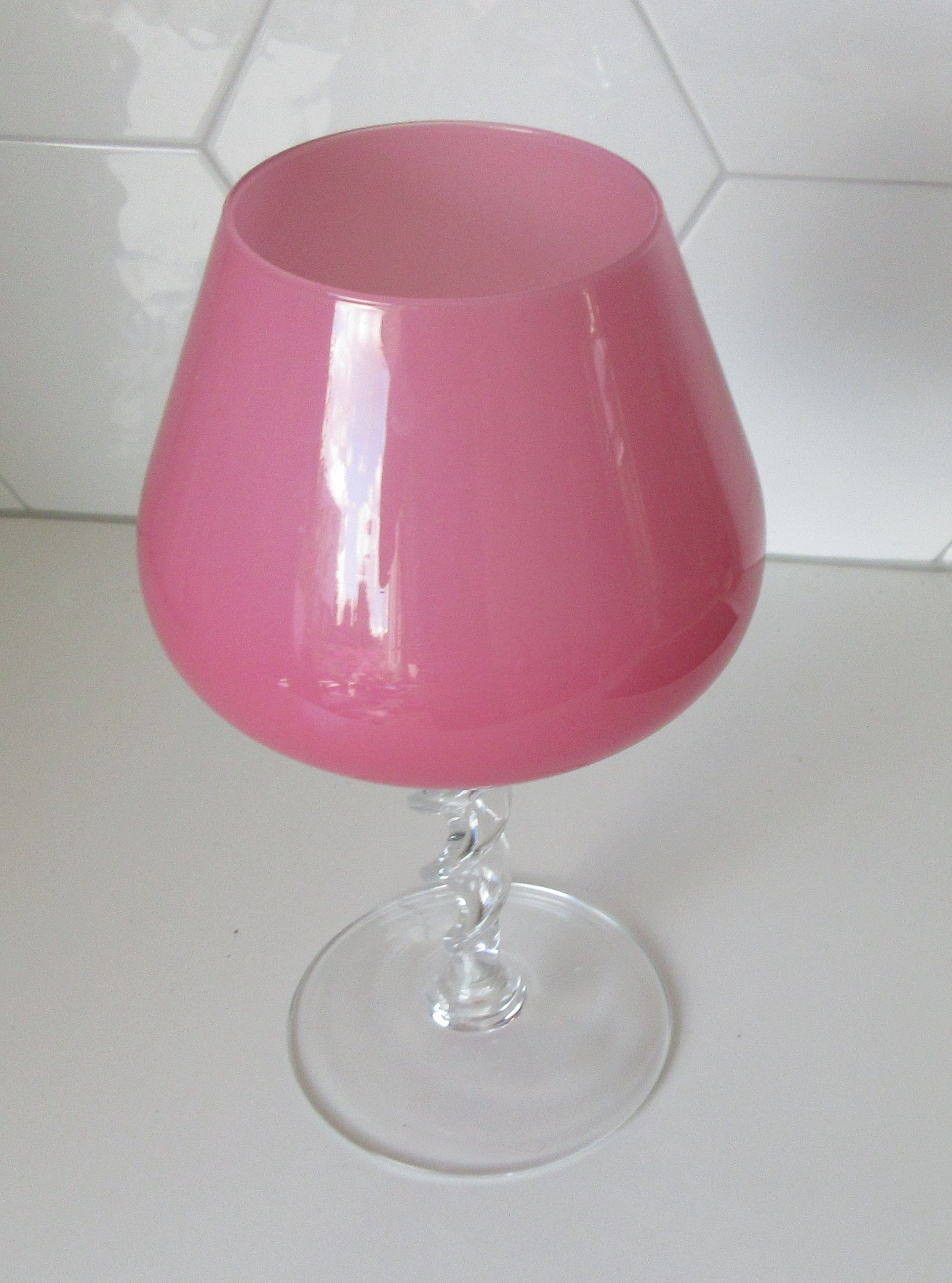 XL zachtroze bokaalvaas met gedraaide voet van Italiaans Empoli glas uit de jaren'60. Niet gemerkt, in prachtige conditie.