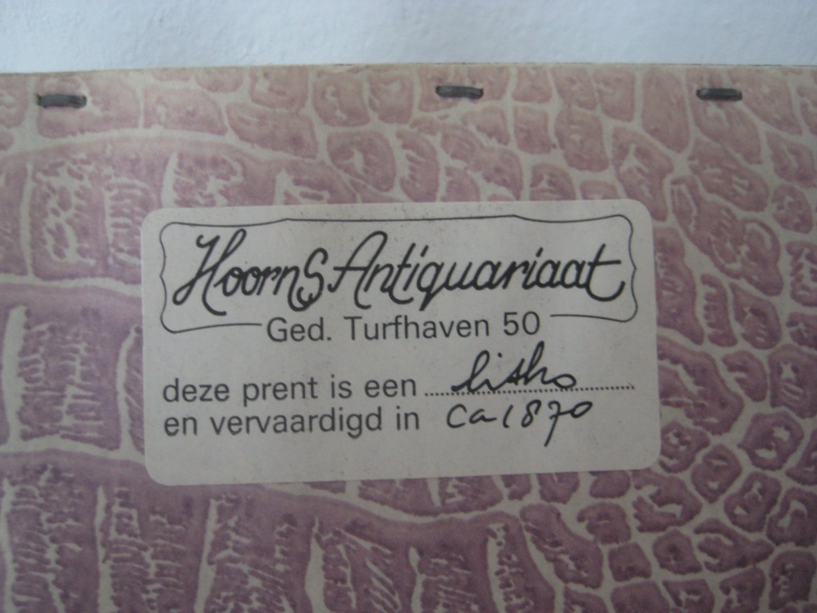 Mooie litho in fraaie passepartout en professioneel ingelijst. Rechtsonderin gesigneerd; Litho van Emrik & Binger, Haarlem. In zeer goede staat; geen enkele beschadiging, chipje oid. Zie foto's. Op sommige foto's lijkt het alsof de litho verbleekt/verkleurd is maar dit is slechts lichtval en spiegeling bij het fotograferen.
