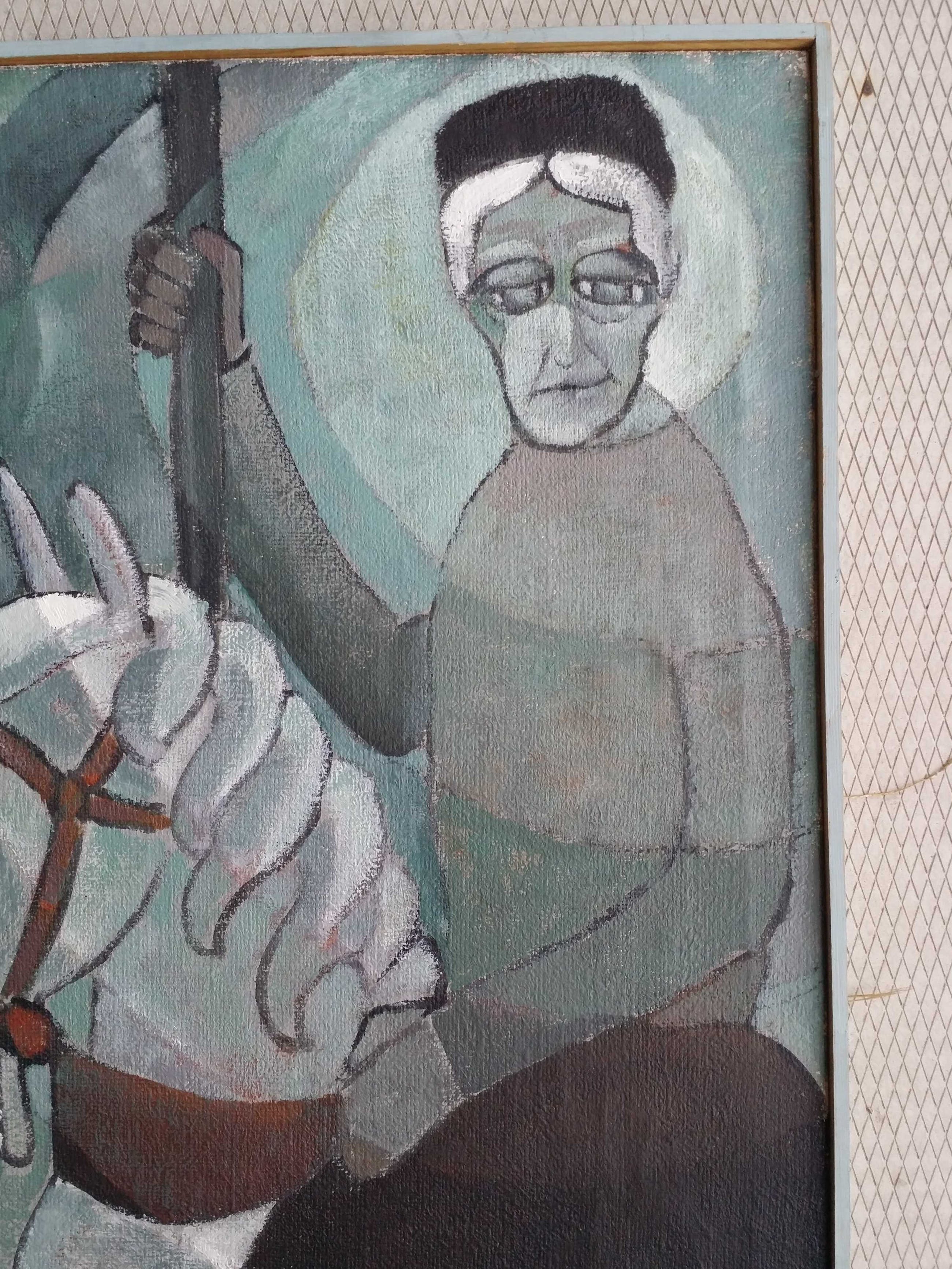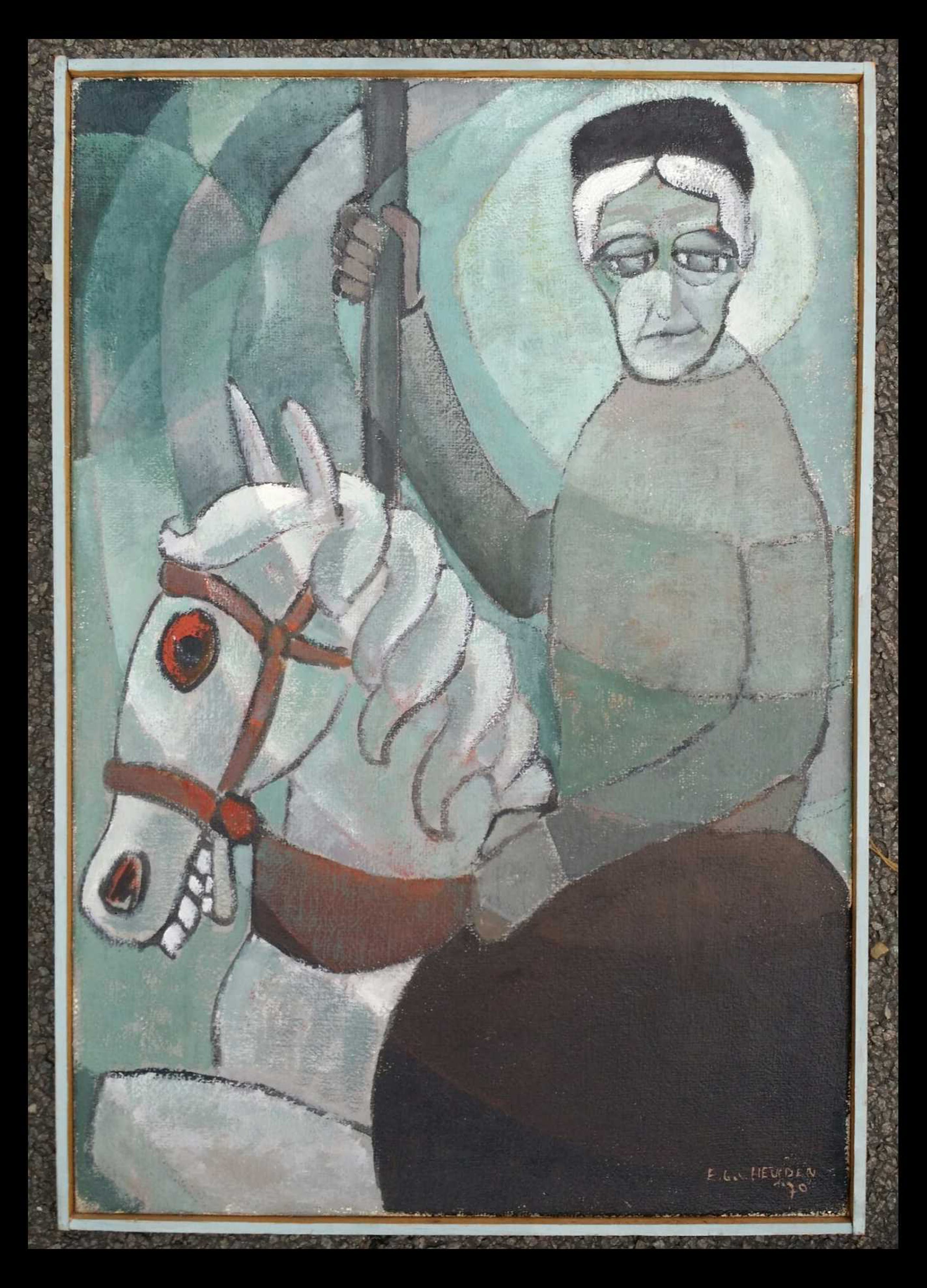Bijzonder werk.Titel: Bejaard op draaimolenpaard.Zie foto's.