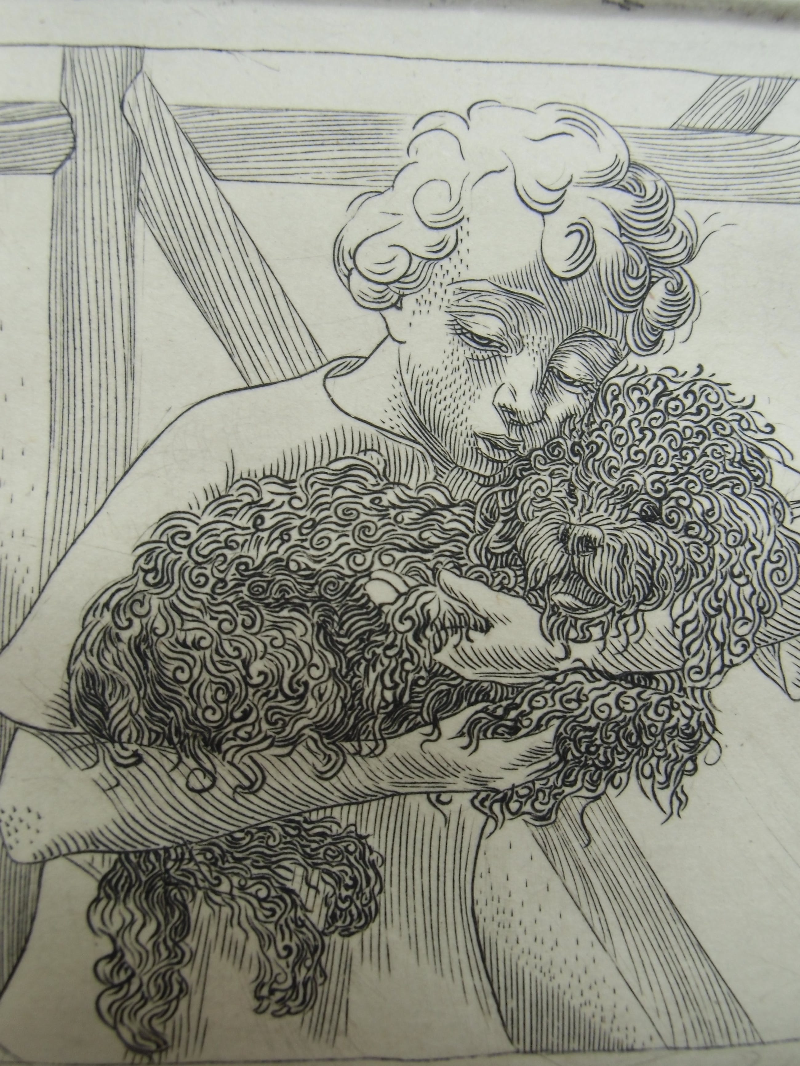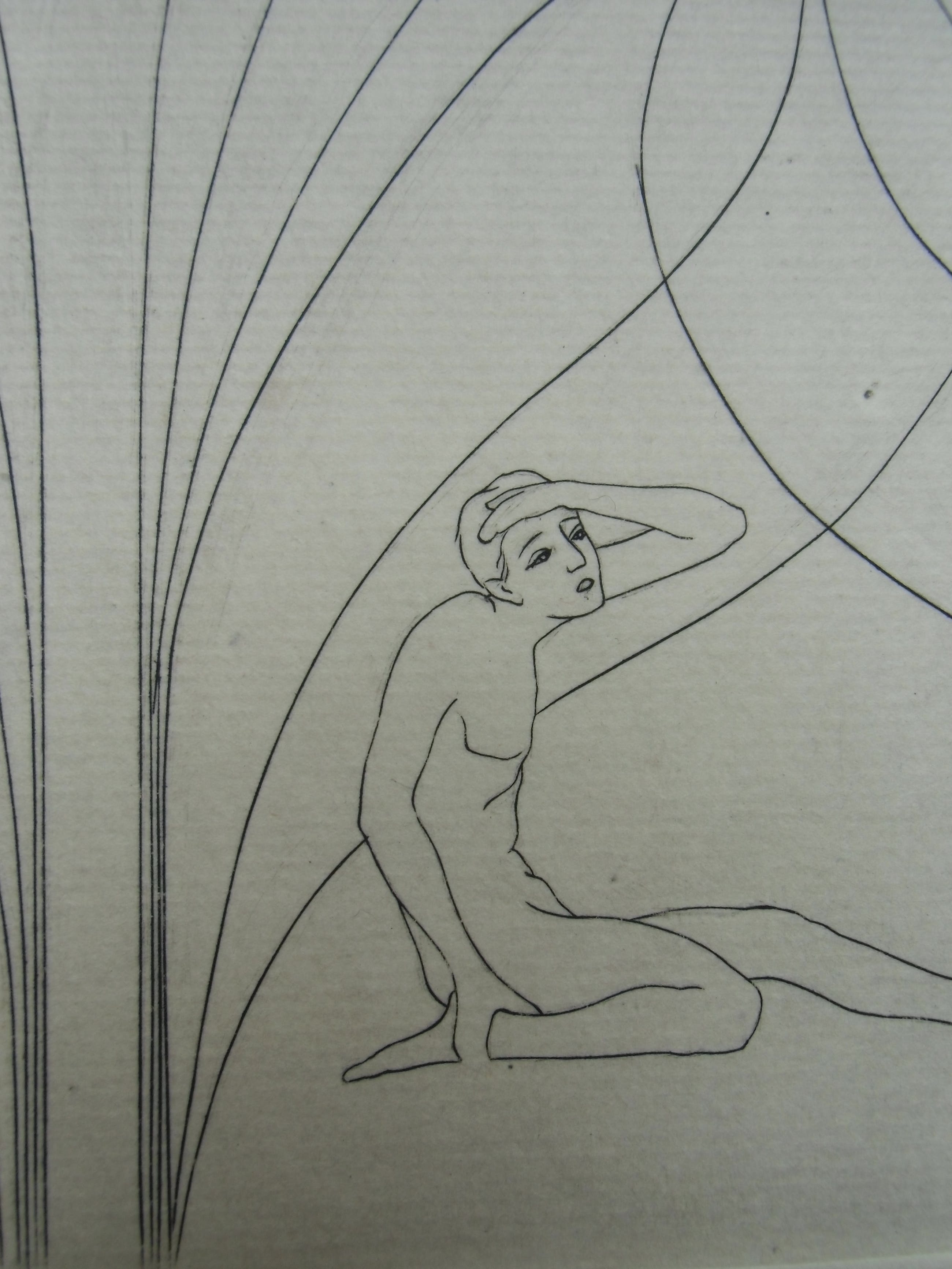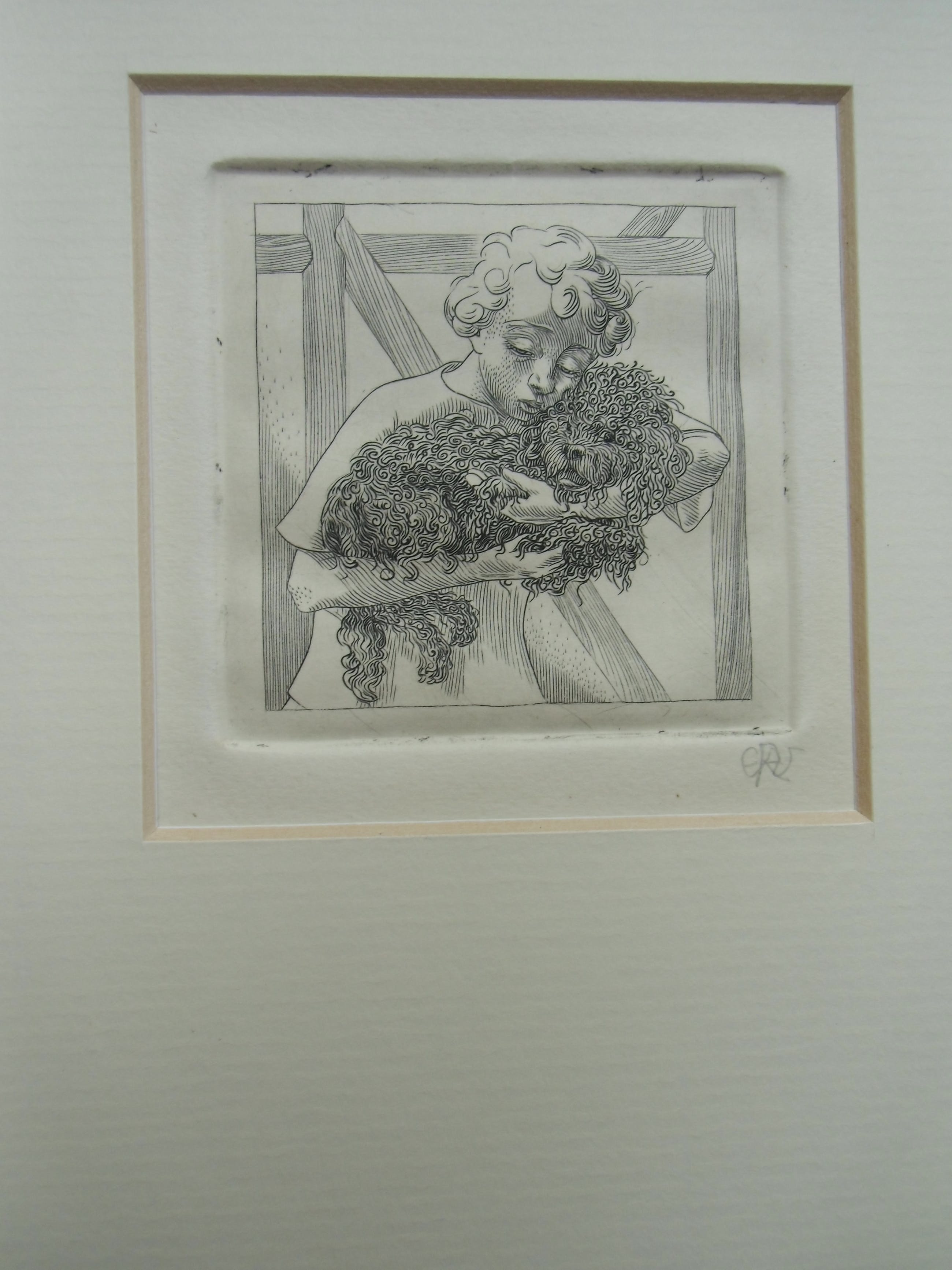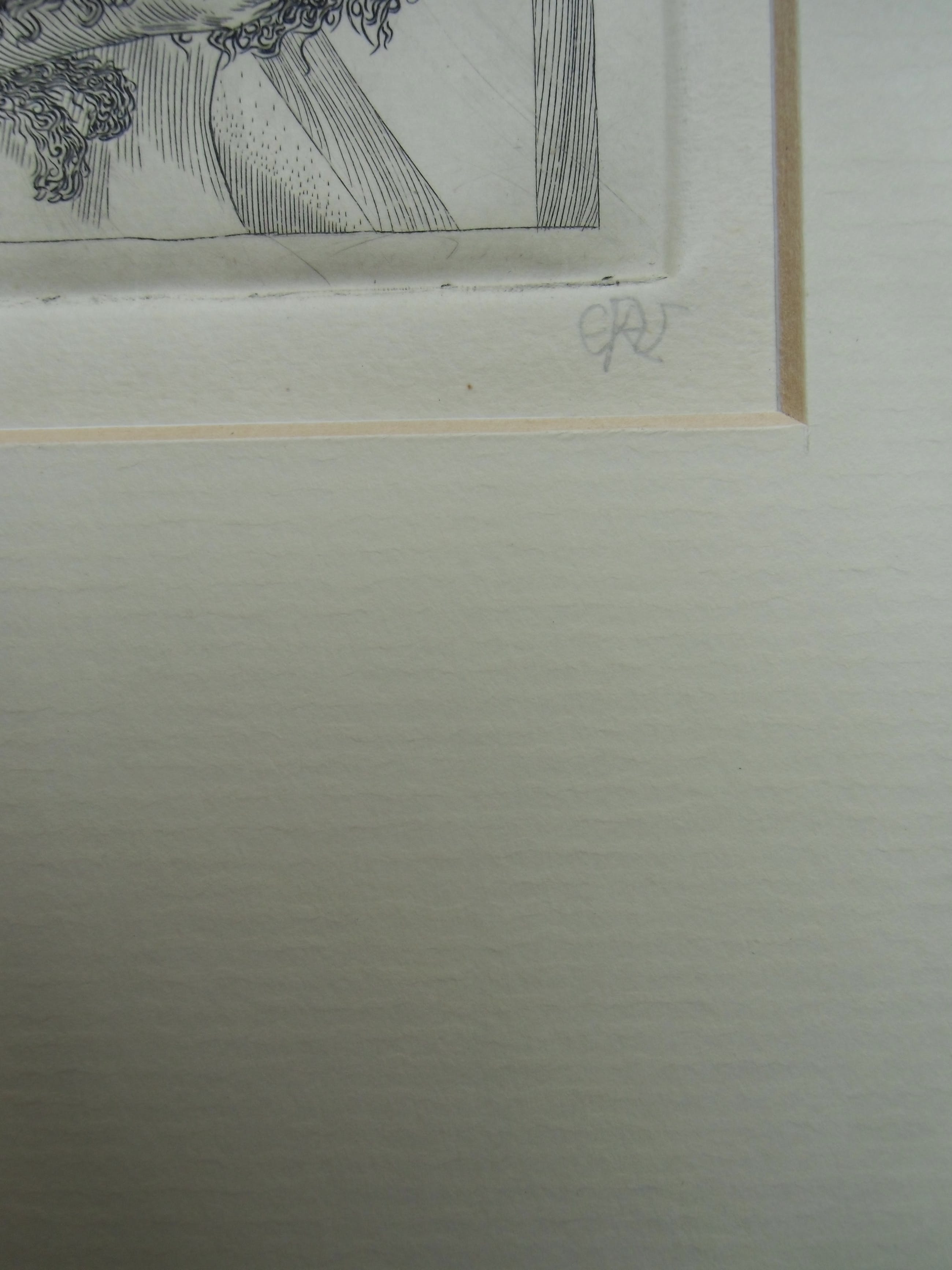 Van Engelien Reitsma-Valenca worden hier twee kopergravures aangeboden. - Vrouwelijk naakt met opgeheven armen. Gedateerd 1918. Gesigneerd met potlood en opgenomen in passepartout met achtervel. Uitstekende conditie.Deze kopergravure is geïnspireerd door de Wijzingen van R.Tagore. - Jongen met poedel in zijn armen. Gedateerd 1933. Beeldafmeting 7.8 x 7.8 cm. In passepartout met de afmetingen 28 x 24 cm. Monogram in potlood.(gegevens afkomstig uit Michel Kersten "De Nederlandse Kopergravure ").