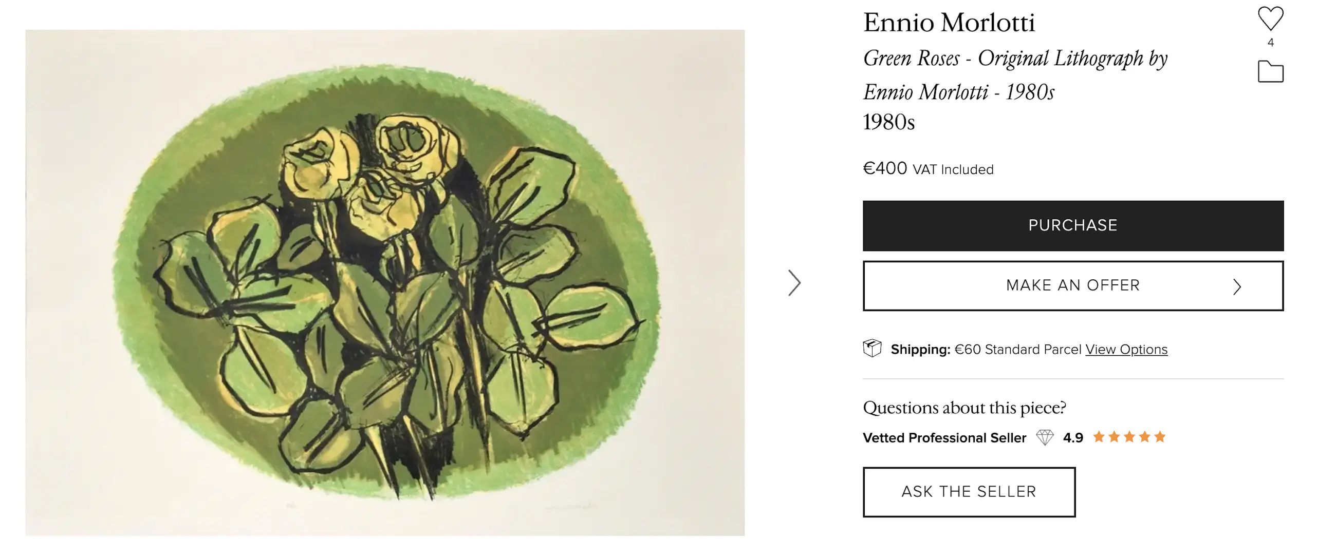 Ennio Morlotti "White Roses" Lithografie, oplage III/XXV 50x70 cm Gesigneerd en genummerd in potlood. Uitgeversstempel. (Edizioni Barsotti Lucca) Het werk is in goede staat maar heeft enkele sporen van vorige inlijsting aan achterzijde.