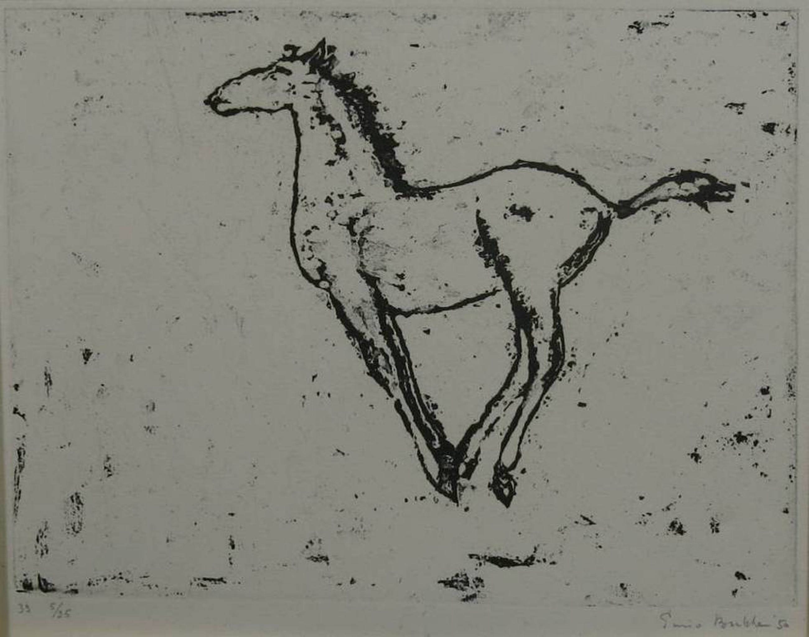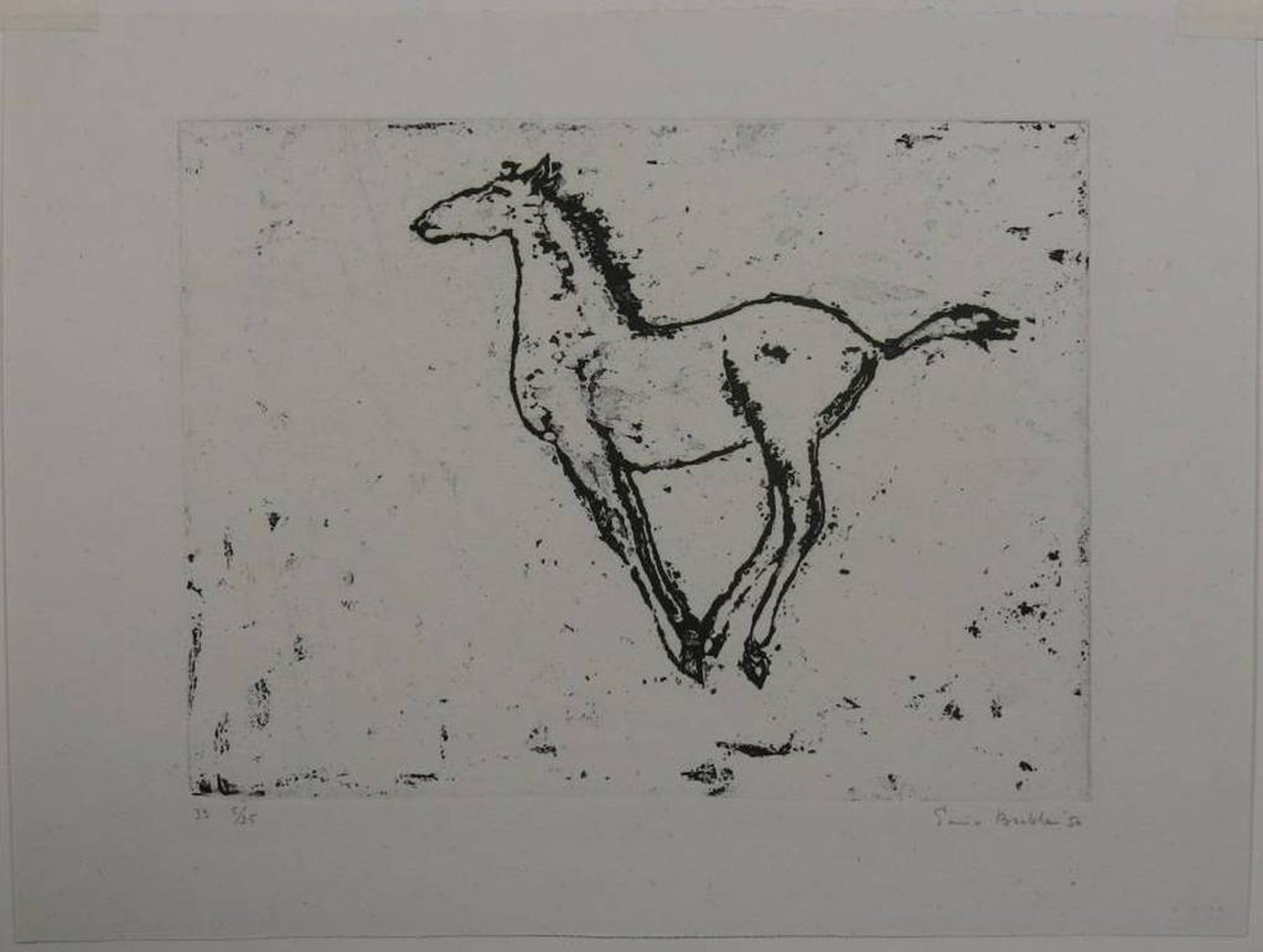 Zeer mooie verbeelding van een springend paard in een ets van Enno Brokke