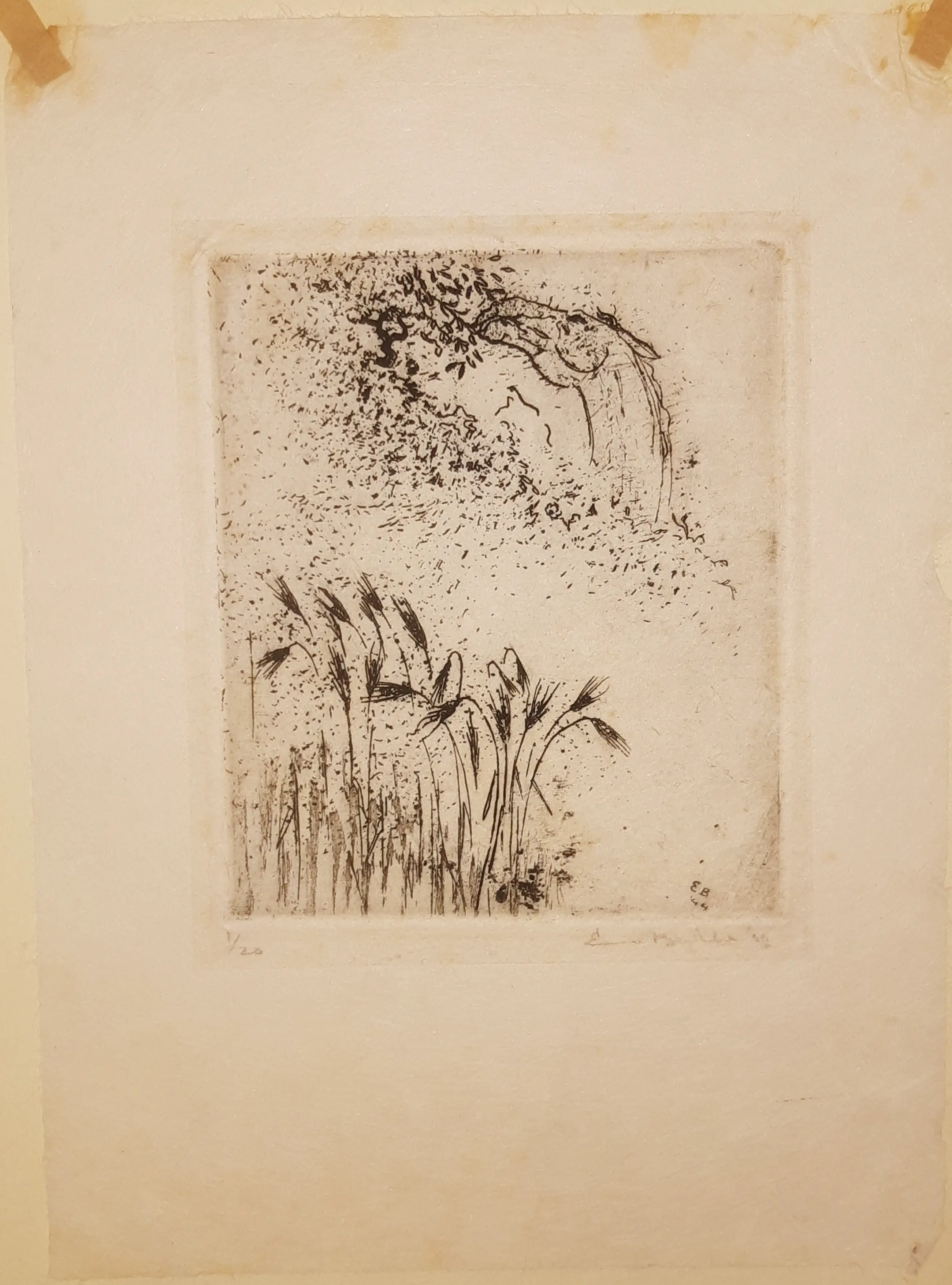 Mooie ets op geschept papier van Enno Brokke. Ets nr. 1 van 20. Rechtsonder met potlood gesigneerd.