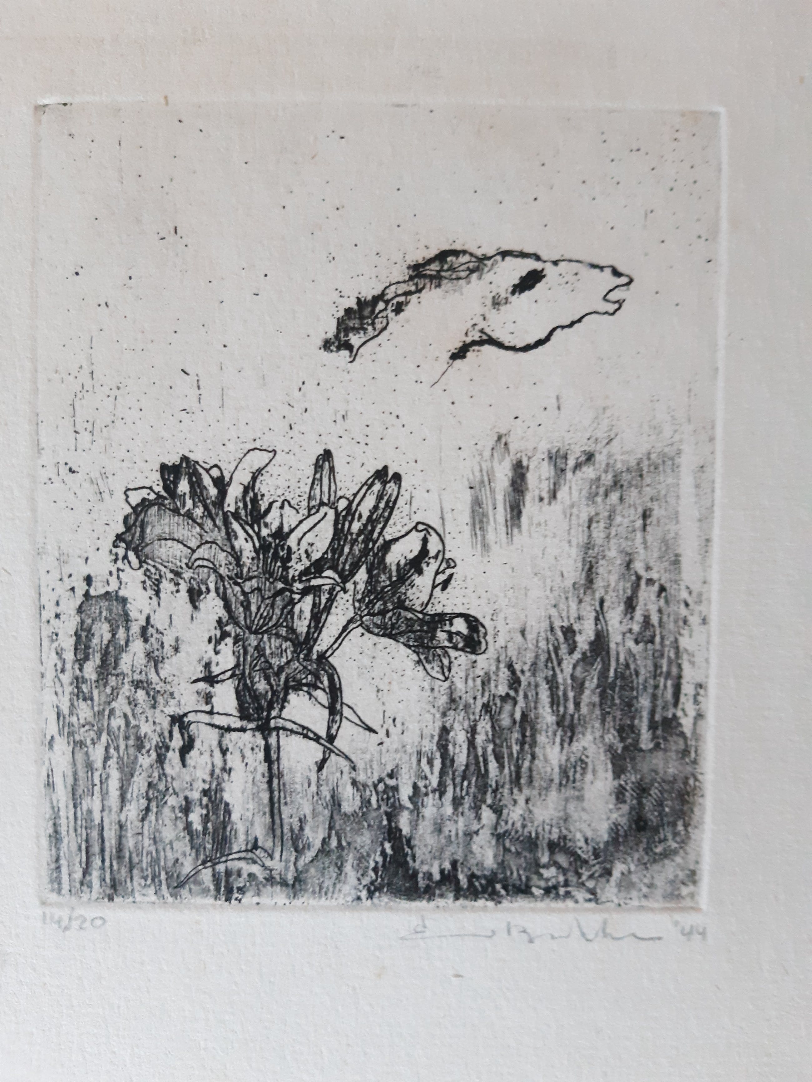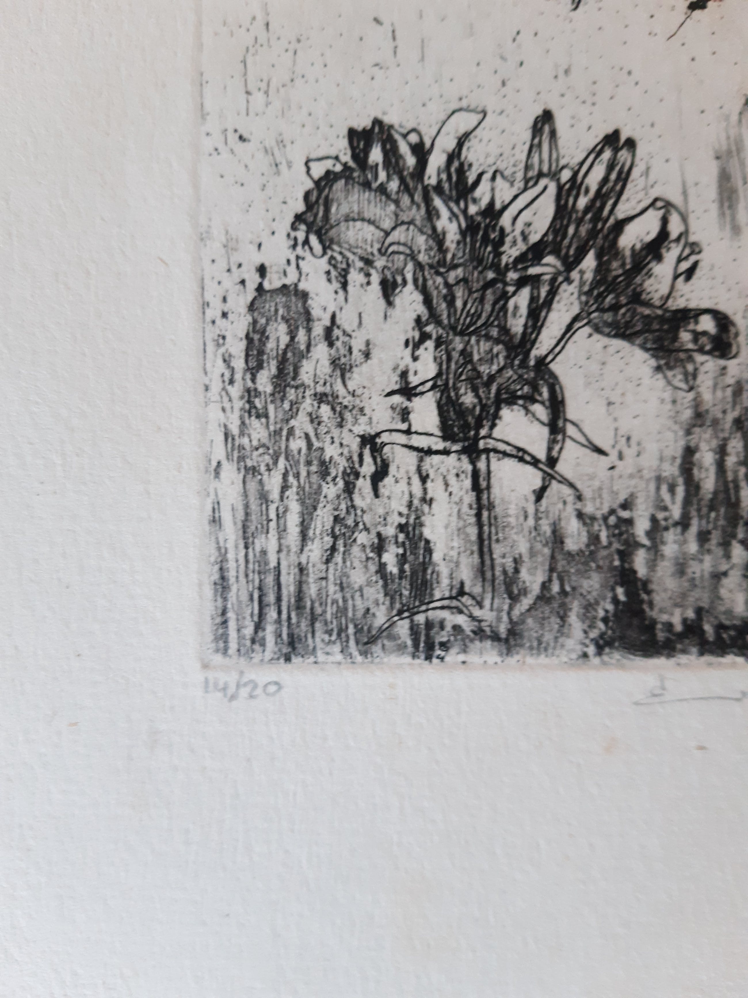 Mooie ets op geschept papier van Enno Brokke. Ets nr. 14 van 20. Rechtsonder met potlood gesigneerd.