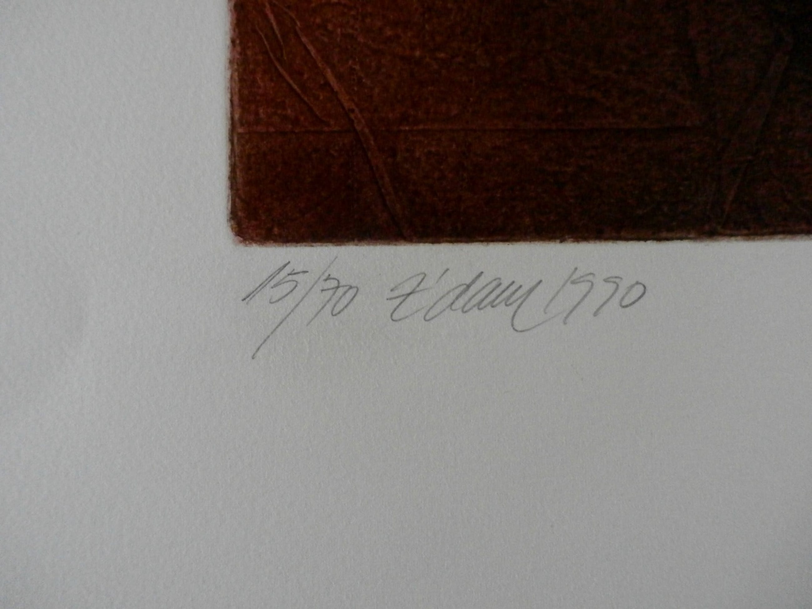 Grote Ets/aquatint van Adsera Riba. Afmetingen werk: H91 x b74,5 cm. Afmetingen voorstelling: H69 x b54,5 cm. Het werk is rechtsonder gesigneerd door de kunstenaar.Nummer: 15/70. Jaar: 1990. De authenticiteit van het, aangeboden, werk wordt voor 100% gegarandeerd. Een certificaat van echtheid kan, op aanvraag, worden meegestuurd.