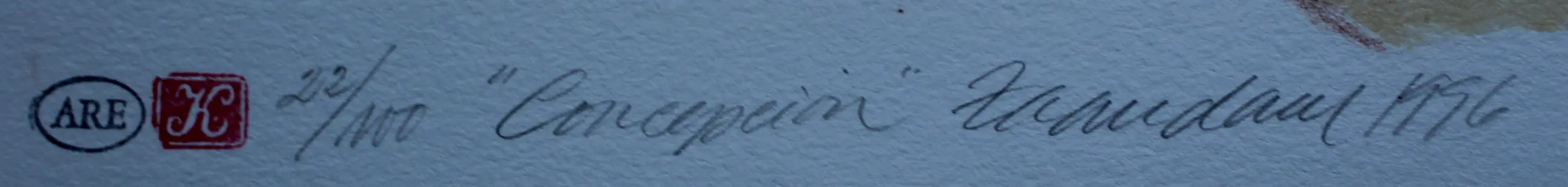 Prachtige litho/steendruk van Adsera Riba uit 1996. Afmetingen blad: H65 x b50cm. Afmetingen voorstelling: H50 x b 36,5cm. Oplage: 22/100. Titel: Concepcion. Papier: BKF Rives 250 grams. Uitgegeven door Kunstcentrum Zaanstad. Het werk is linksonder, met potlood, gesigneerd door de kunstenaar. De authenticiteit van het aangeboden werk wordt volledig gegarandeerd. Een certificaat van echtheid kan, op aanvraag, worden gemaild.