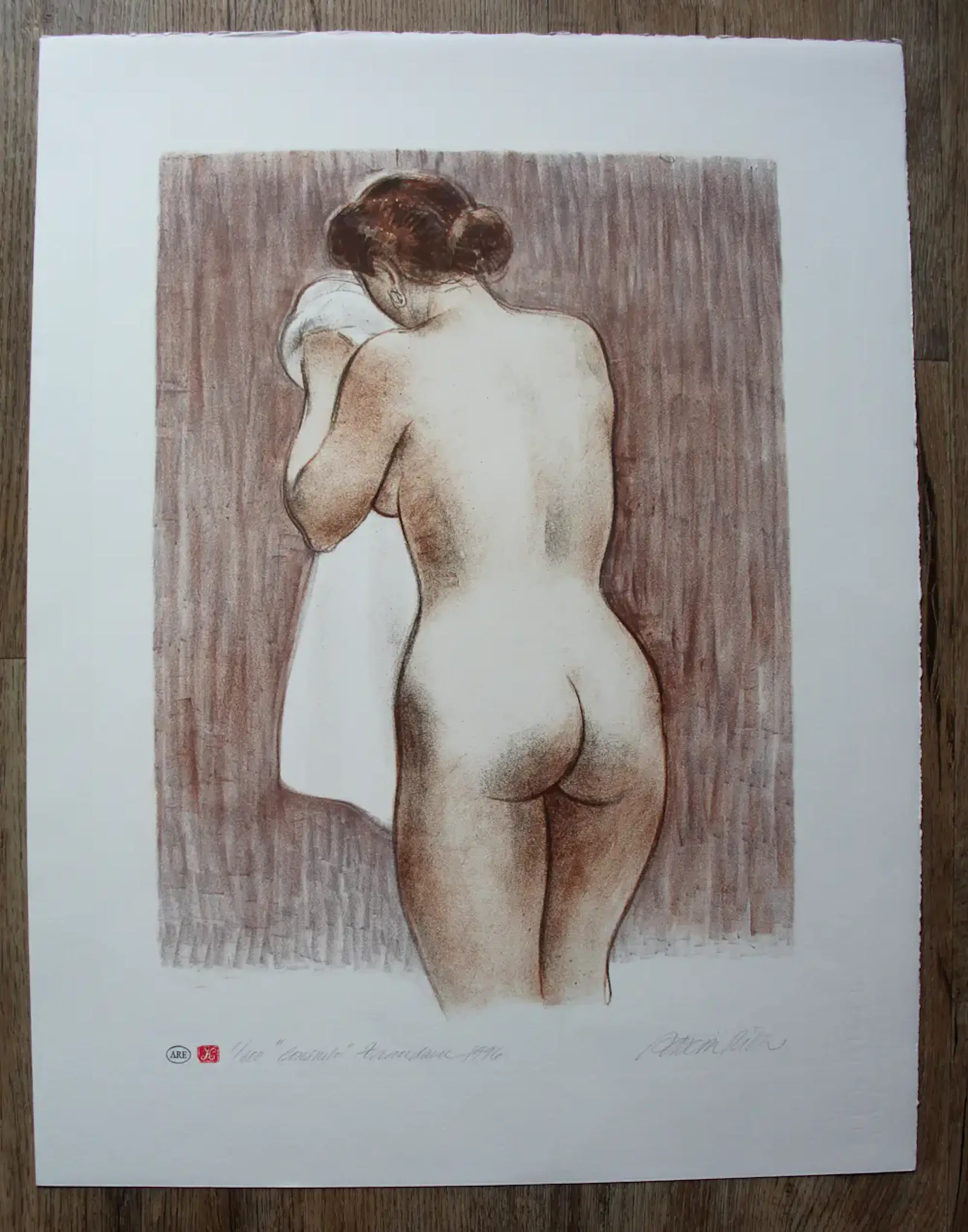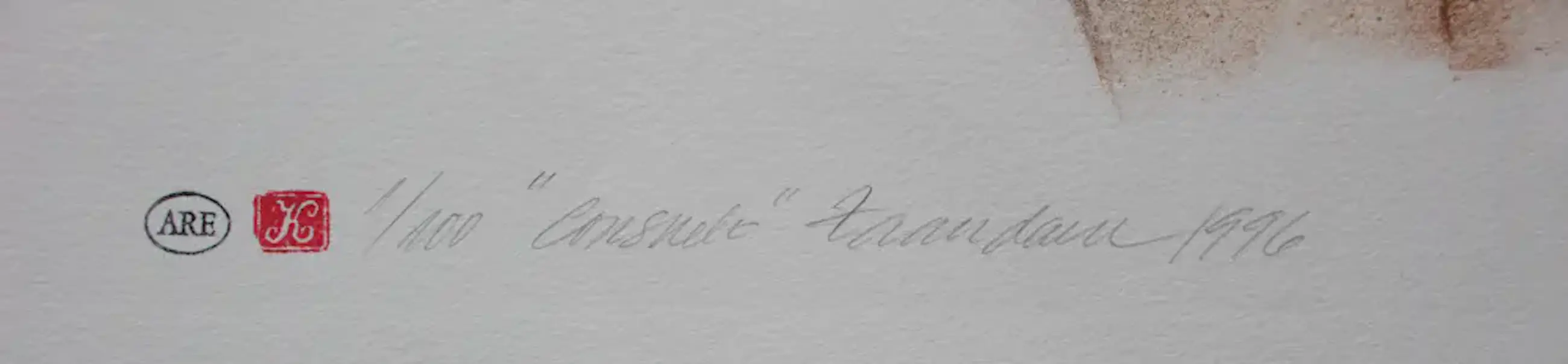 Prachtige litho/steendruk van Adsera Riba uit 1996. Afmetingen blad: H65 x b50cm. Afmetingen voorstelling: H50 x b 36,5cm. Oplage: 1/100(nr kan afwijken ivm meerdere exemplaren in bezit). Titel: Concepcion. Papier: BKF Rives 250 grams. Uitgegeven door Kunstcentrum Zaanstad. Het werk is linksonder, met potlood, gesigneerd door de kunstenaar. De authenticiteit van het aangeboden werk wordt volledig gegarandeerd. Een certificaat van echtheid kan, op aanvraag, worden gemaild.