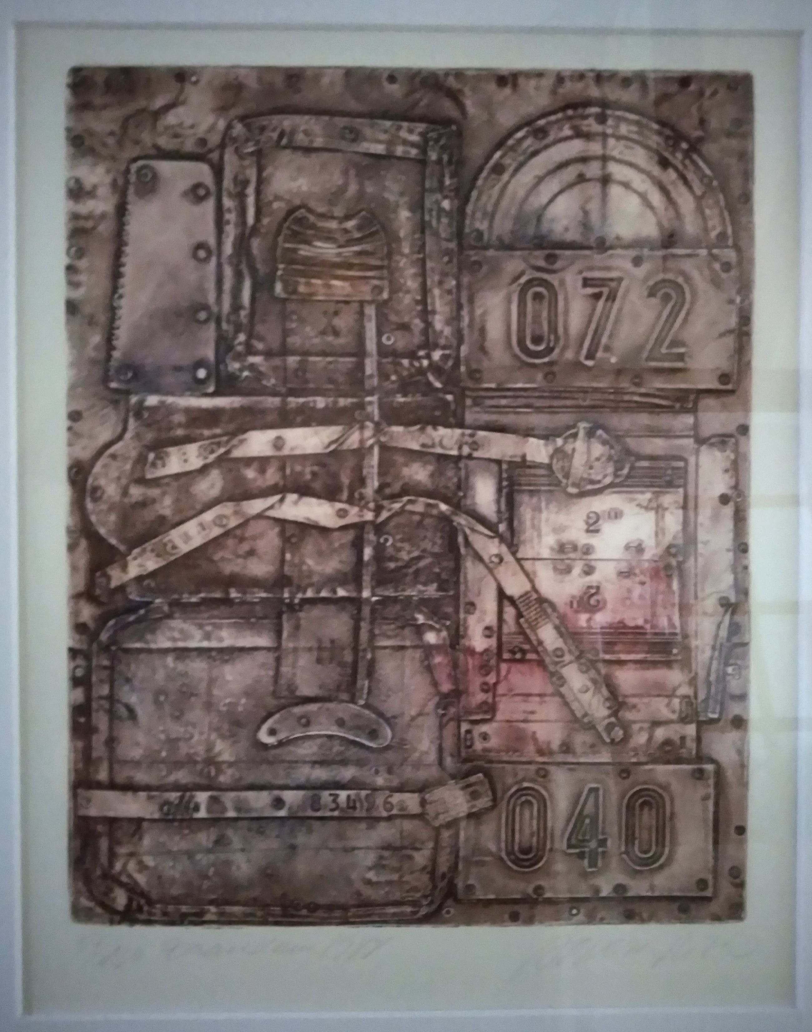 Naar deze ets, in rood/bruine uitvoering, kan je blijven kijken. Op kunstige wijze is er optisch diepte in aangebracht.