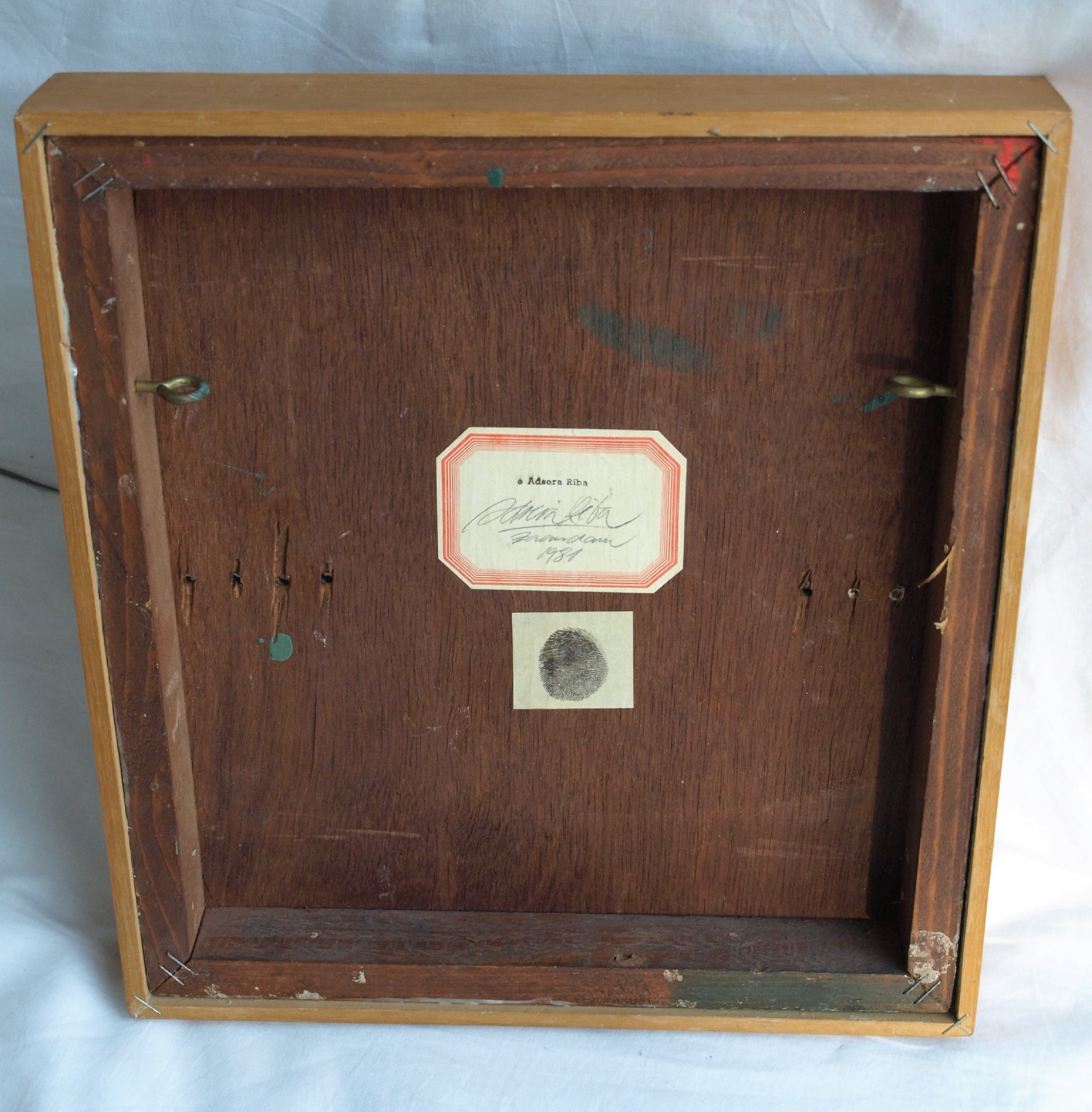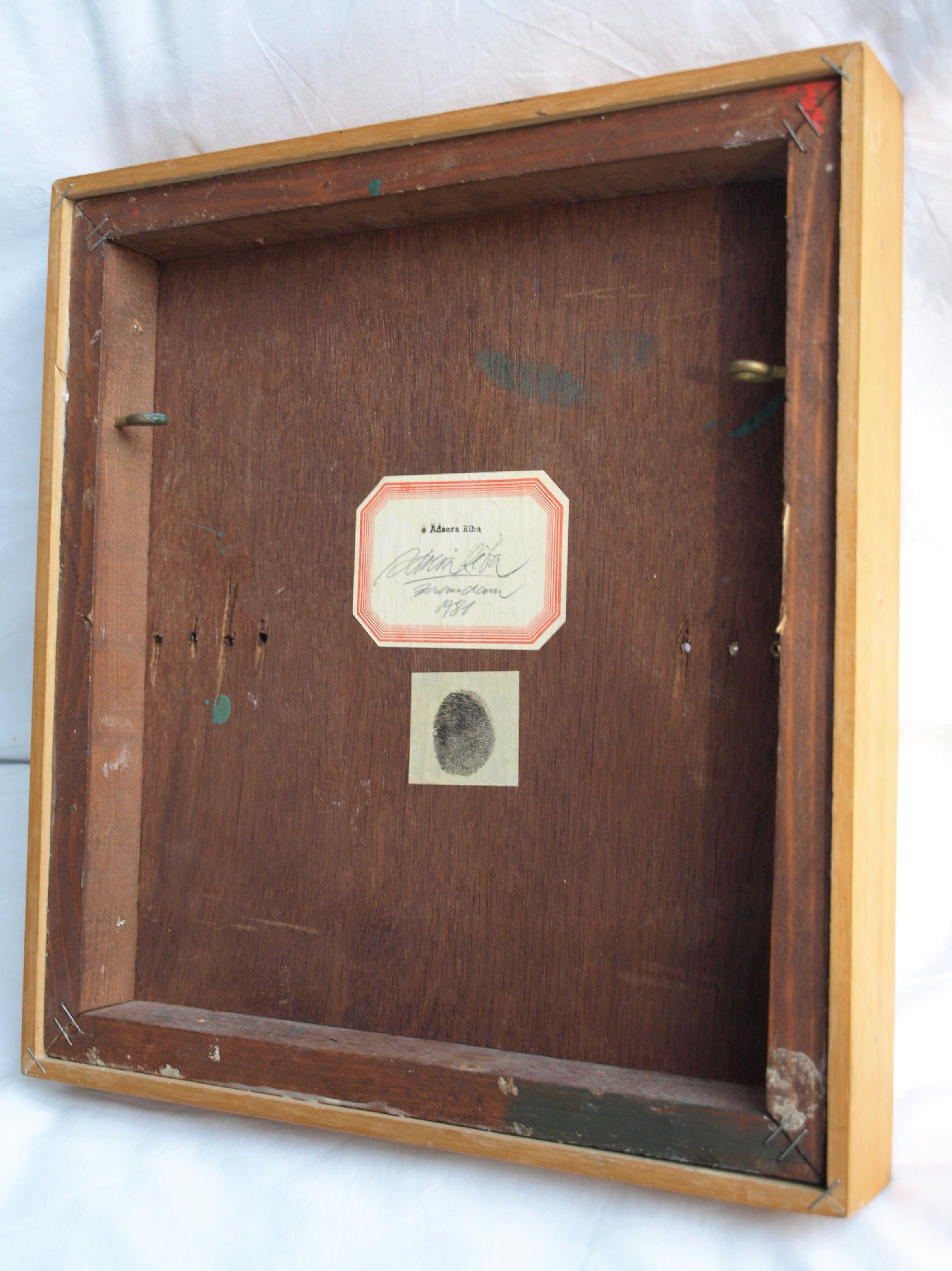 -Techniek: een combinatie van hars, verf, metaal en hout in een houten lijst.