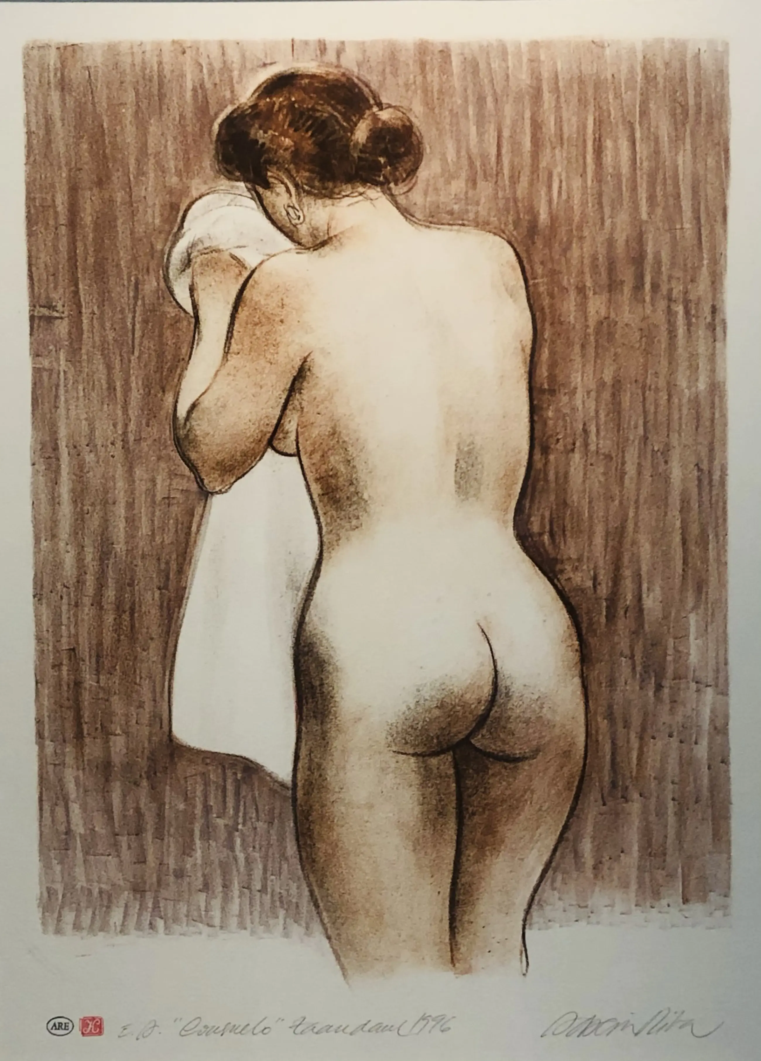 Mooi naakt van Riba met lijst. Een werk dat zo aan de muur kan worden gehangen! U kunt het werk vooraf komen bekijken in de Schatkamer van galerie Rotor in Gorcum, na aankoop afhalen of verzenden per koerier met lijst of zonder lijst per aangetekende post toegestuurd krijgen. Het werk zit in een prima maar gebruikte lijst. De foto is door het glas van de lijst heen genomen.