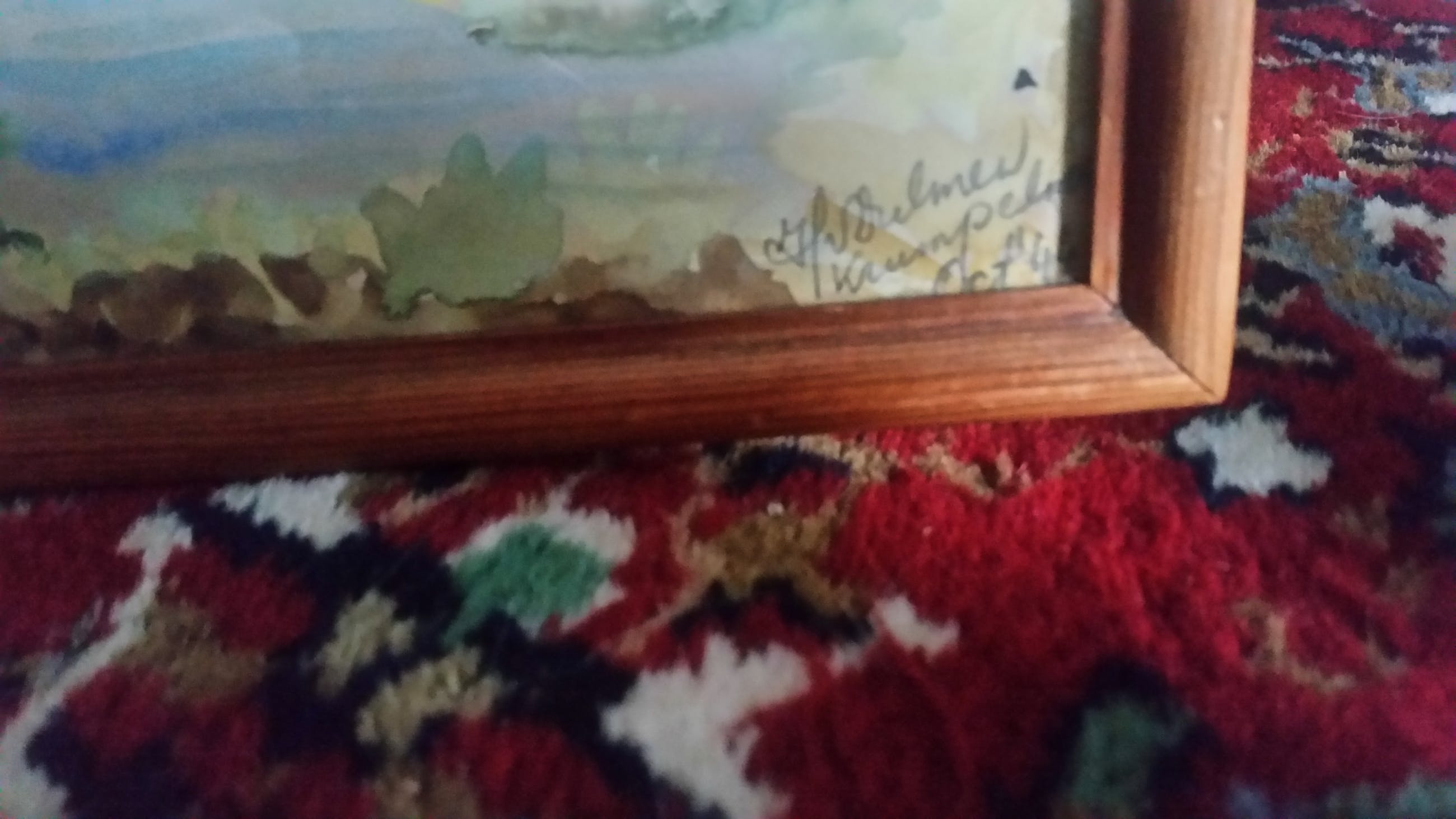 Kleurrijk landschap van de kunstenaar van dulden krumpelman. Het werk is gesigneer en gedateerd 1944.