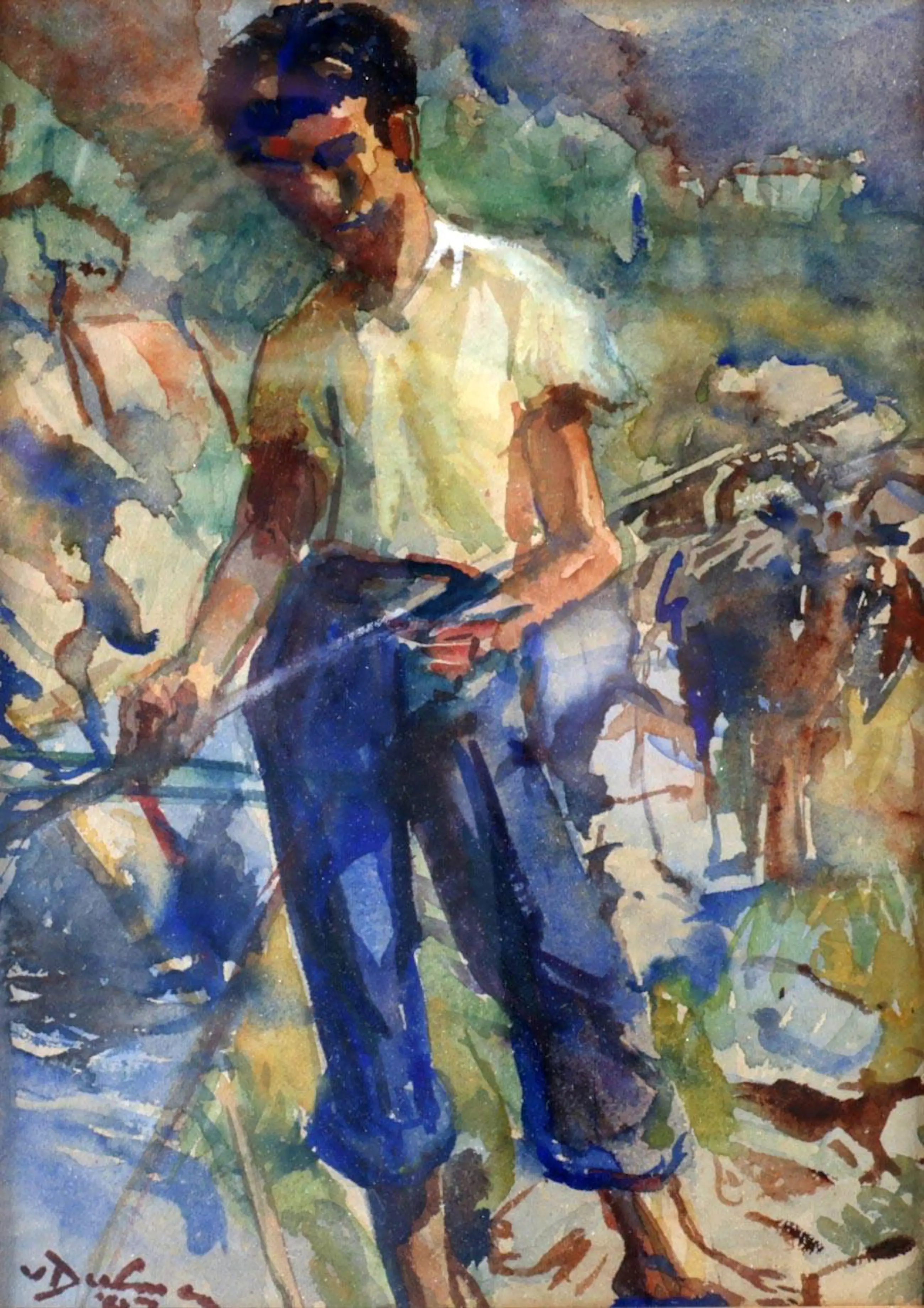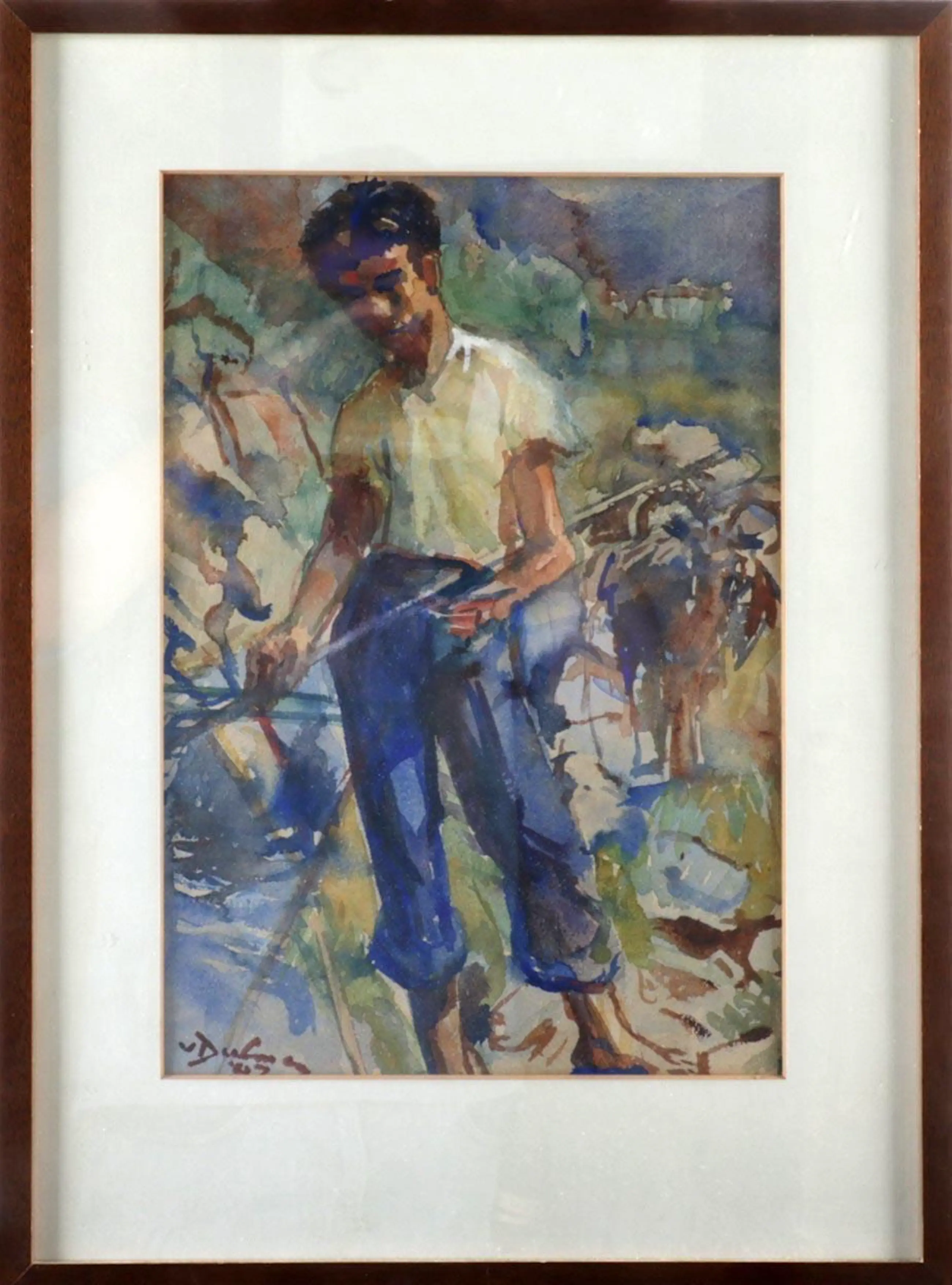 C3066, E.B. van Dulmen Krumpelman Jongetje in landschap aquarel, beeldmaat: 37 x 26 cm lijstmaat: lijstmaat 53 x 41 cm