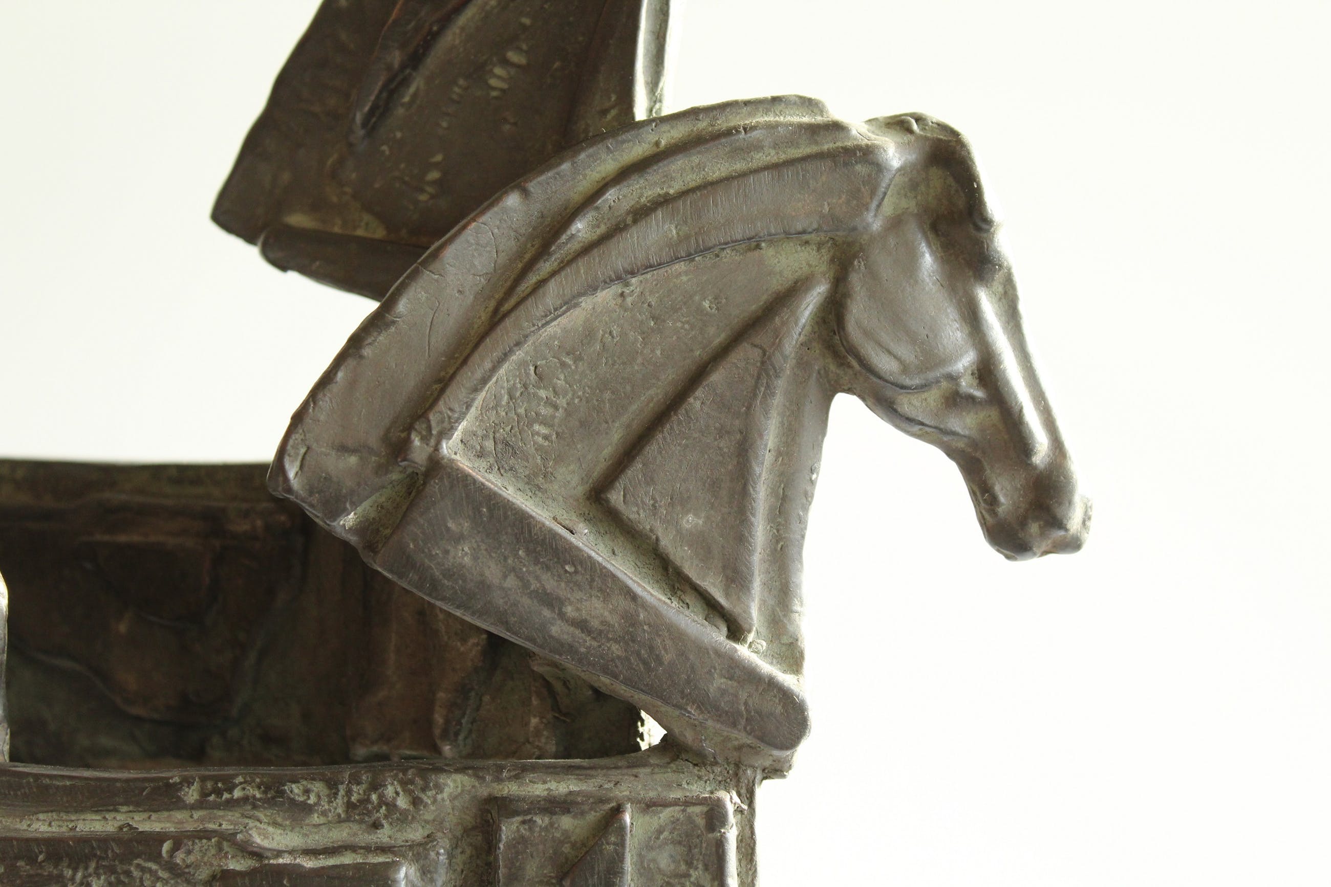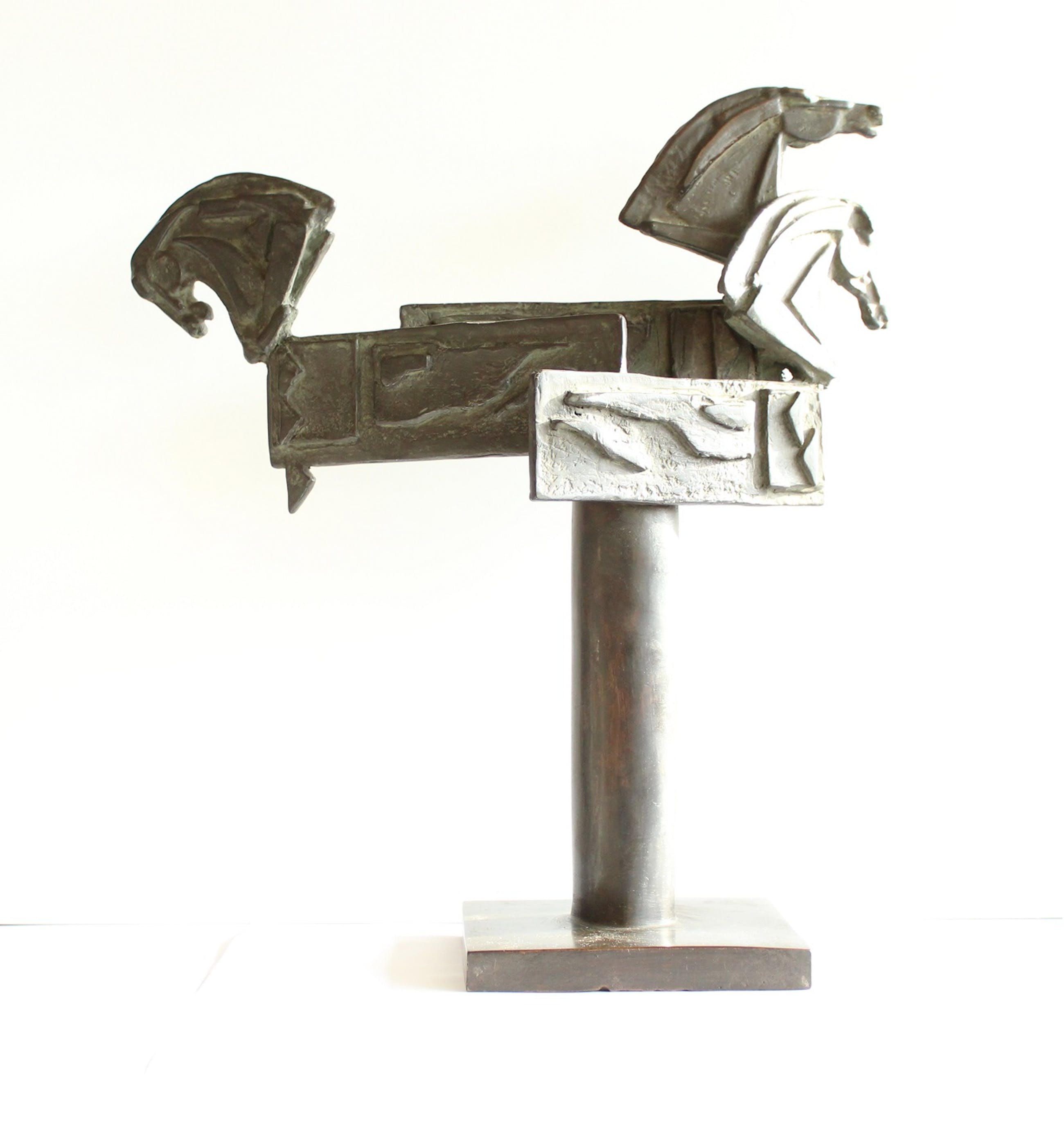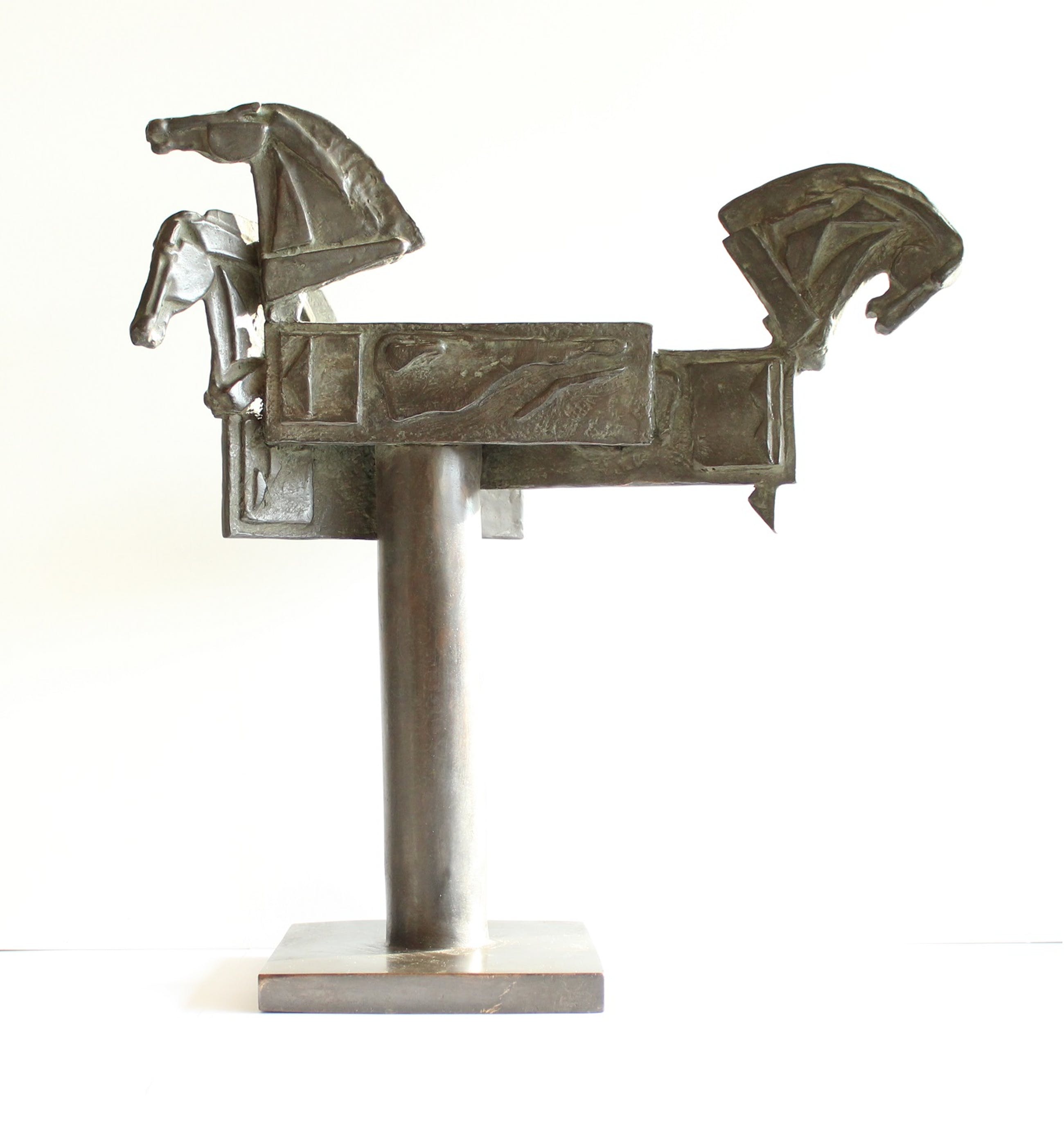 Kleinere uitvoering van voor Rabobank hoofdkantoor gemaakte beeld Kijken, Denken, Doen uit 1992. Deze "kleinere" uitvoeringen waren bestemd voor nieuwe filialen van de Rabobank in de tijd dat er nog nieuwe filialen werden geopend. Grote beeld staat bij het hoofdkantoor in Utrecht, vlakbij Centraal Station, en is opgebouwd uit 3 gestilleerde paardenkoppen die de gedachte Kijken, Denken, Doen uitbeelden.