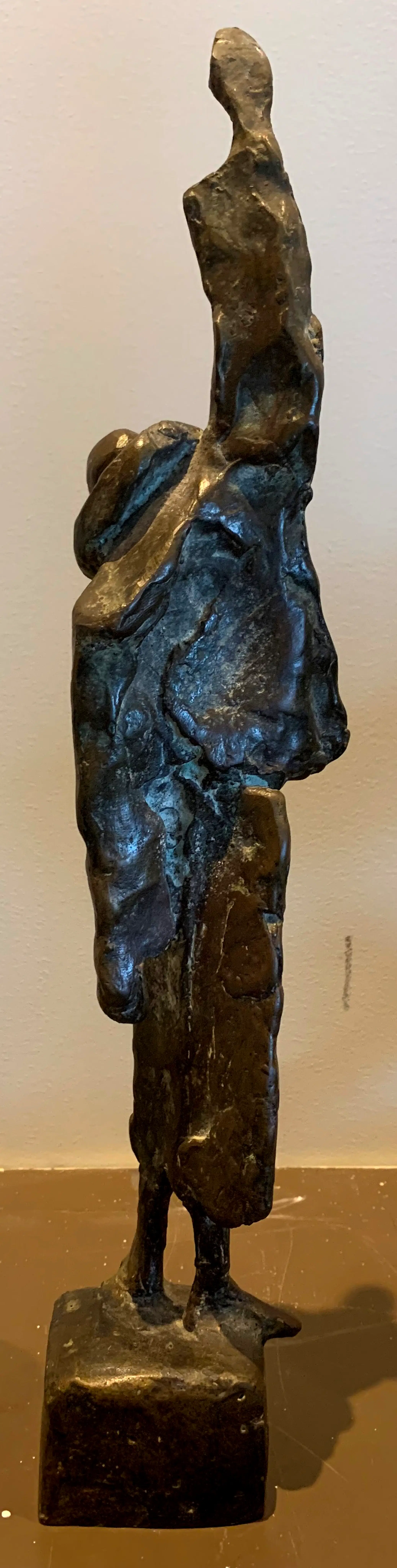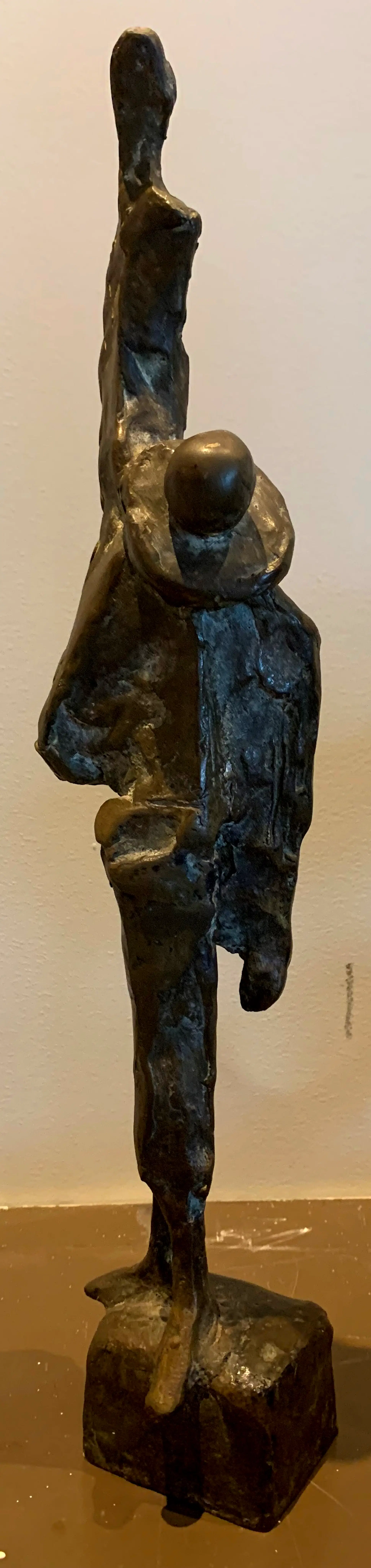 Dit beeldje is een bronzen sculptuur van een Pierrot, gemaakt door de Nederlandse beeldhouwer Eric Claus. Het werk behoort tot de Commedia dell'arte-serie van de kunstenaar, een thema dat hij sinds de jaren '70 verkent. De sculpturen van Eric Claus zijn figuratief en richten zich vaak op de menselijke figuur. Afmetingen beeld: H38cm x b6cm x d7cm. het beeld is niet gesigneerd door de kunstenaar.