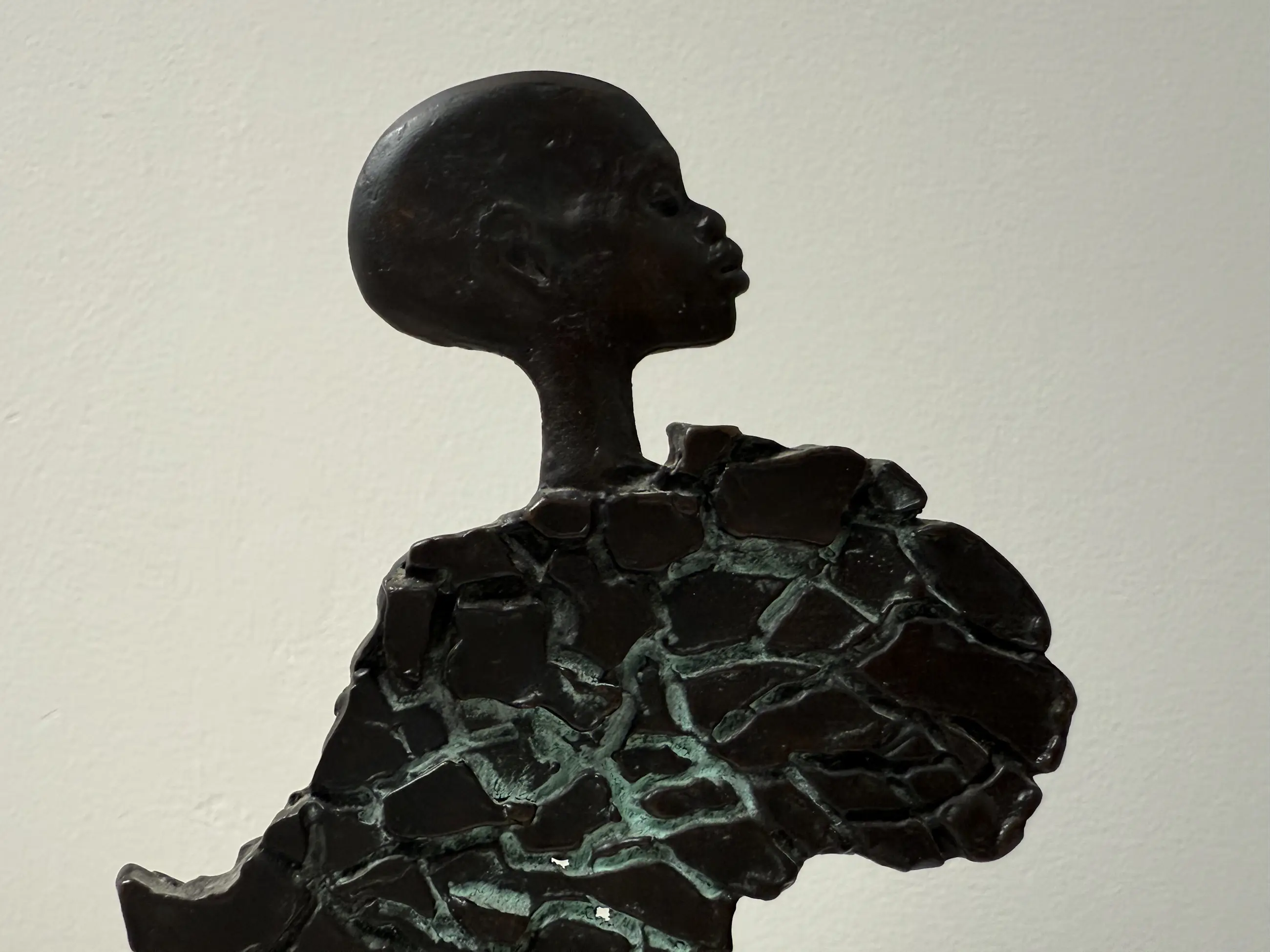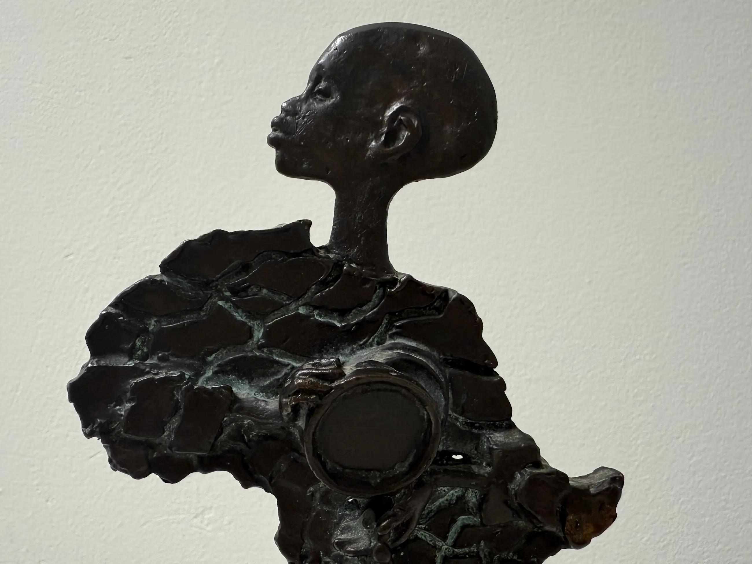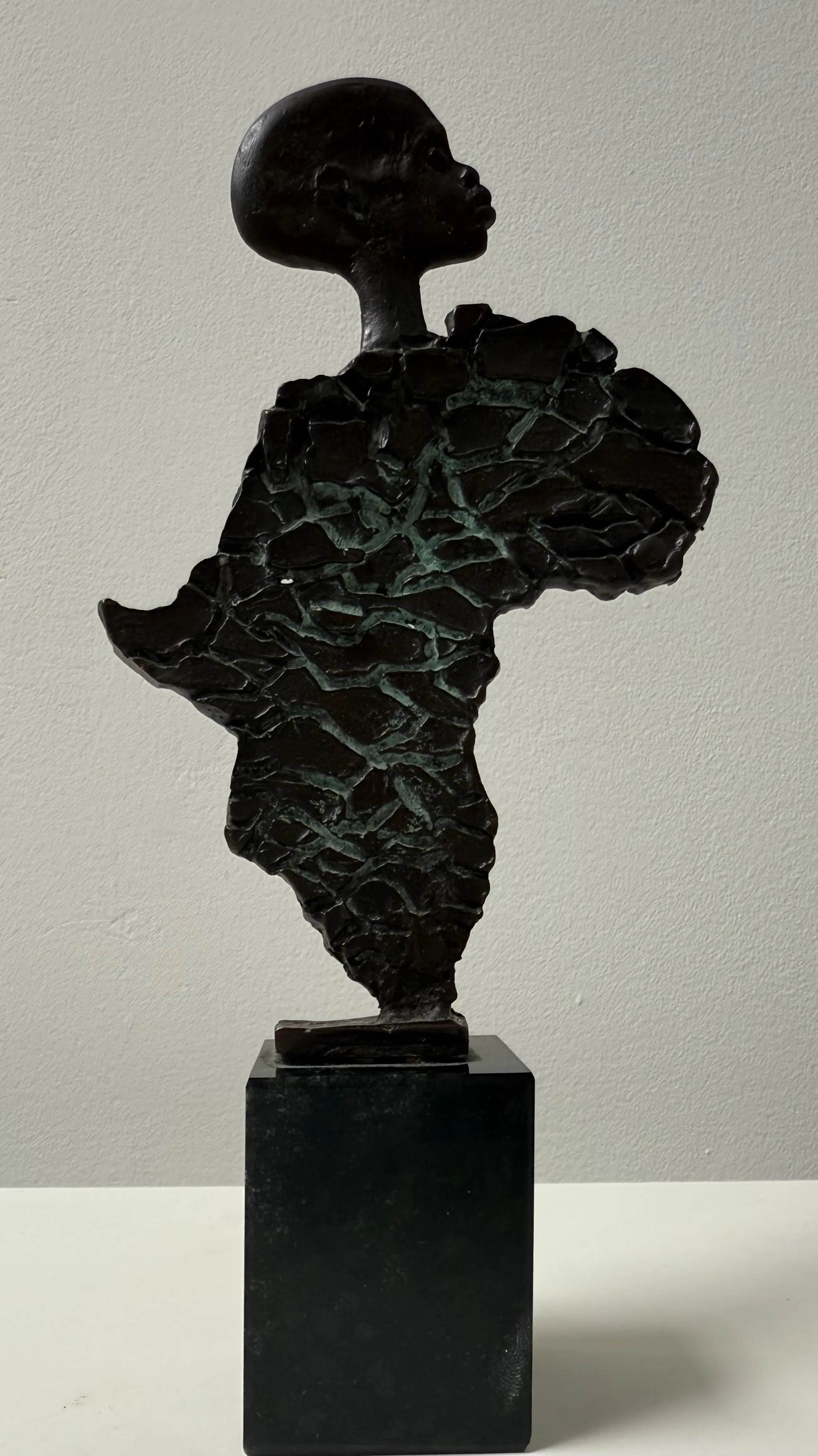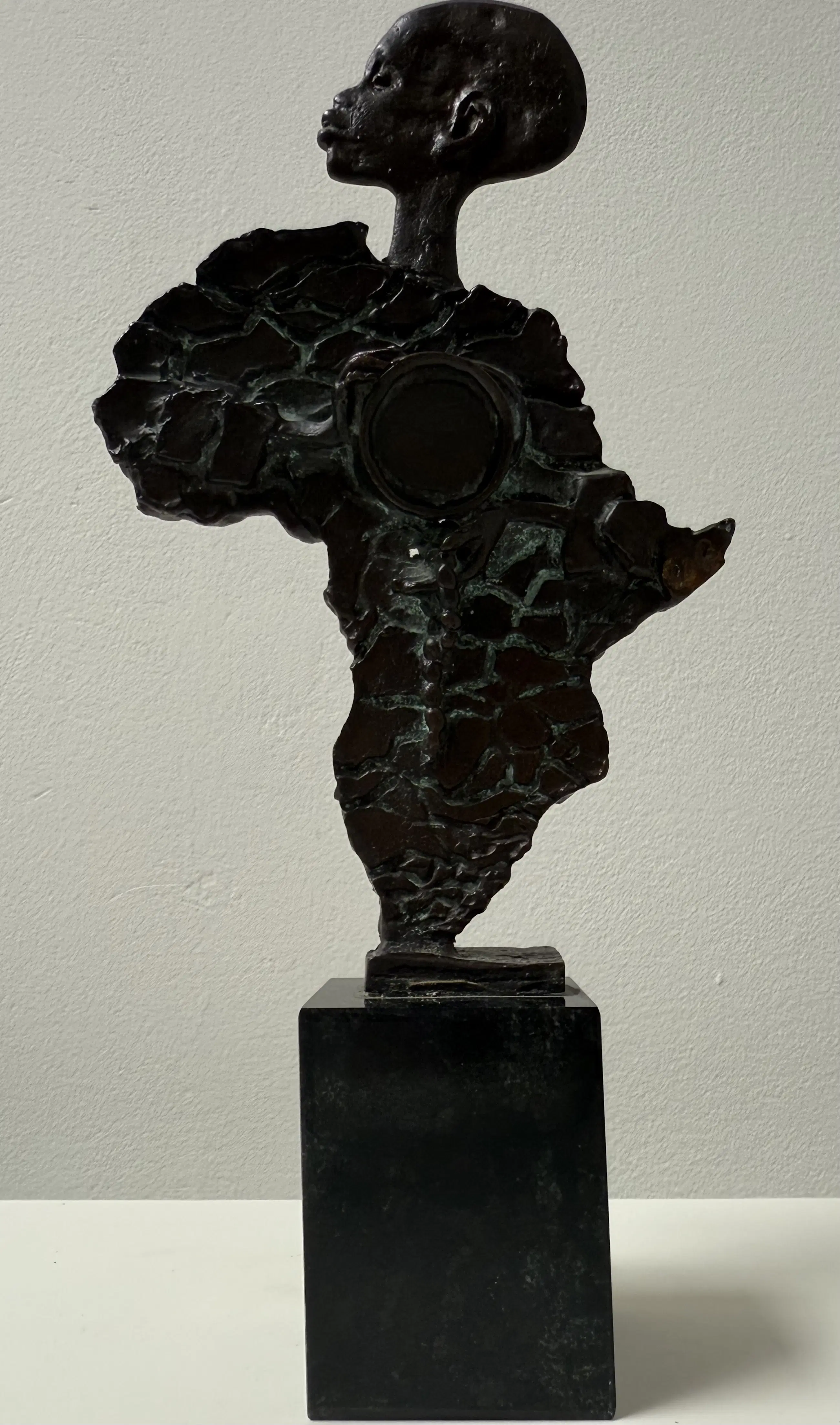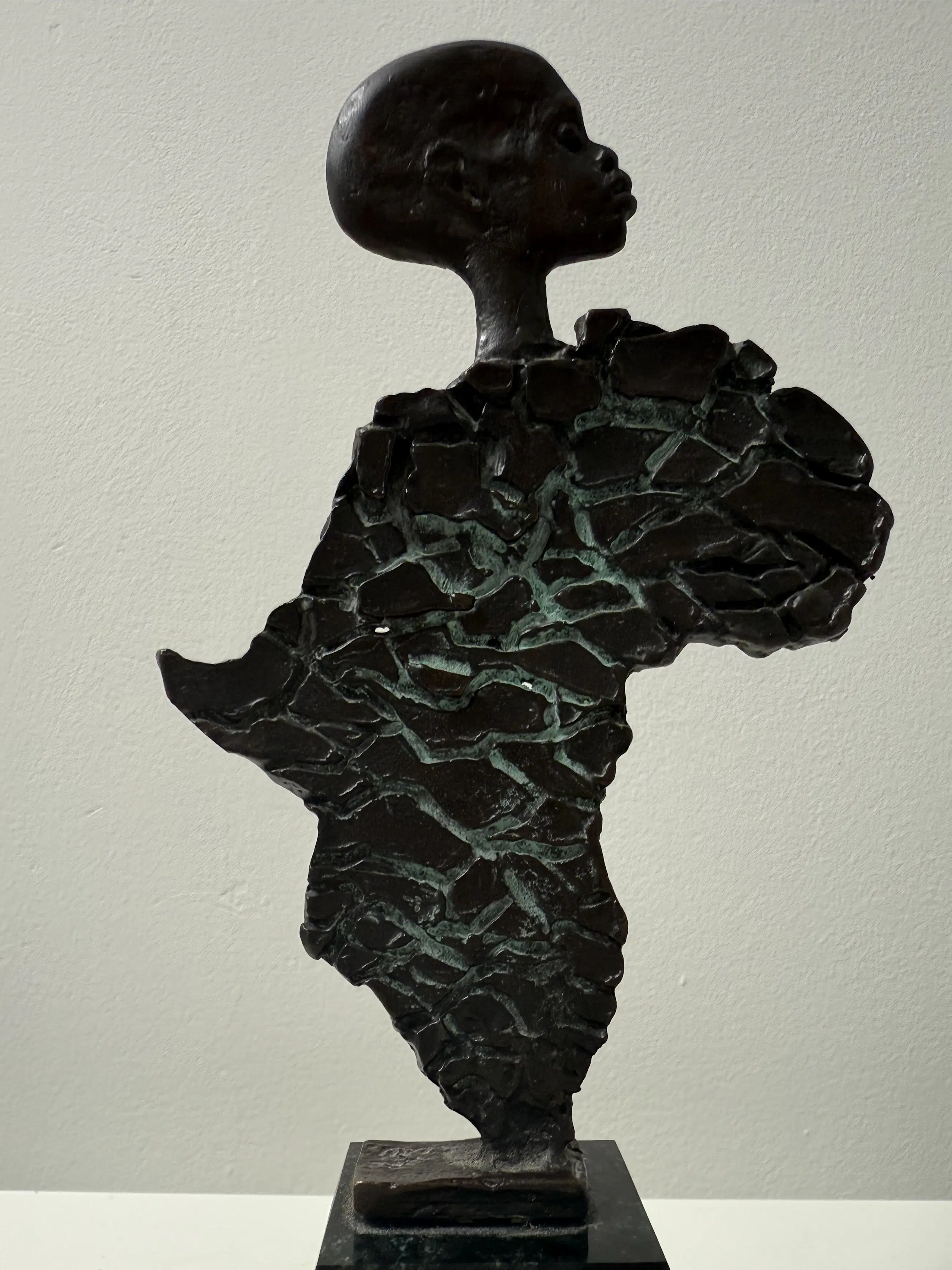 Helemaal in de stijl van de kunstenaar en het continent Afrika als vorm van het sculptuur.