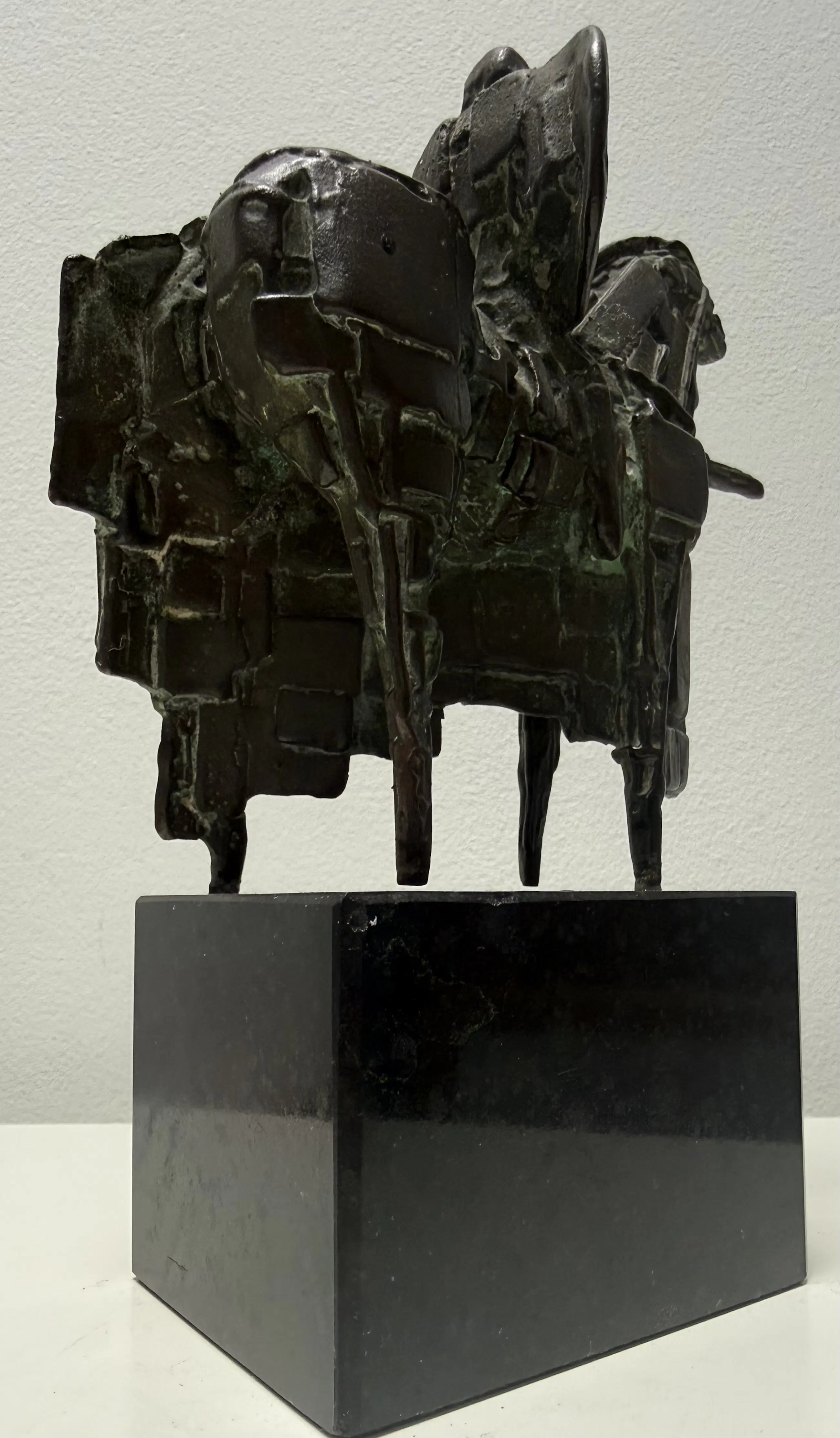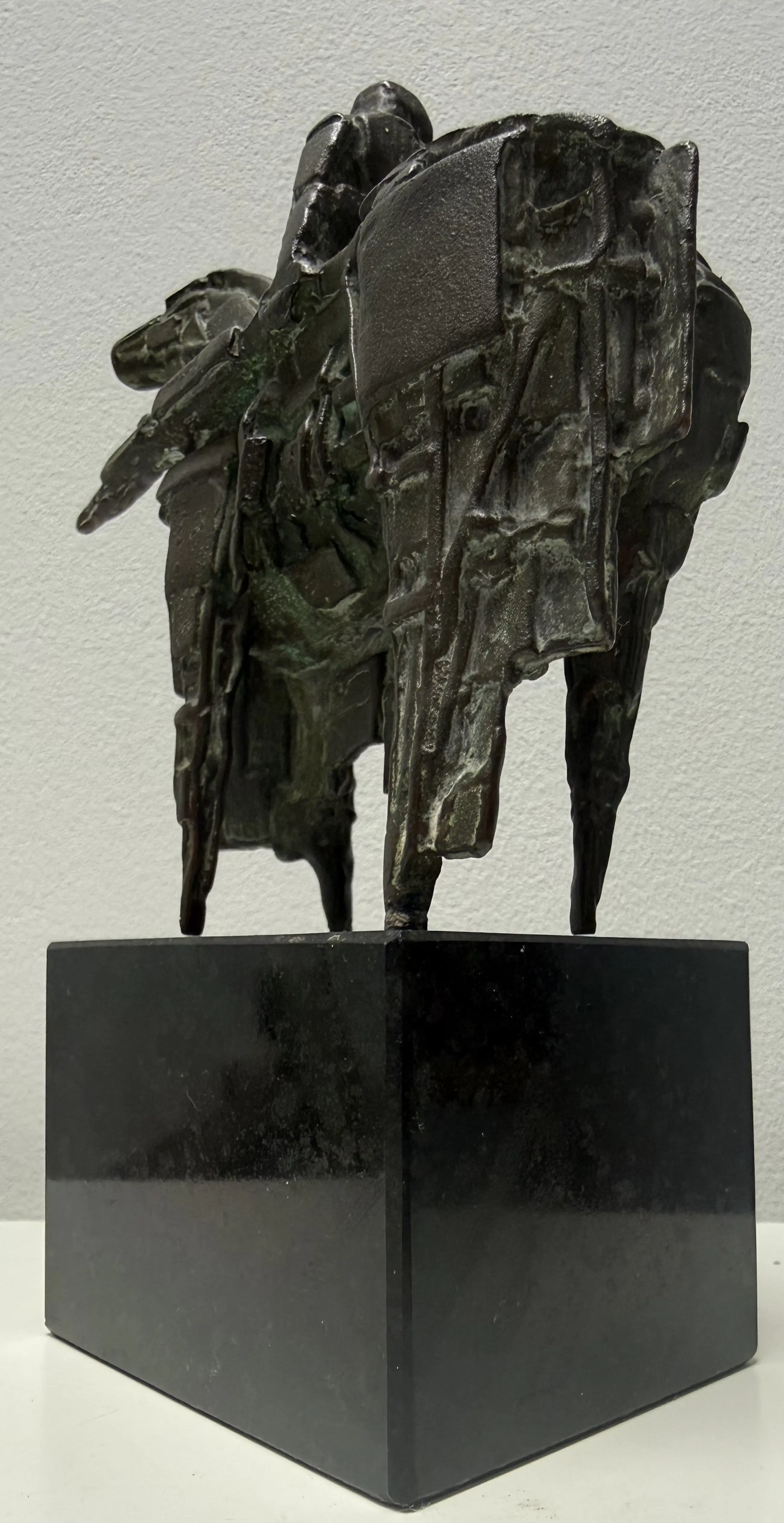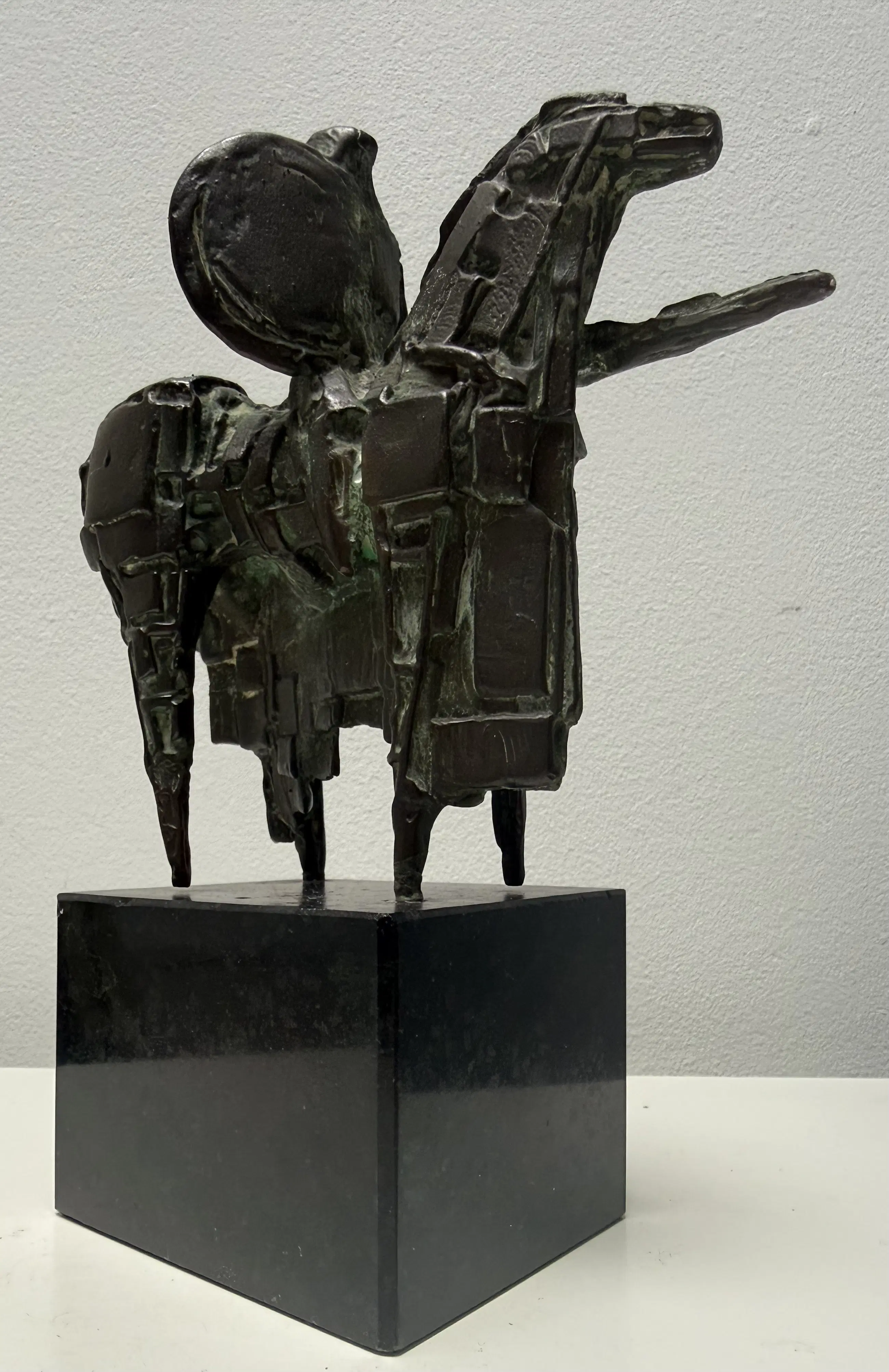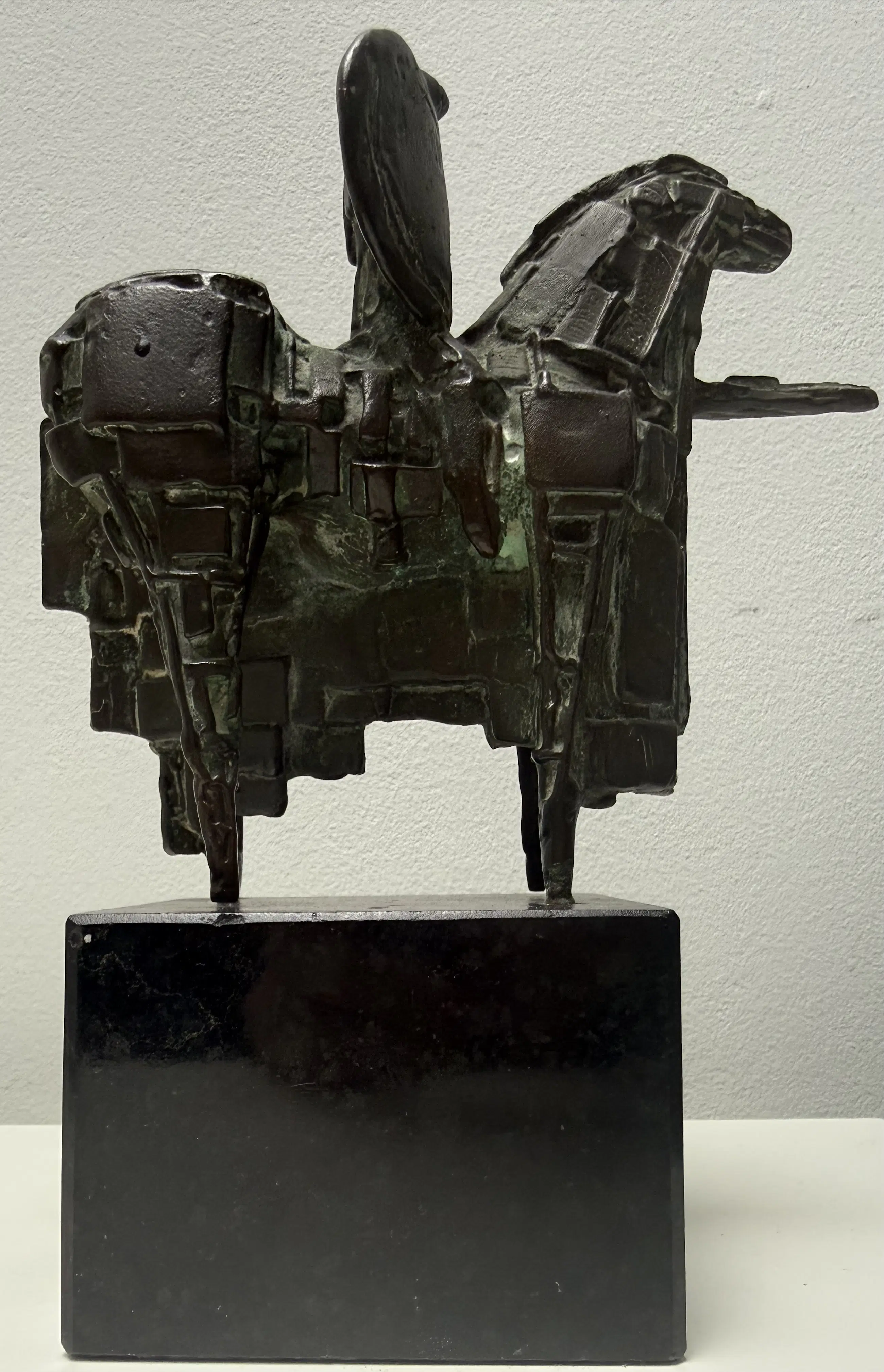 Door de bijzonder structuur van het paard met zijn ruiter, blijf je telkens iets anders zien. Licht en schaduw spelen een spel op het oppervlakte. De patina heeft in de loop der jaren een fraaie uitstraling gekregen.