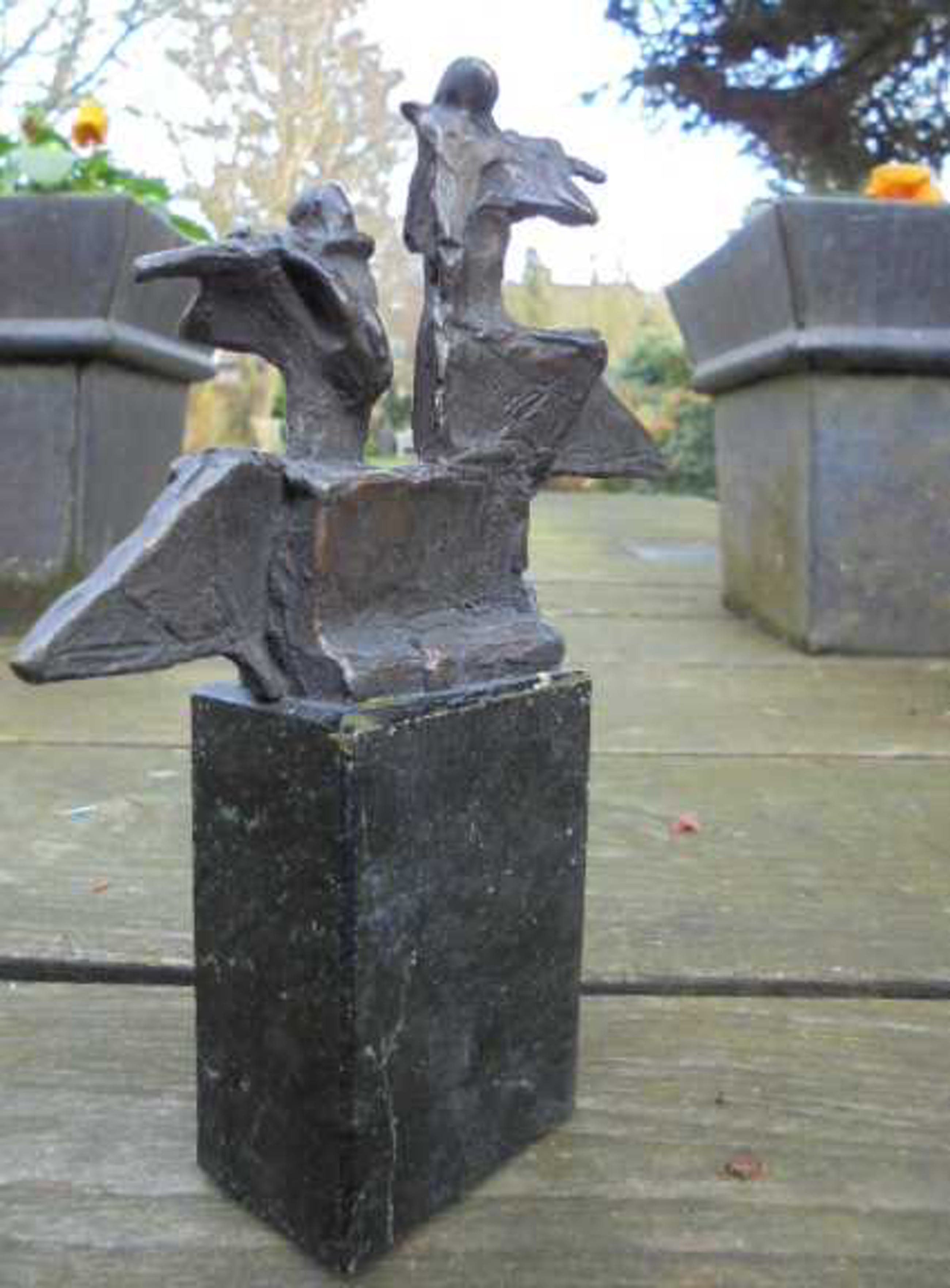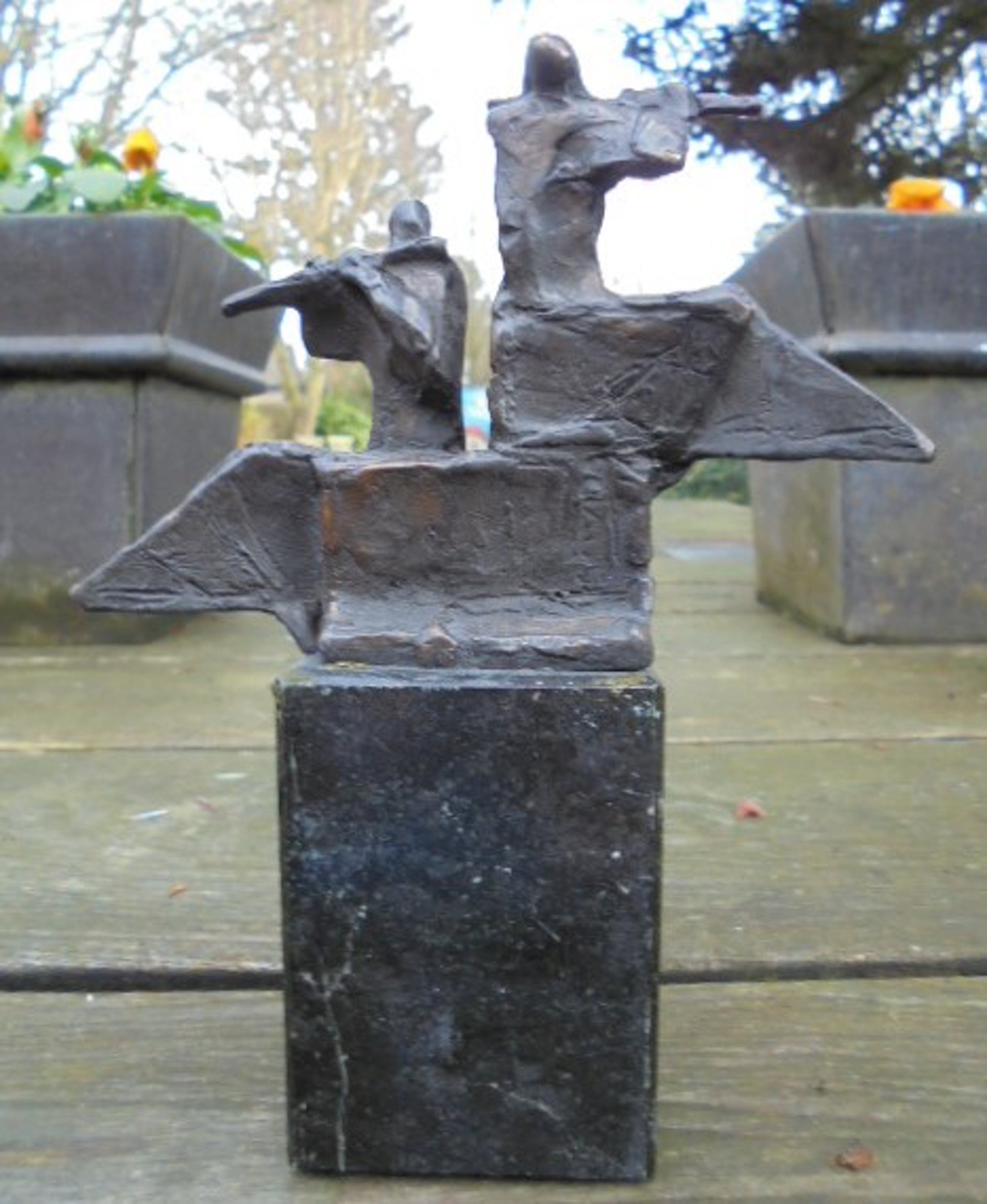 Zeer fraai bronzen beeld. Dit beeld is in meerdere afmetingen gemaakt. Dit beeldje is van de kleine beeldjes de grote en de dubbel gesigneerde versie! Het beeldje heeft een mooie donkere patina.