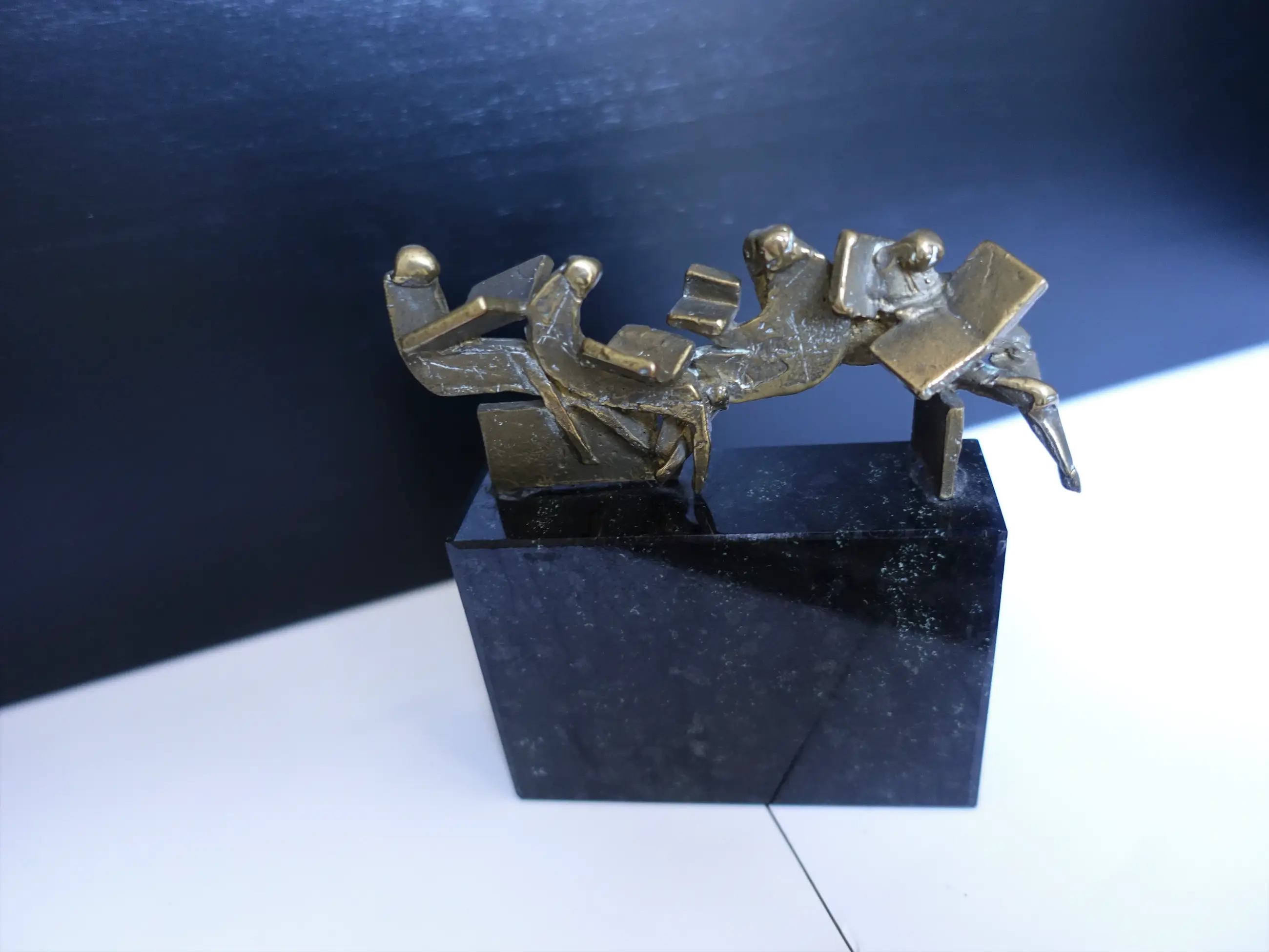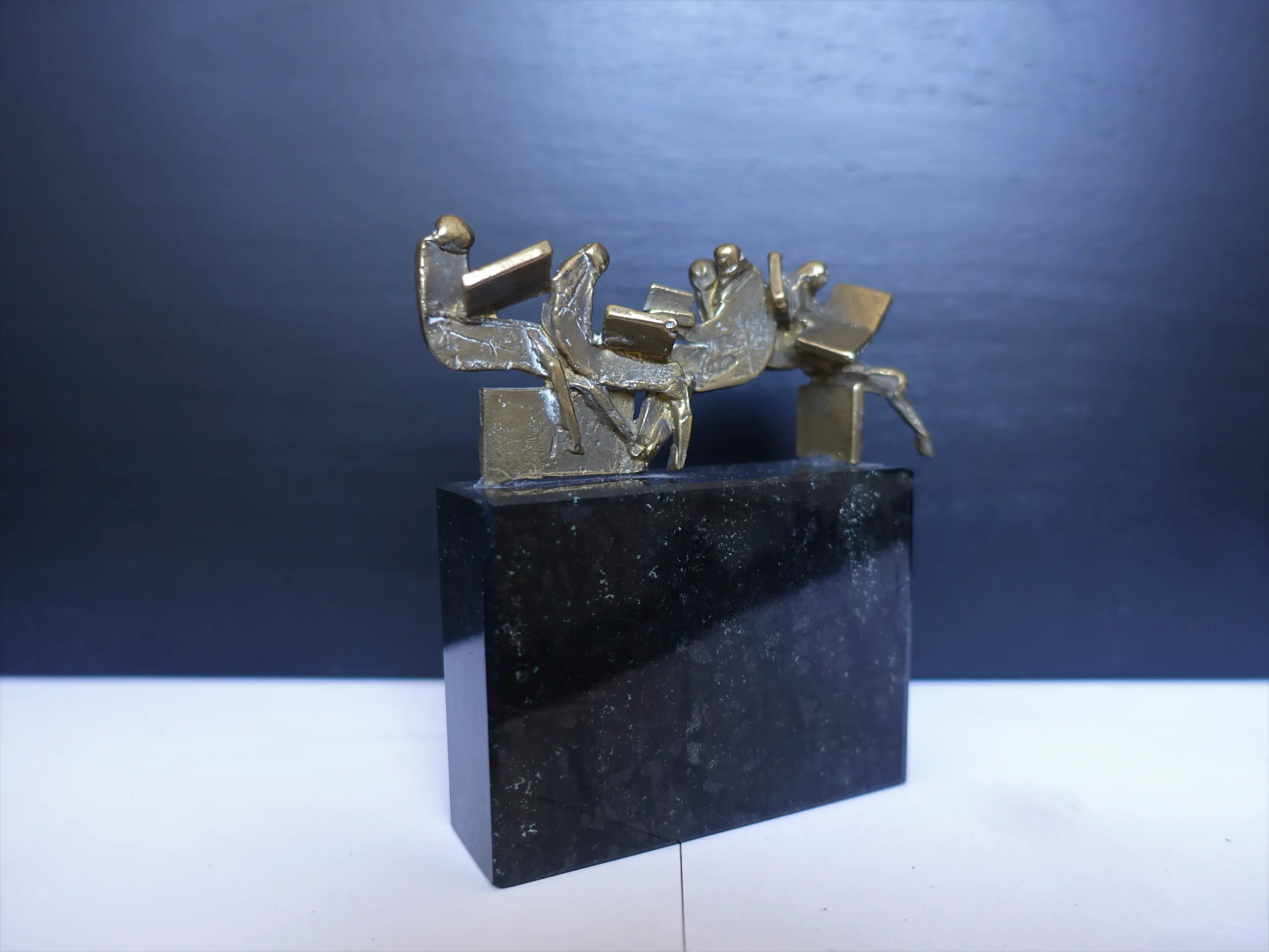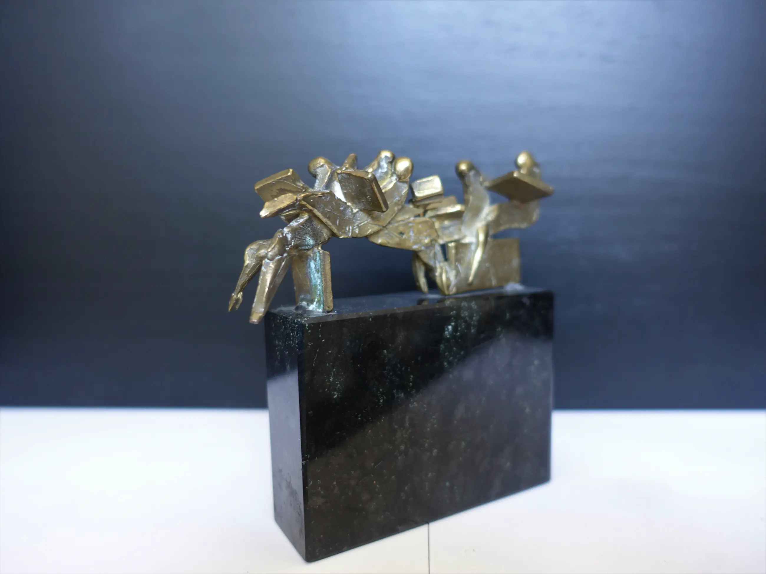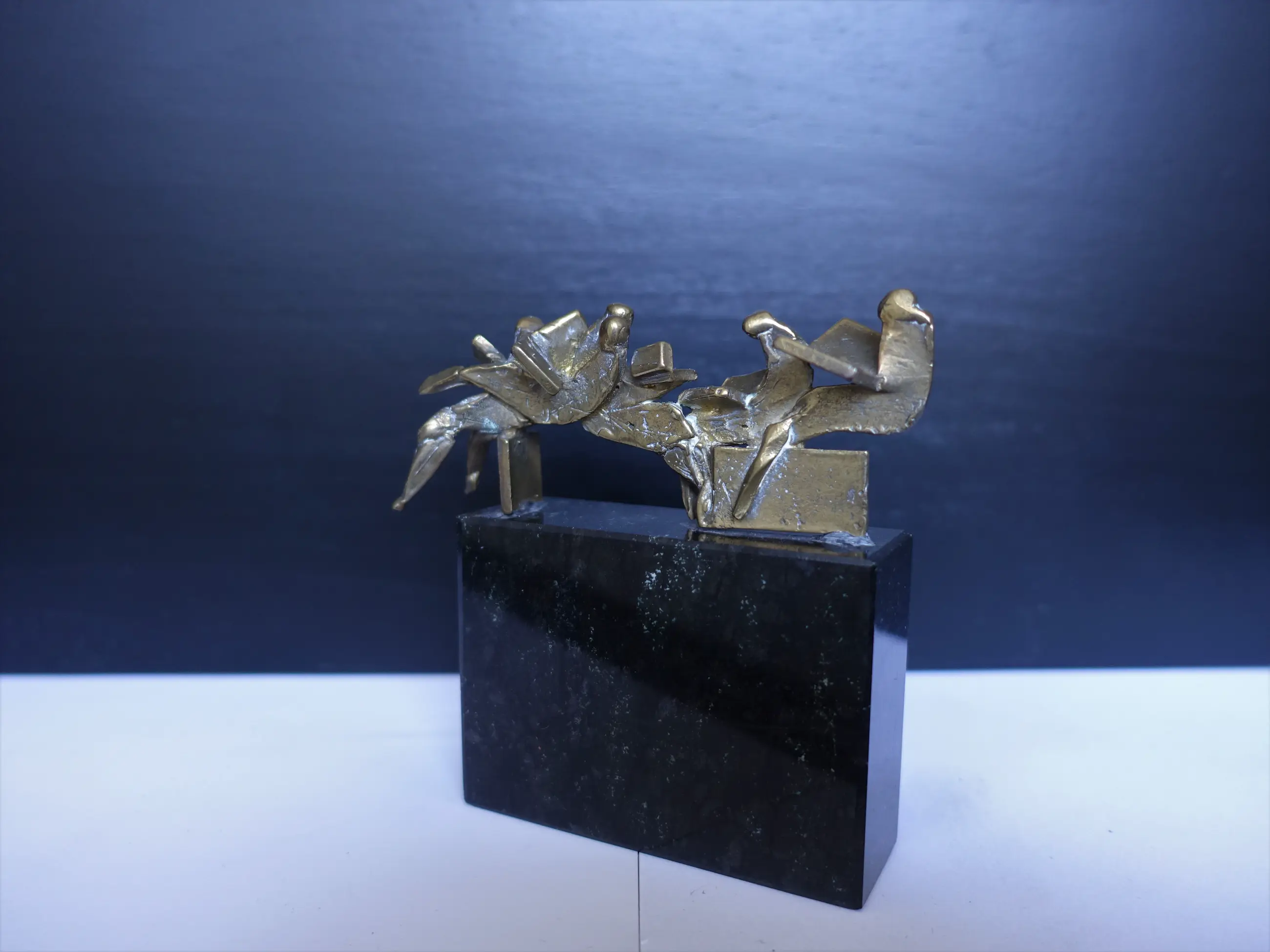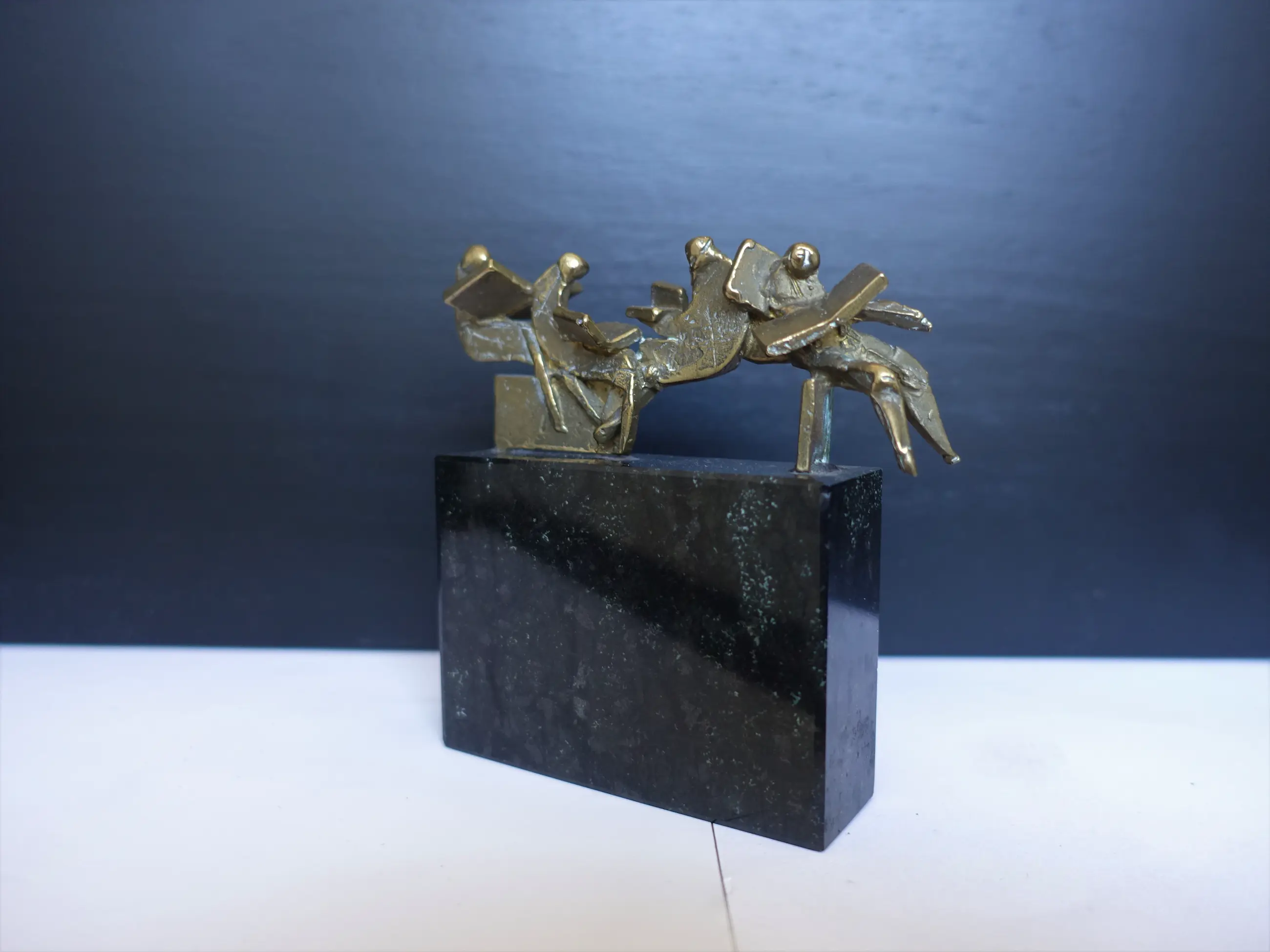 Zeer fraai beeldje "de krantlezers" van Eric Claus. DE afmetingen zijn INCLUSIEF de sokkel.