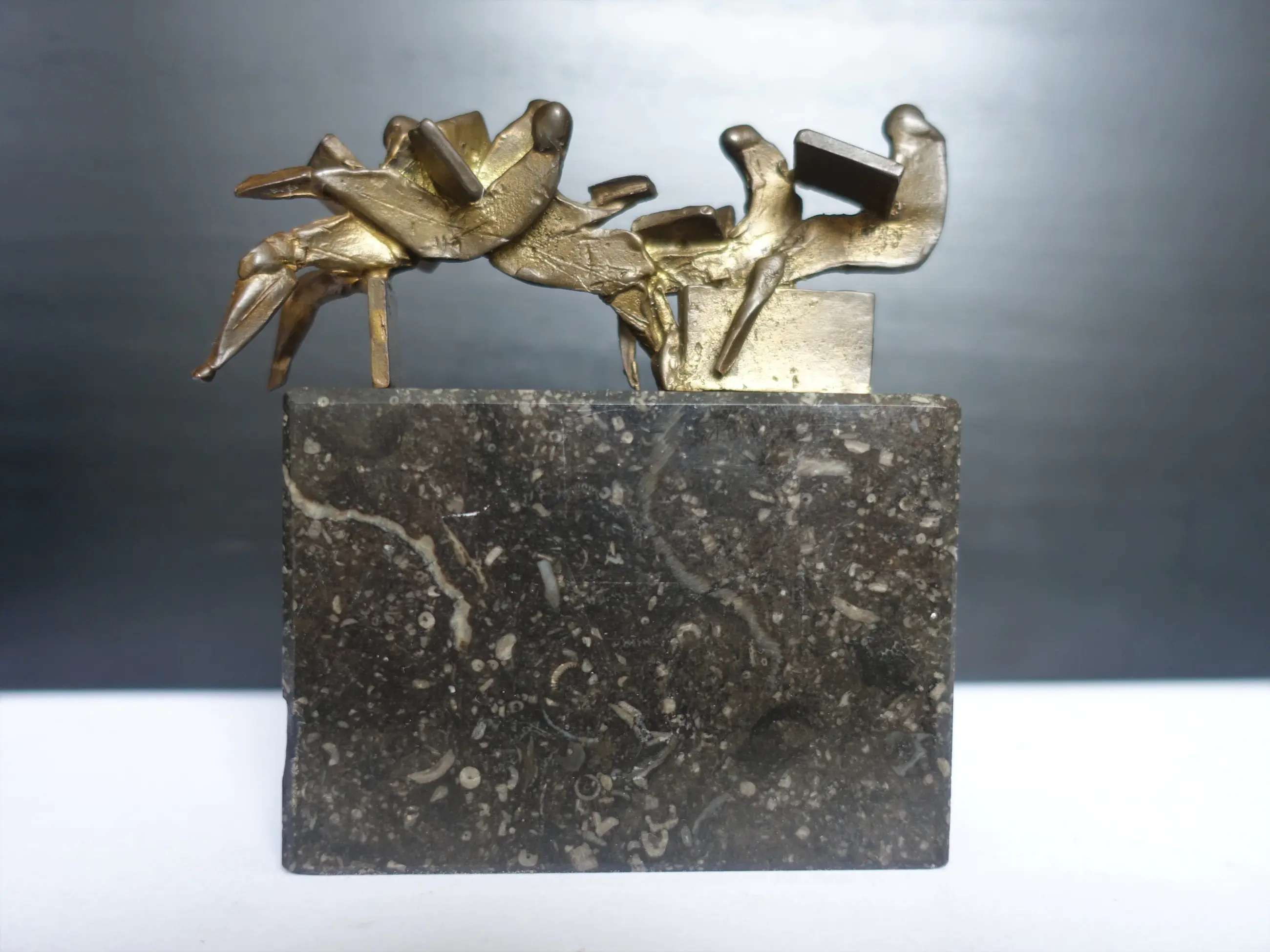 Zeer fraai beeldje "de krantlezers" van Eric Claus. DE afmetingen zijn INCLUSIEF de sokkel. Eric Claus (1936) is een Nederlandse beeldhouwer die vernieuwing zoekt binnen de klassieke beeldhouwkunst.