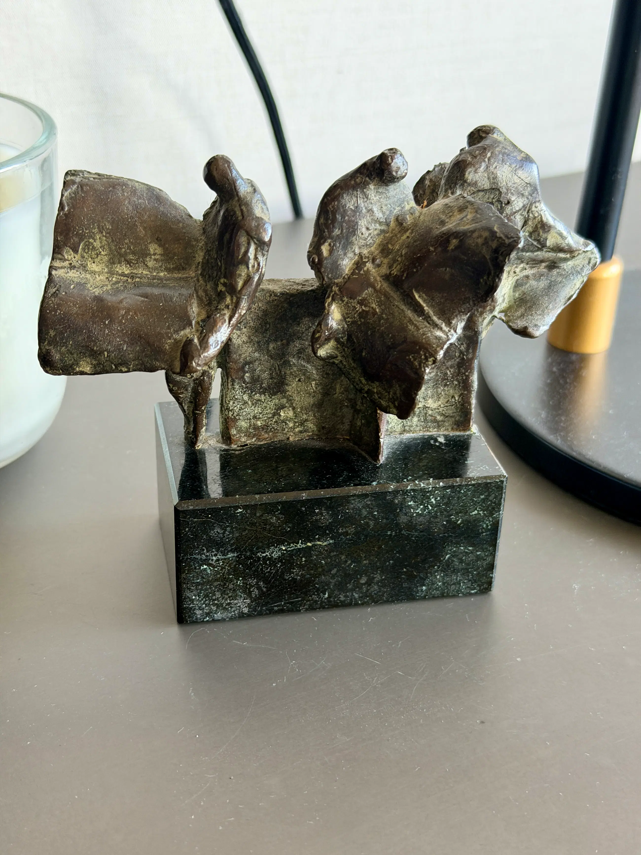Prachtig en karaktervol bronzen beeldje van de gerenommeerde Nederlandse beeldhouwer Eric Claus, getiteld “De Lezers”.