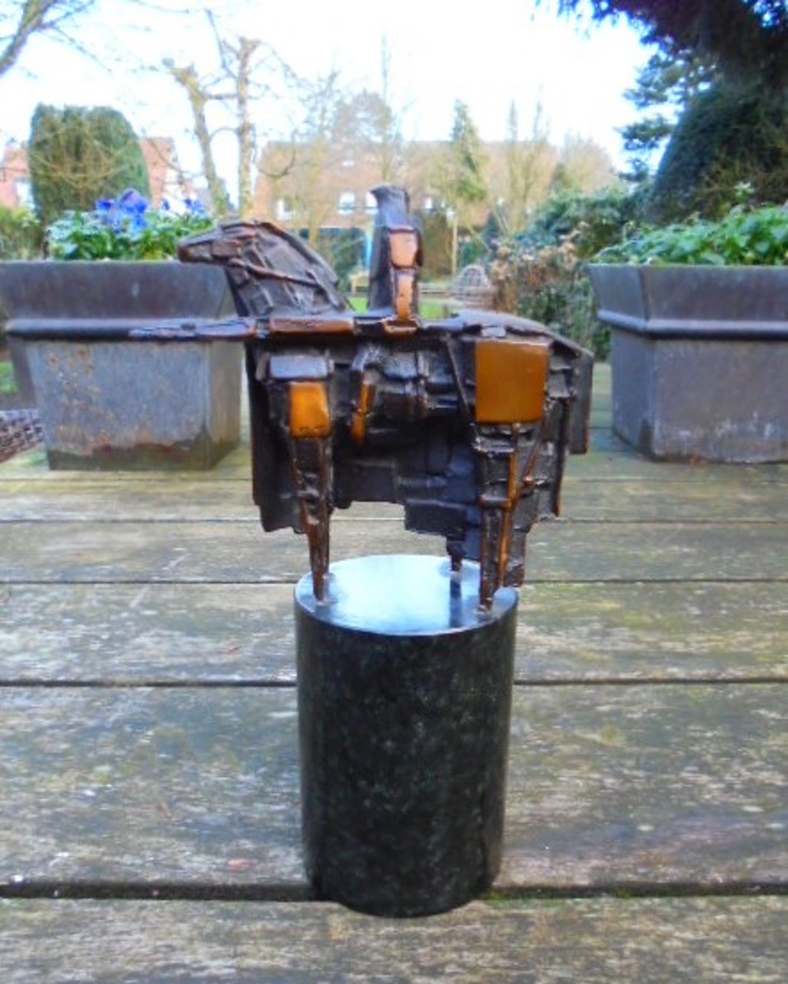 Afmetingen: inclusief sokkel: ca. 24 cm x 14 cm x 6 cm (beeld zonder sokkel: 13,4 cm x 13,5 cm x 6 cm).