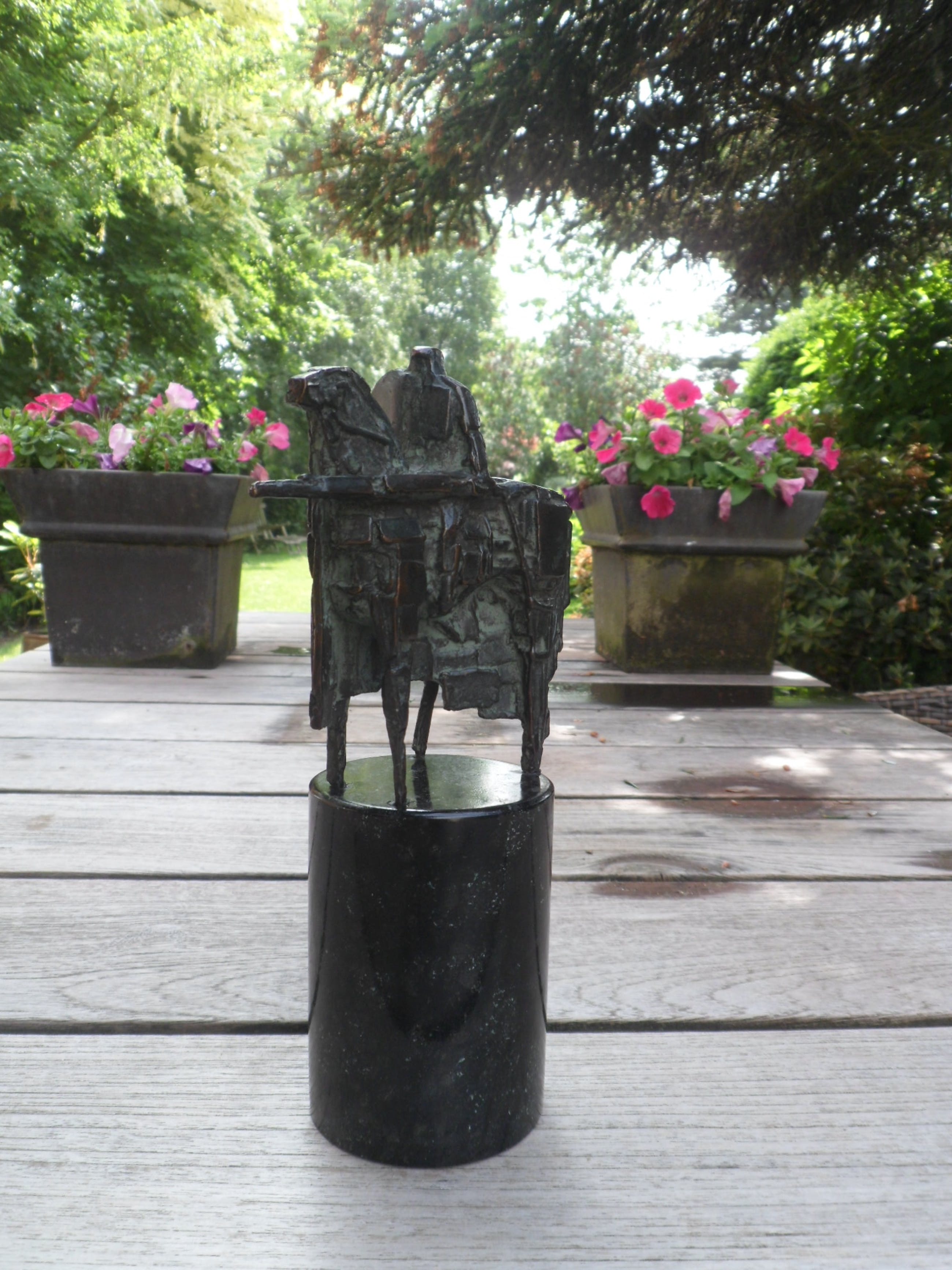 Afmetingen: inclusief sokkel: ca. 24 cm x 14 cm x 6 cm (beeld zonder sokkel: 13,4 cm x 13,5 cm x 6 cm).