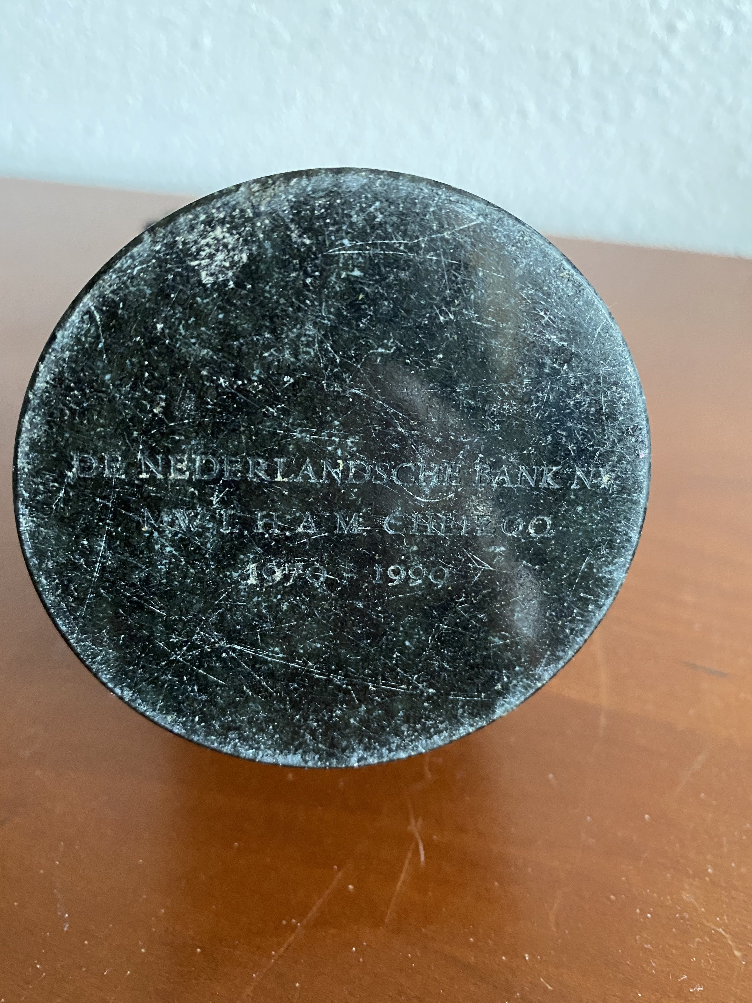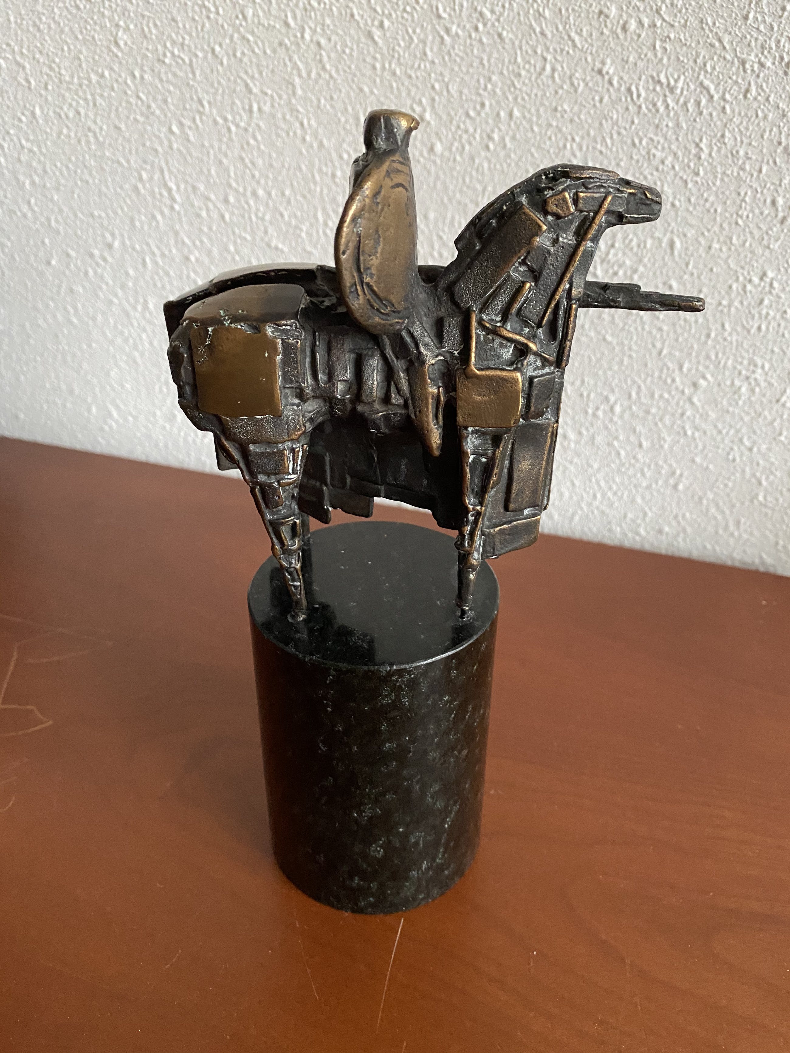 Afmetingen: inclusief sokkel: ca. 24 cm x 14 cm x 6 cm (beeld zonder sokkel: 13,4 cm x 13,5 cm x 6 cm