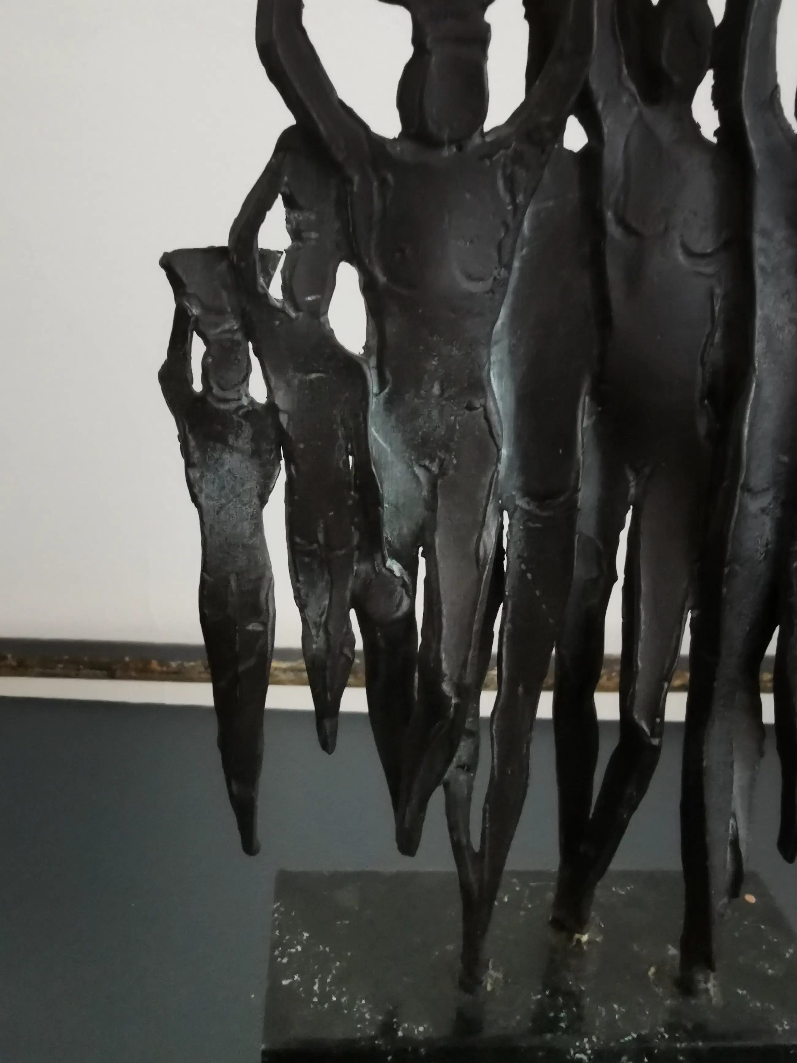 Zeer fraai gedetailleerde scultuur van de hand van Eric Claus uit 1998, dit iscde Afbeelding met Afrikaanse vrouwen met waterkruiken op hun hoofd. Mooie beeldkracht in een haast plat vlak.
