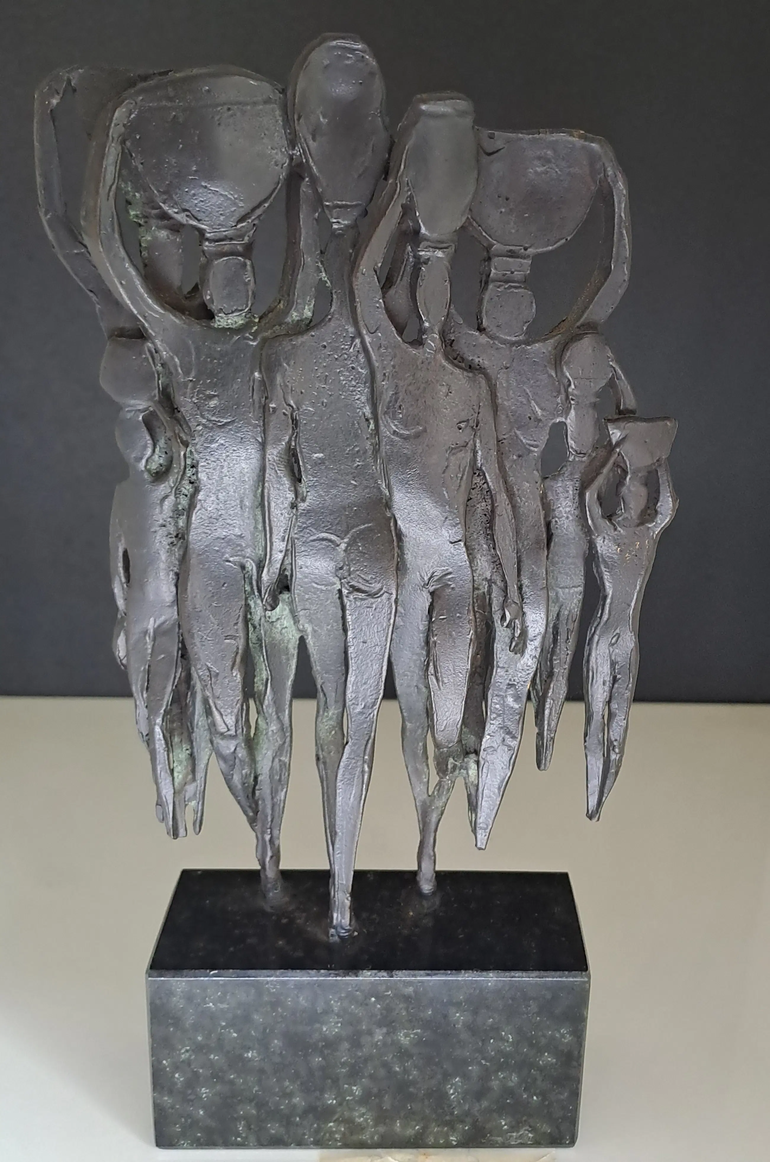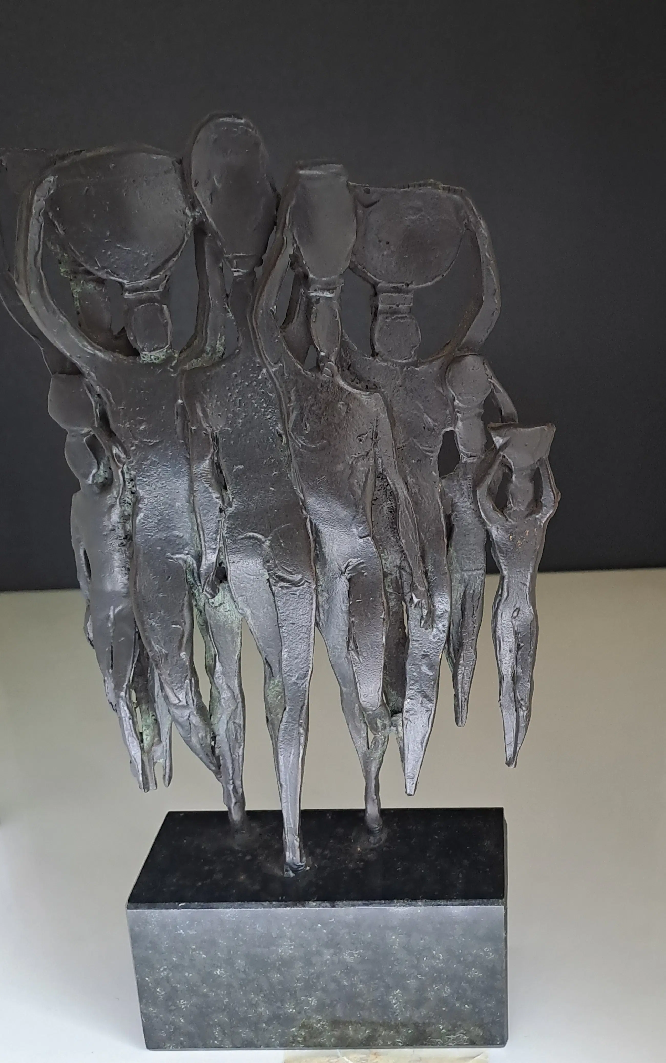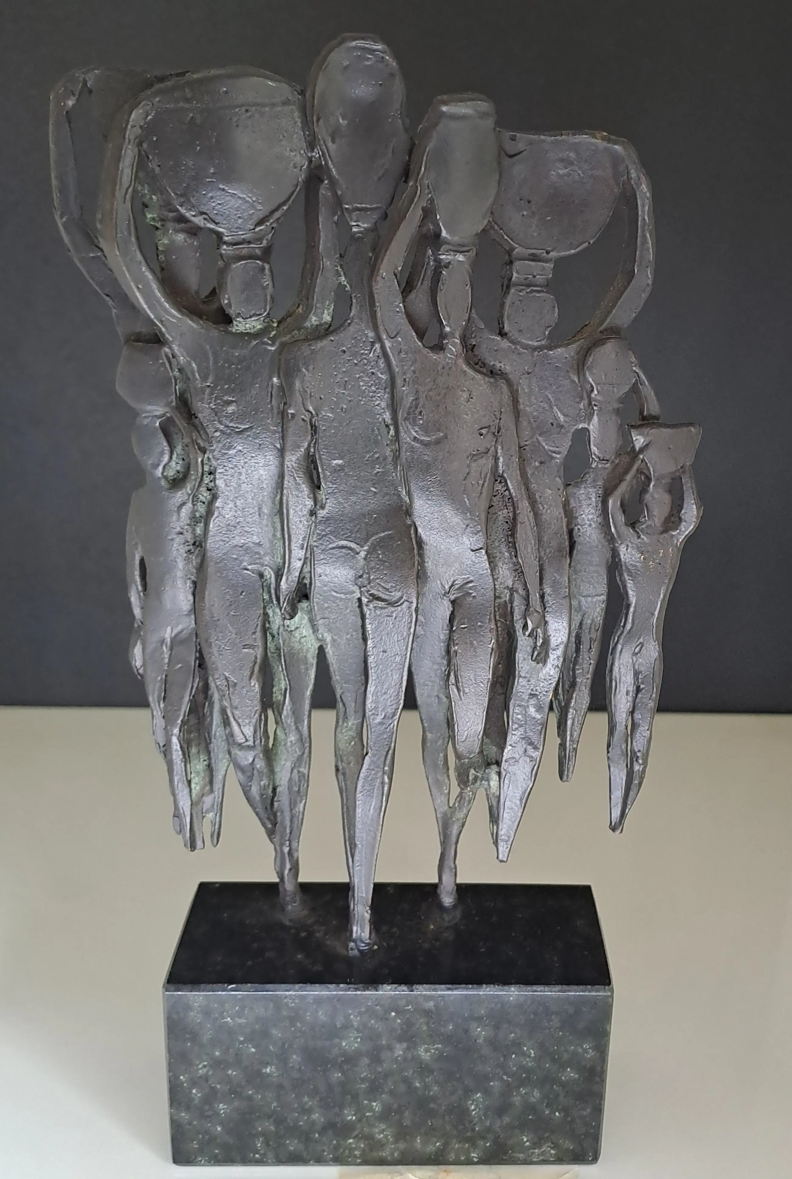 Afrikaanse vrouwen met waterkruiken op hun hoofd. Prachtige beeldkracht in een haast plat vlak.