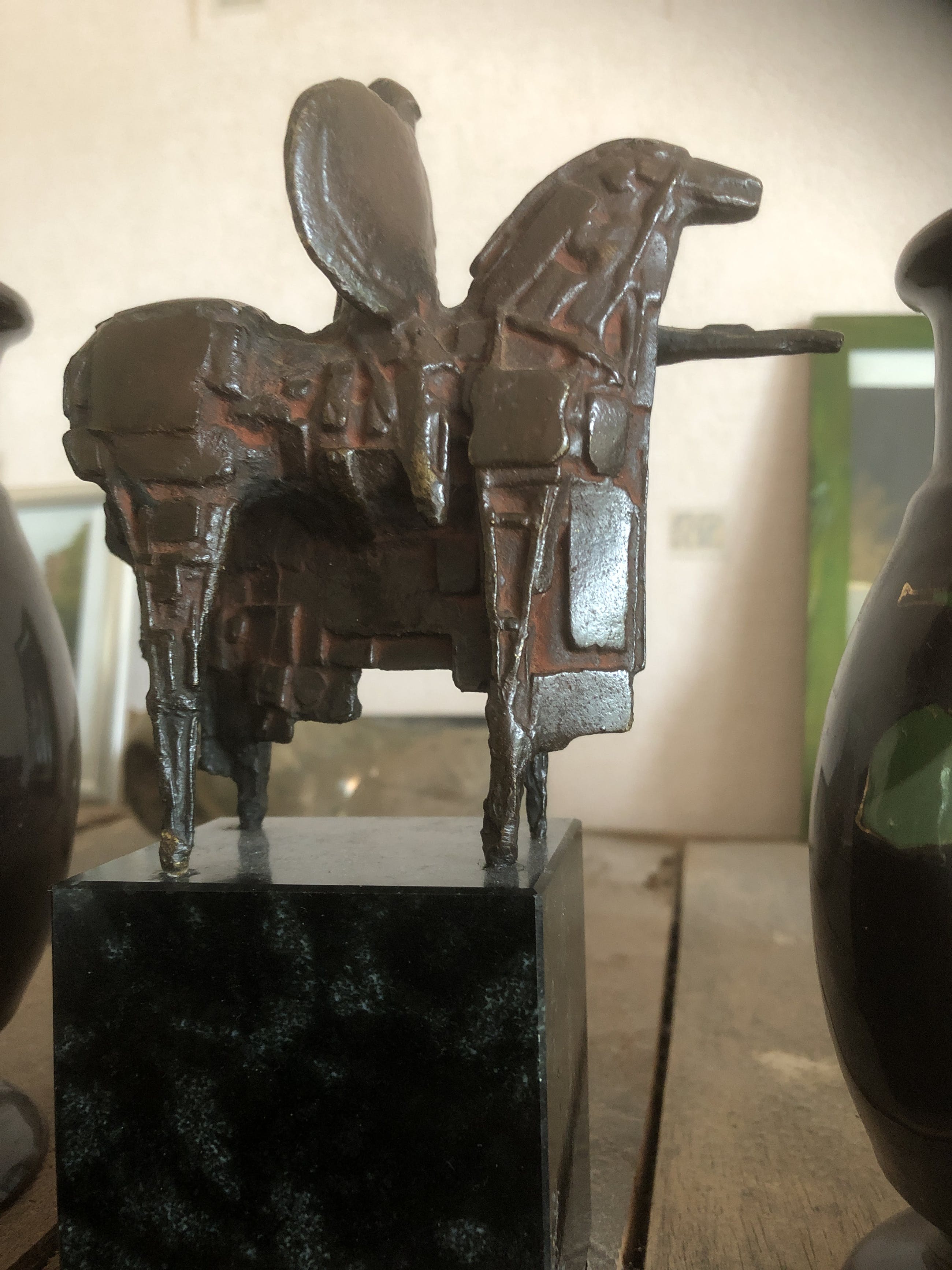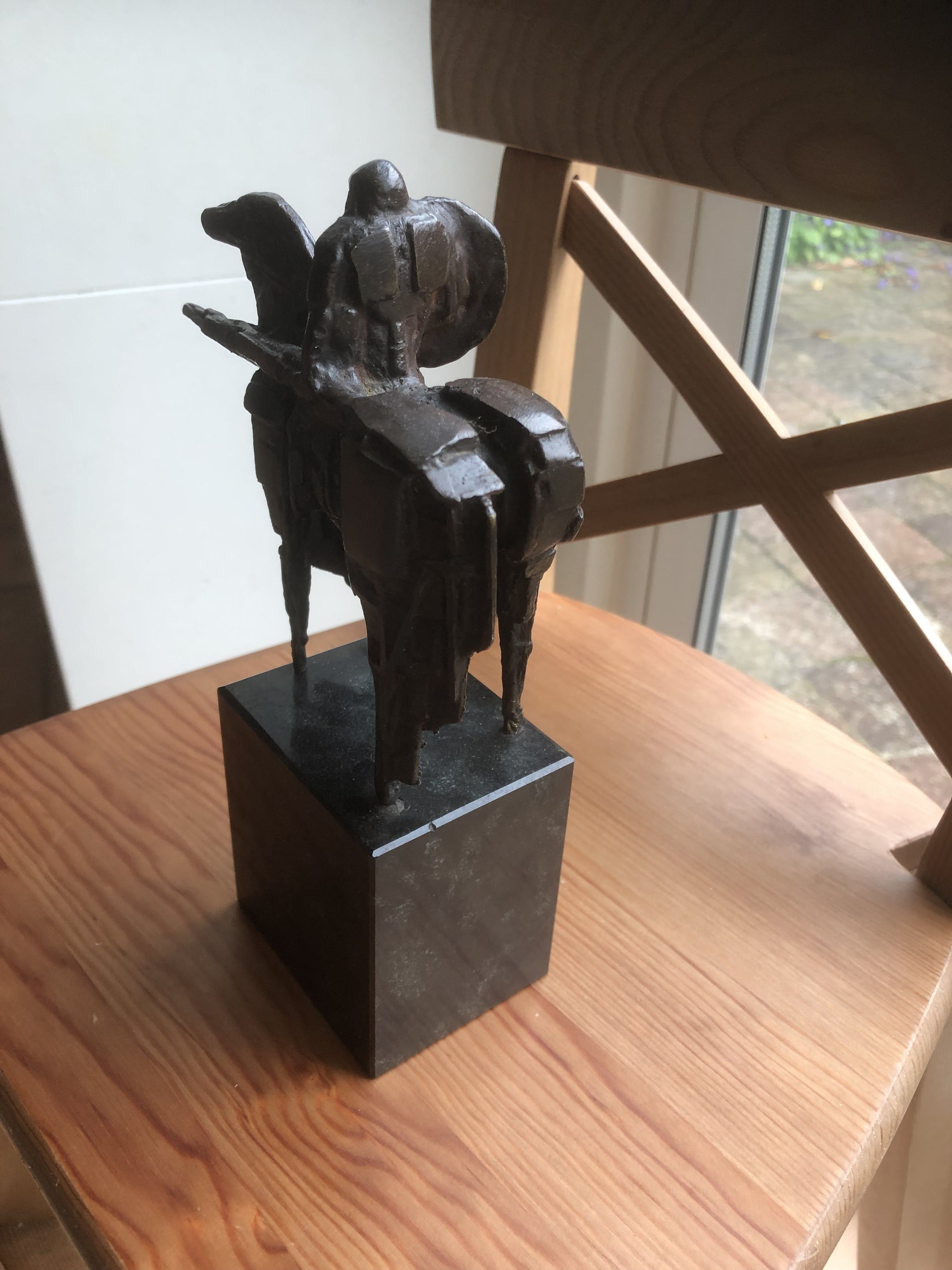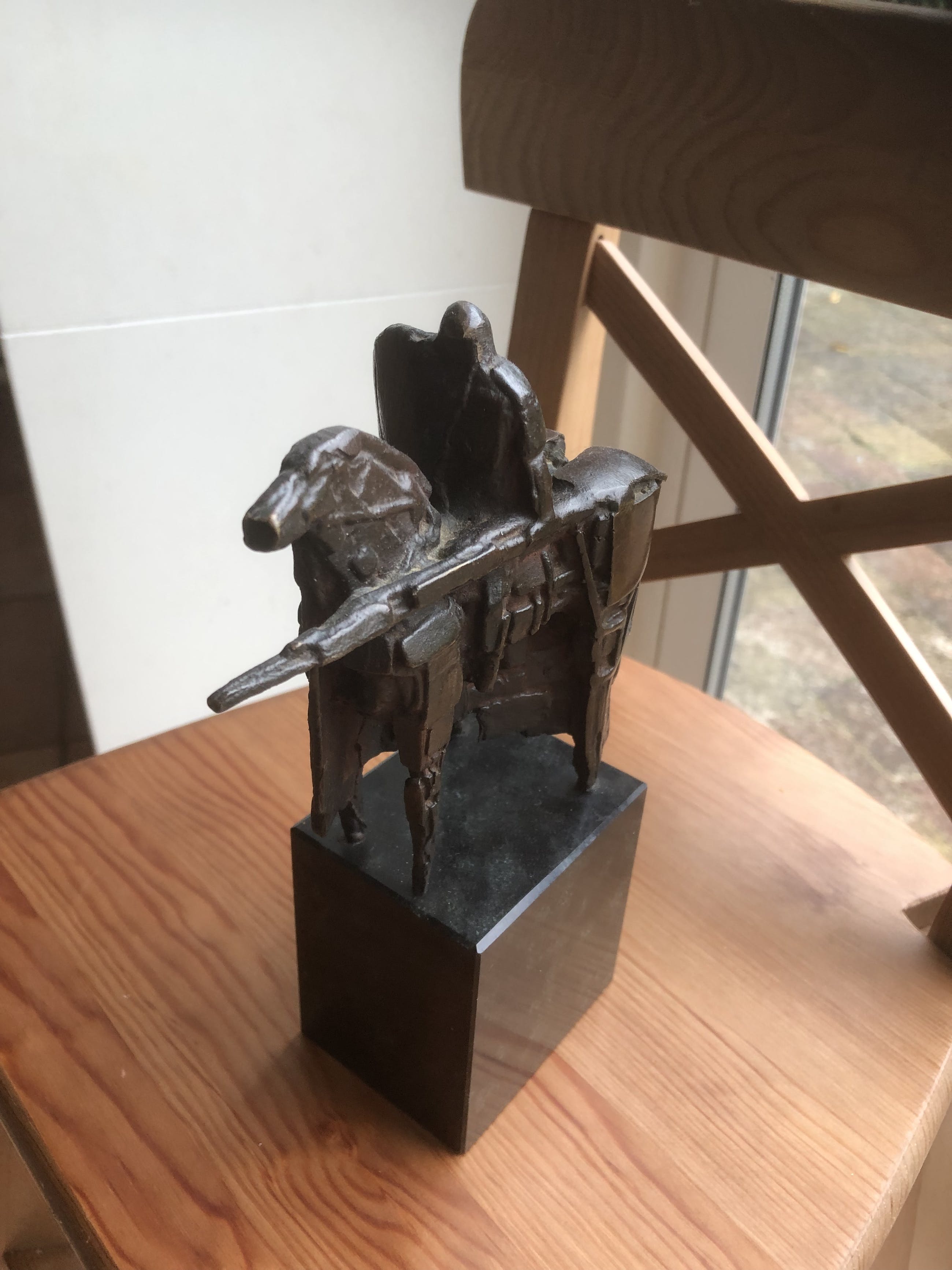Beeldje gemaakt voor medewerkers Nederlandse Bank eind vorige eeuw van ruiter/ridder