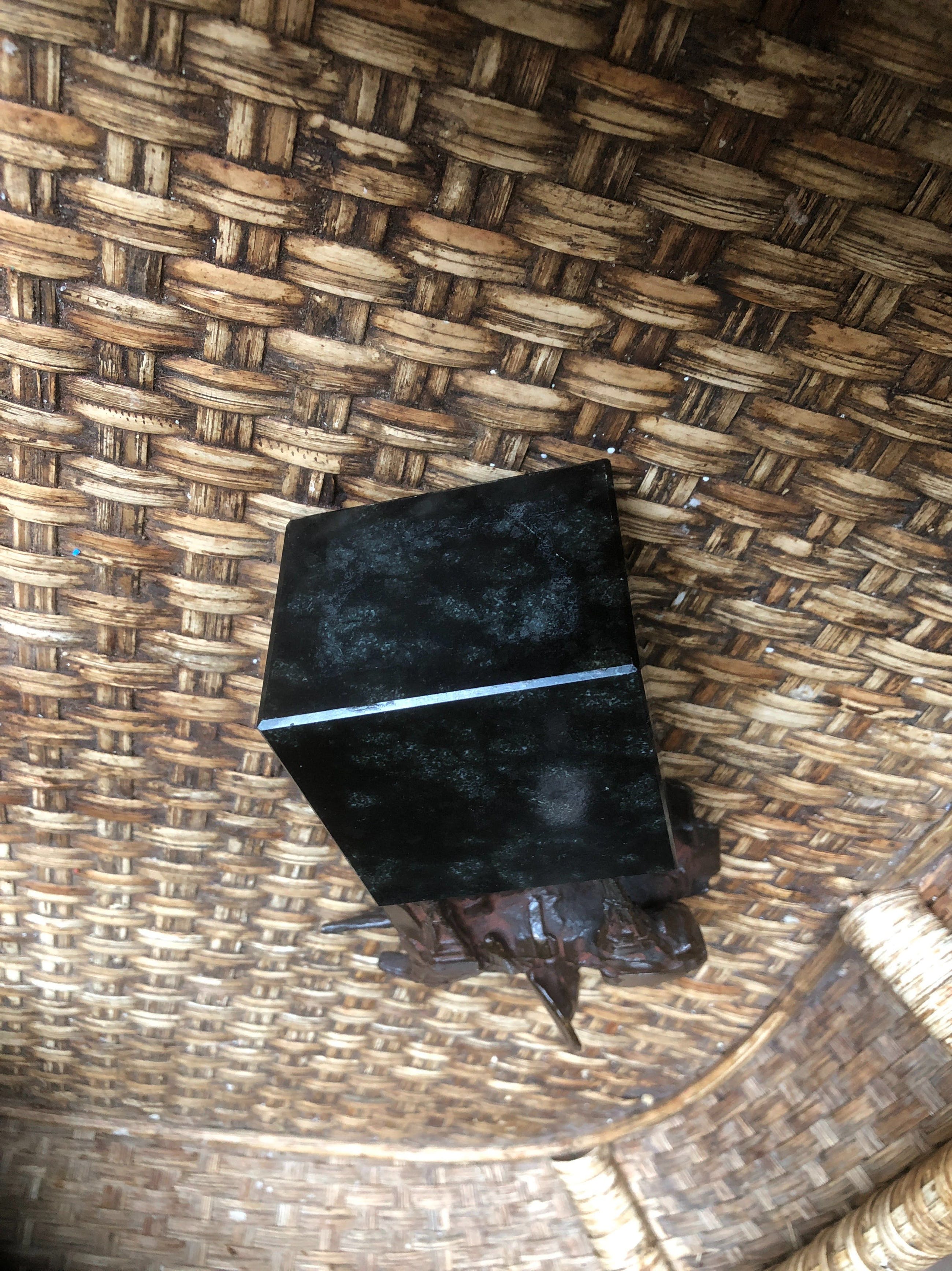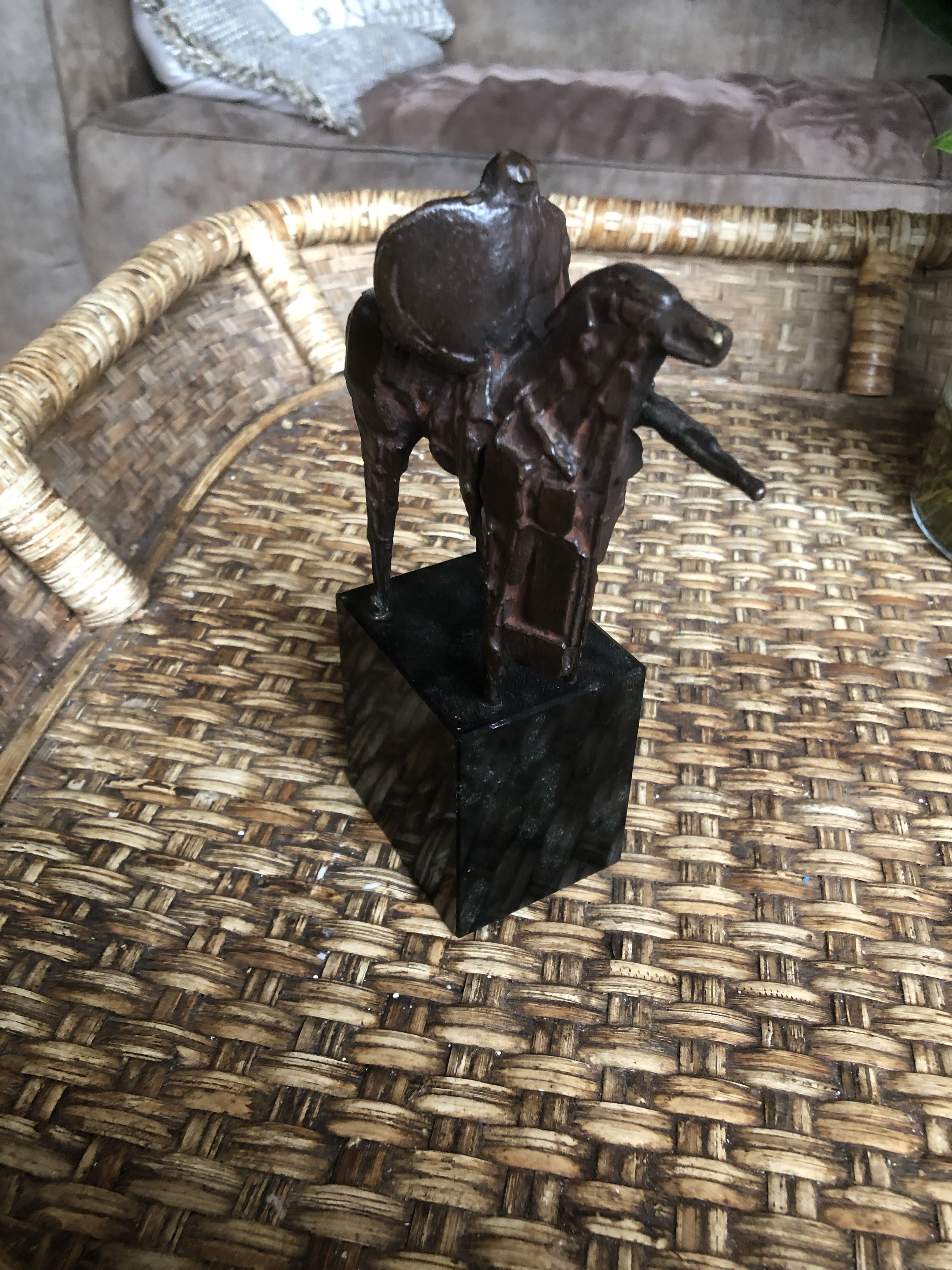 Bronzen beeldje op sokkel van ridder/ruiter gemaakt eind vorige eeuw voor medewerkers Nederlandse bank