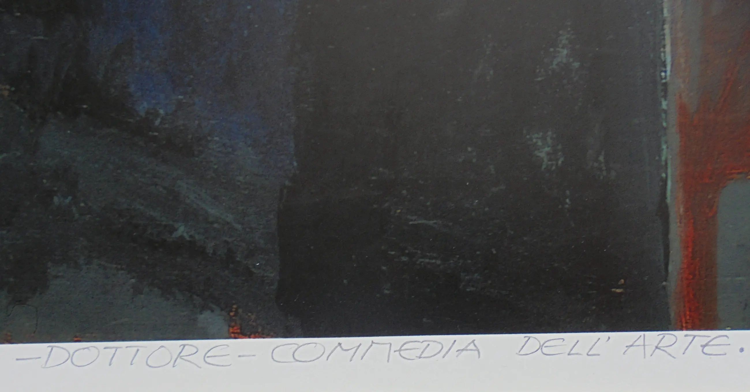 Ingelijste cristal druk van Eric Claus uit 1999. Servetta. Afkomstig uit de serie: Commedia dell 'arte.