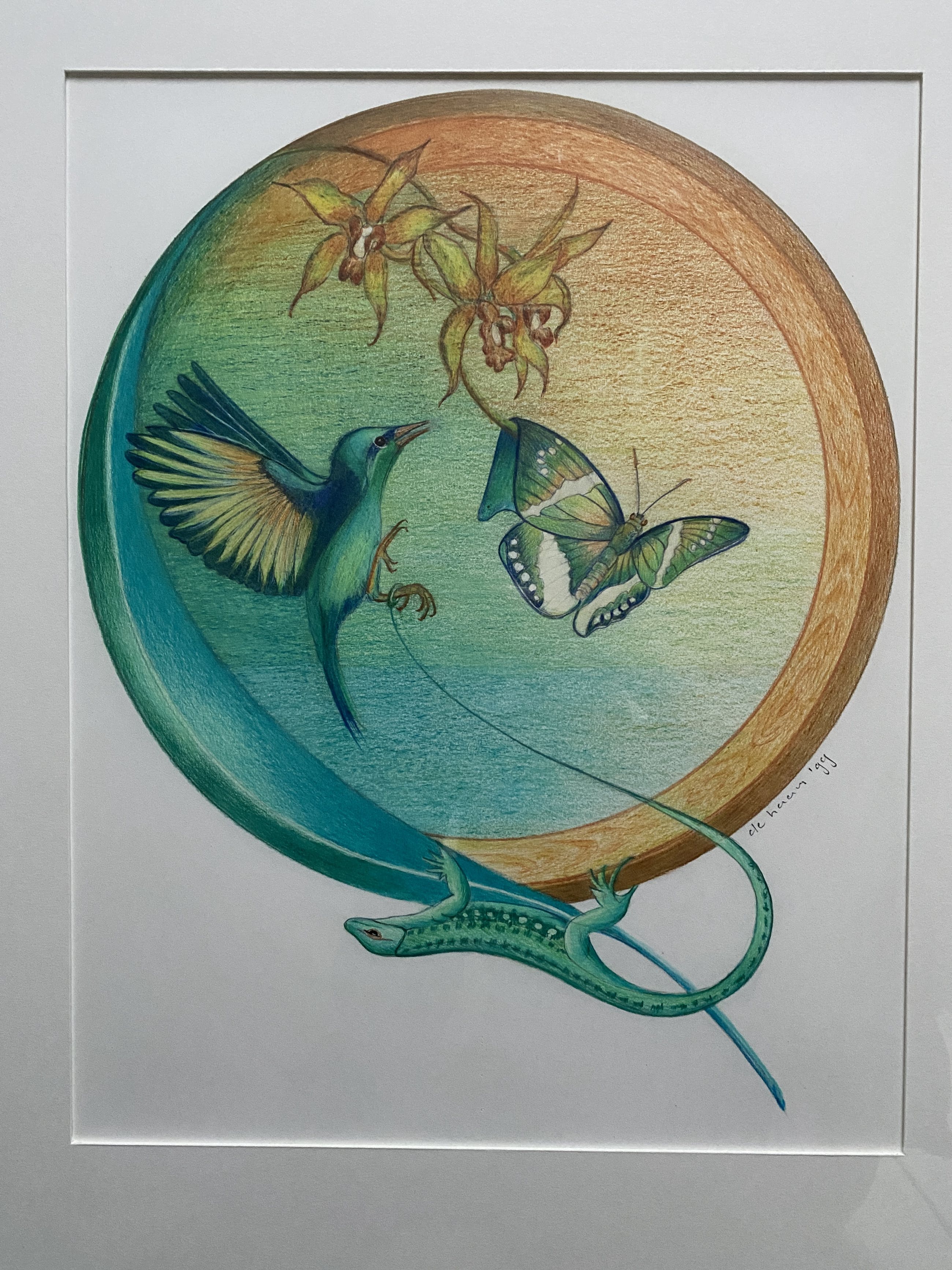 Eric de Haan (1947-2021) studeerde aan de kunstacademie in Utrecht en heeft hier verschillende studierichtingen voltooid: grafische vormgeving en monumentale en versierende kunst. Sinds de tachtiger jaren heeft hij zich gespecialiseerd in het tekenen met kleurpotlood, hij had in de loop der jaren vele exposities met zijn kleurpotlood tekeningen. Eric had een voorkeur voor het maken van thematische series. De natuur en alles wat daarmee samenhangt is altijd een belangrijke inspiratiebron voor hem geweest. Ook haalde hij veel inspiratie uit de vele reizen die hij maakte. Rust en ruimte is een terugkerend thema in al zijn werken. Zijn werk is niet direct onder een noemer te brengen. Je zou het magisch realisme kunnen noemen, maar Eric gebruikte liever de term ‘fantastisch realisme’.