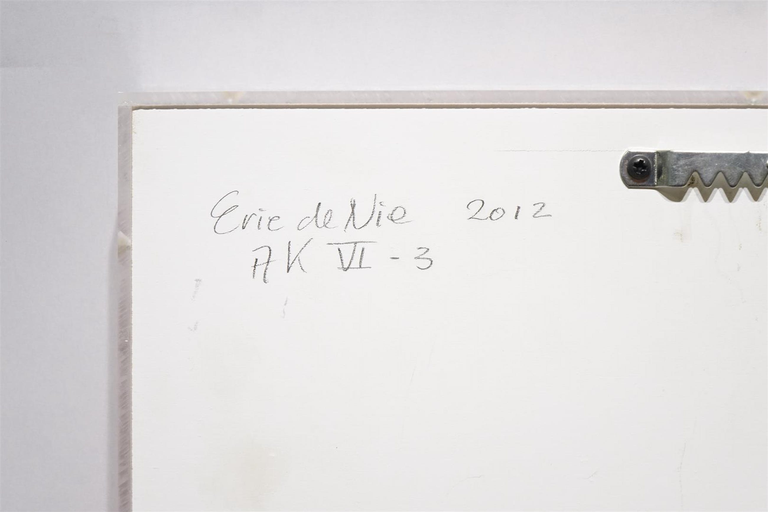 Prachtige geometrische aquarel van Eric de Nie. Jaar: 2012. Het werk is op de achterzijde van de lijst gesigneerd en op de achterzijde van de aquarel. Herkomst: collectie bekende kunstverzamelaar.