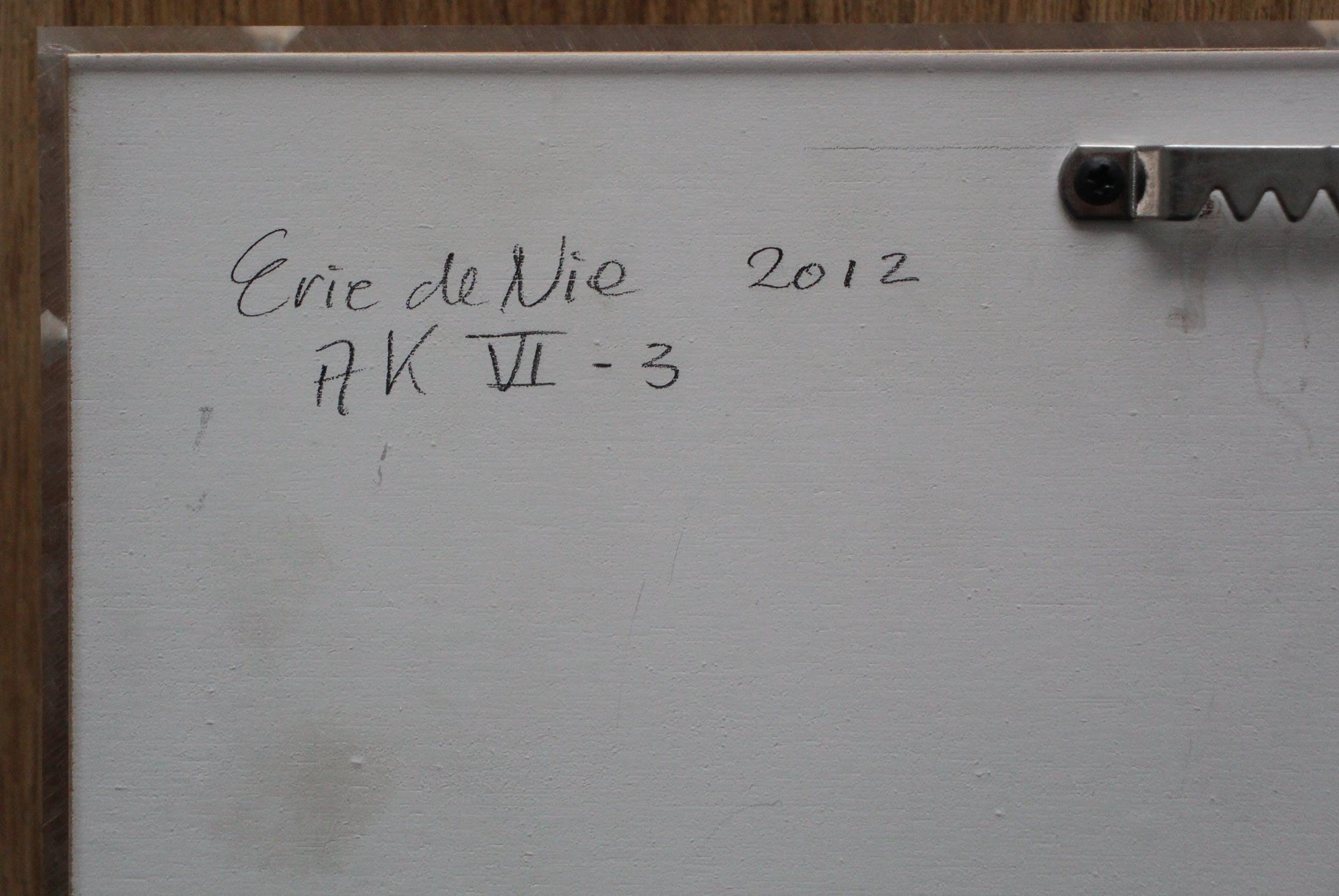 Prachtige geometrische aquarel van Eric de Nie. Jaar: 2012. Het werk is op de achterzijde van de lijst gesigneerd en op de achterzijde van de aquarel. Herkomst: collectie bekende kunstverzamelaar.