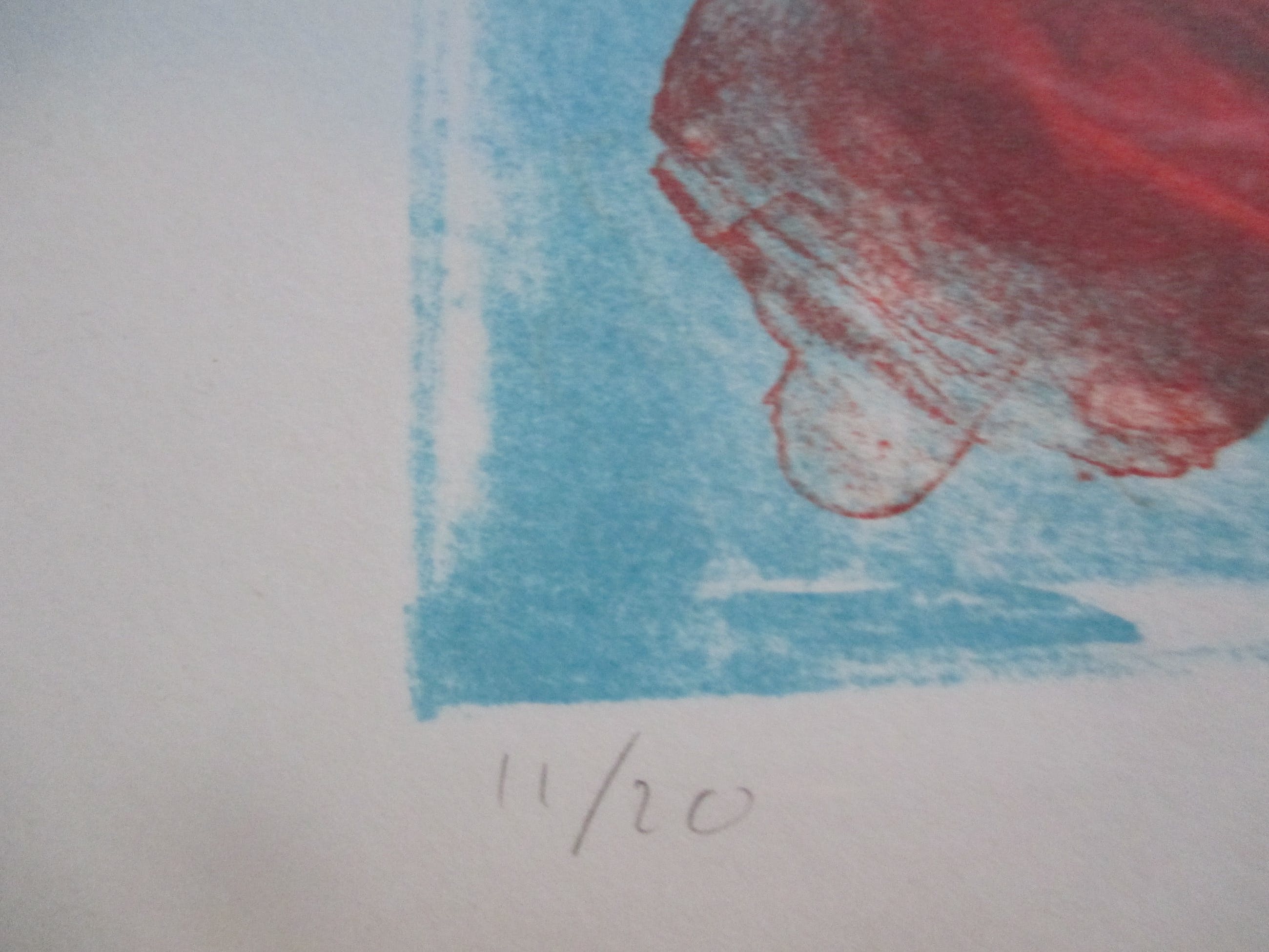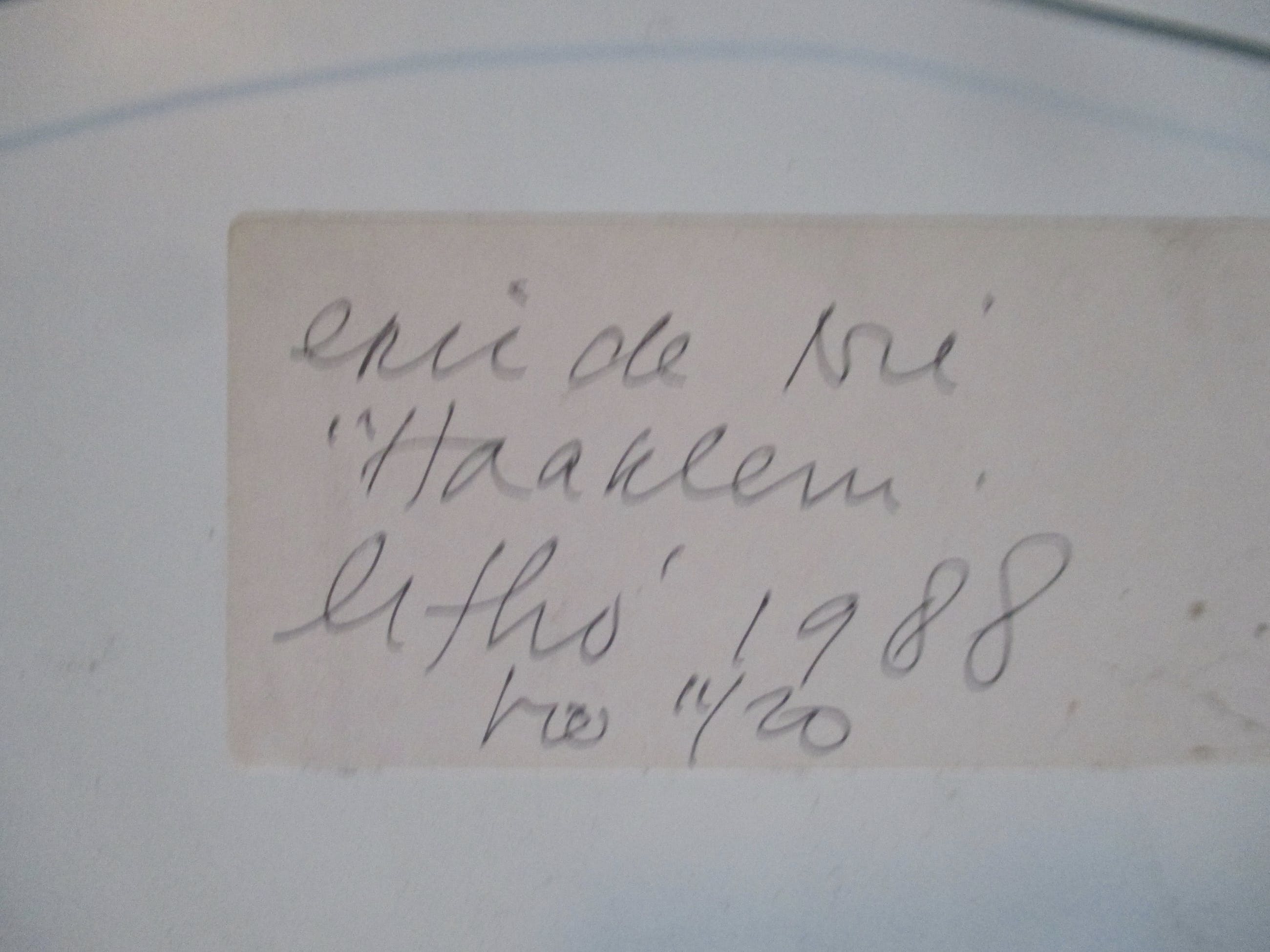 Litho van Eric de Nie, gesigneerd, genummerd en gedateerd in potlood. Ingelijst achter glas in witgelakte aluminium lijst.