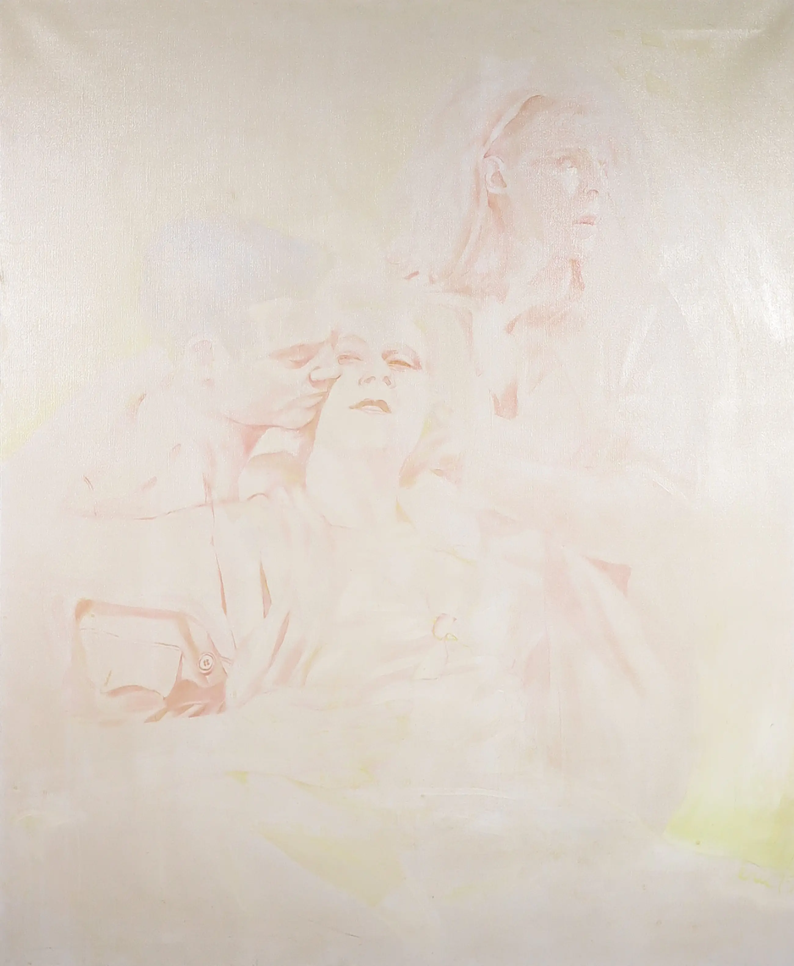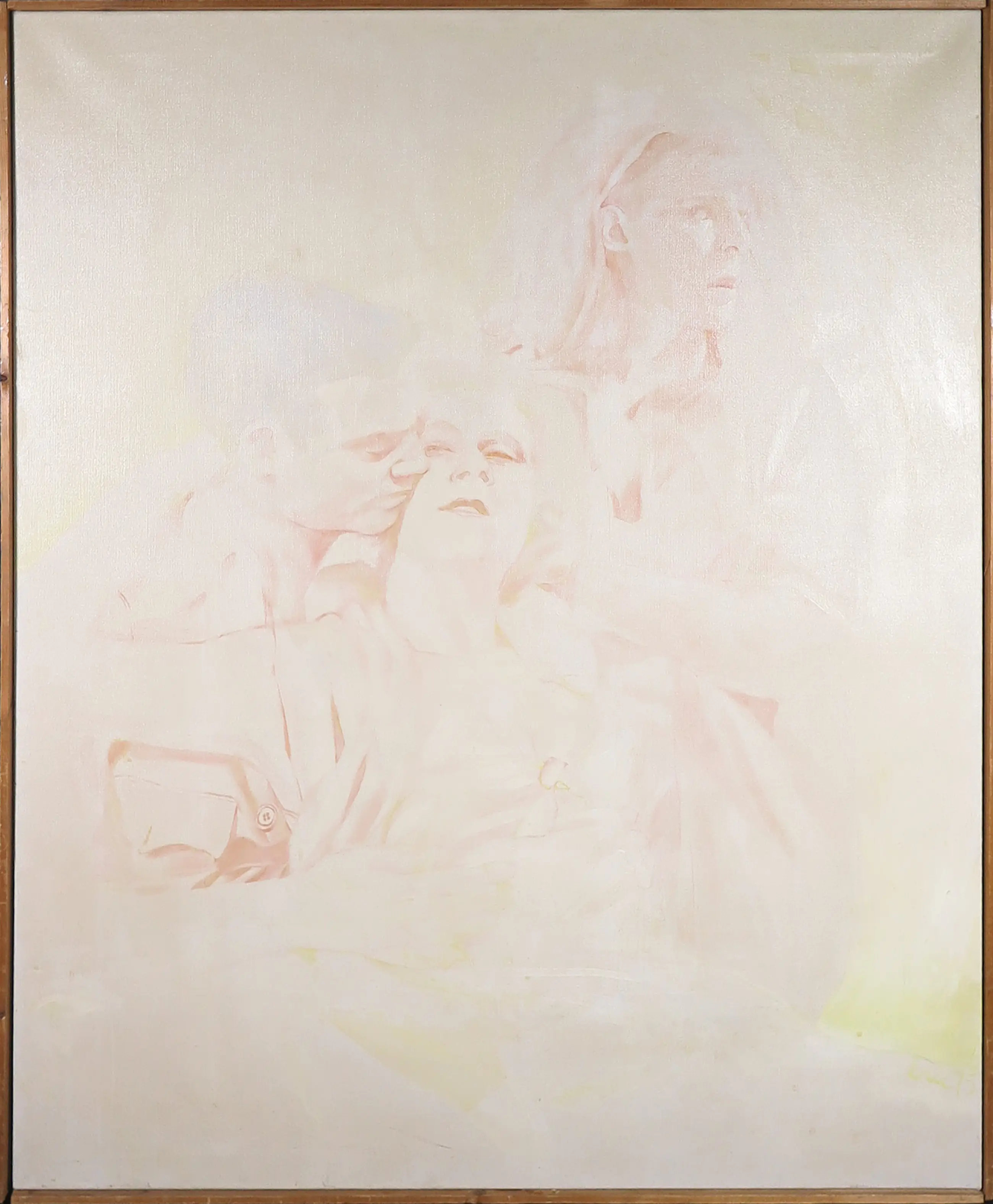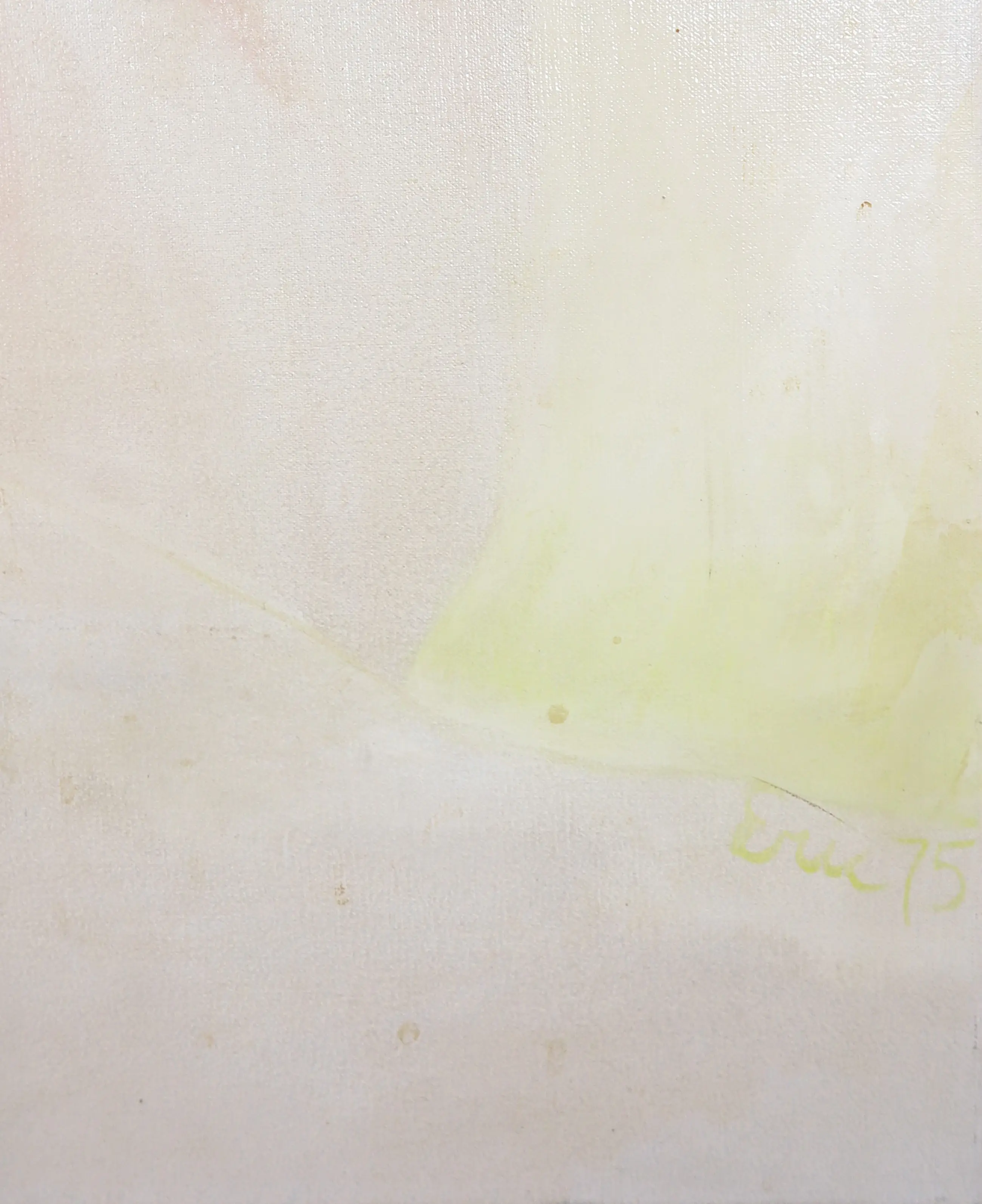 Het doek is hier en daar wat vuil en er zijn op enkele plekken wat vlekjes zichtbaar. (Zie foto's) | |
