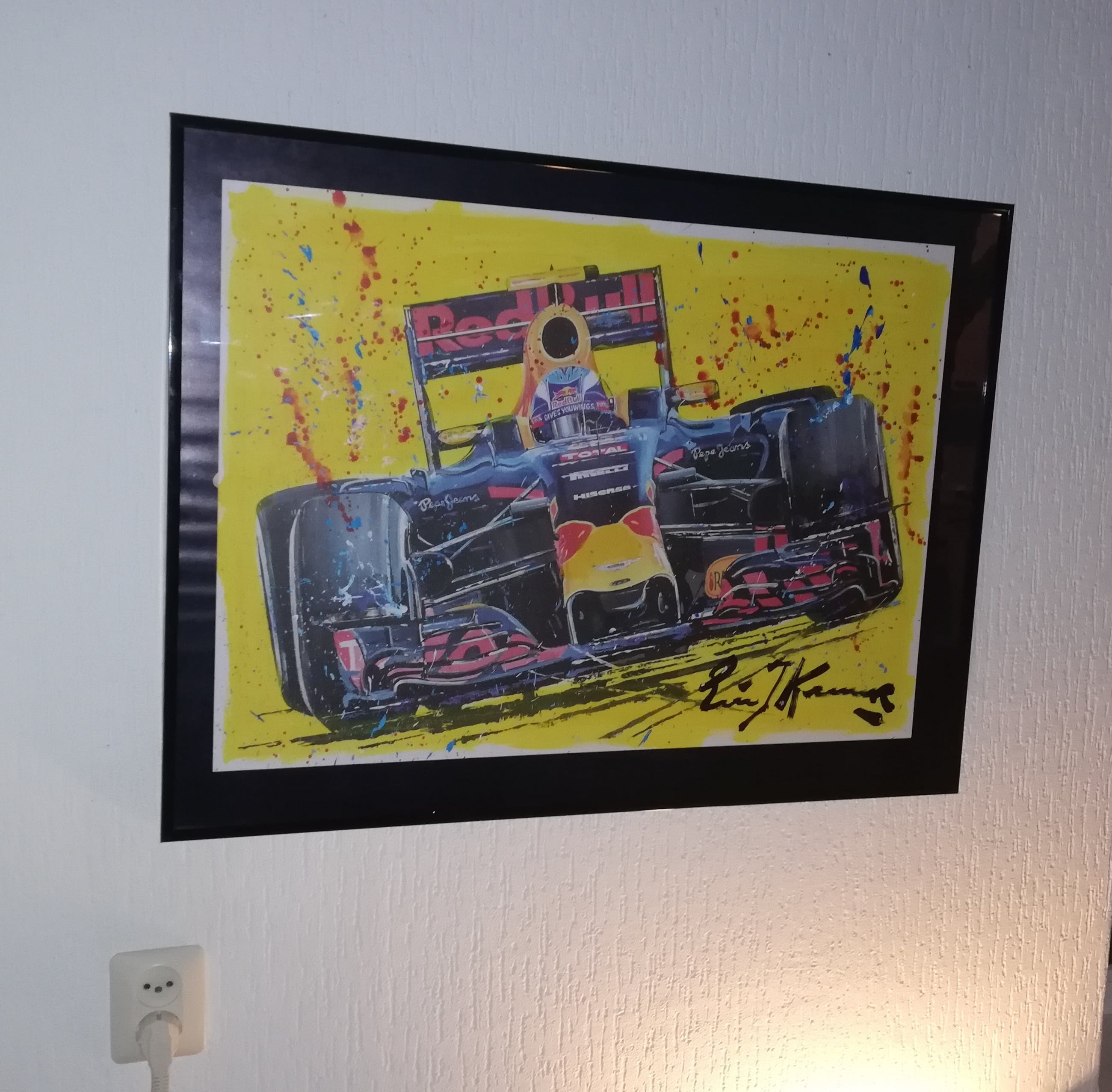 Originele ingeschilderde giclee van de bekende F1 kunstenaar. Een echte collectors item. Voorzien van drip and splash techniek, waardoor elk kunstwerk uniek is. De verfspatten vliegen bijna letterlijk de lijst uit. Geweldige eyecatcher in bv woonruimte,bedrijfsruimte, winkel, ontvangstruimte etc.. Met lijst alleen ophalen in Abbekerk of Monnickendam. Verzenden is ook mogelijk maar zonder lijst. Word dan verzonden in een koker. Verzendkosten voor de koper.