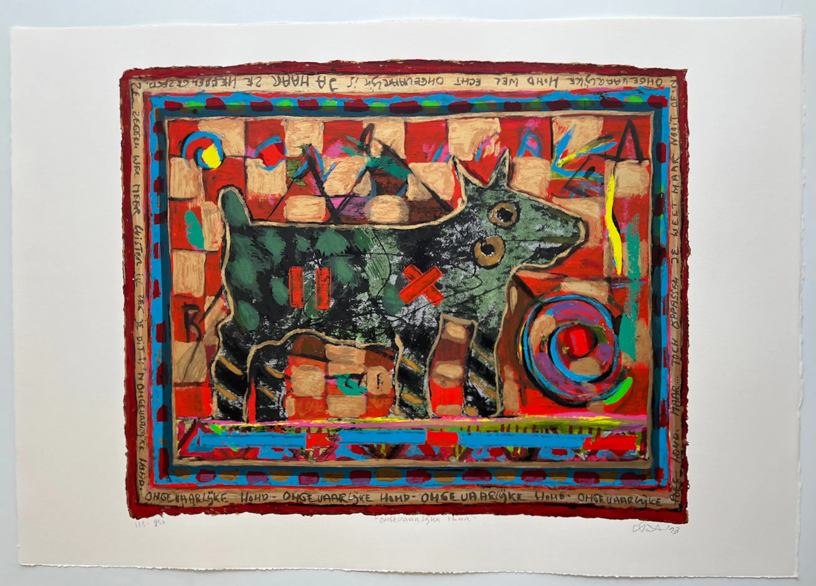Eric Toebosch - handgesigneerde zeefdruk | 'Ongevaarlijke hond'| 1993