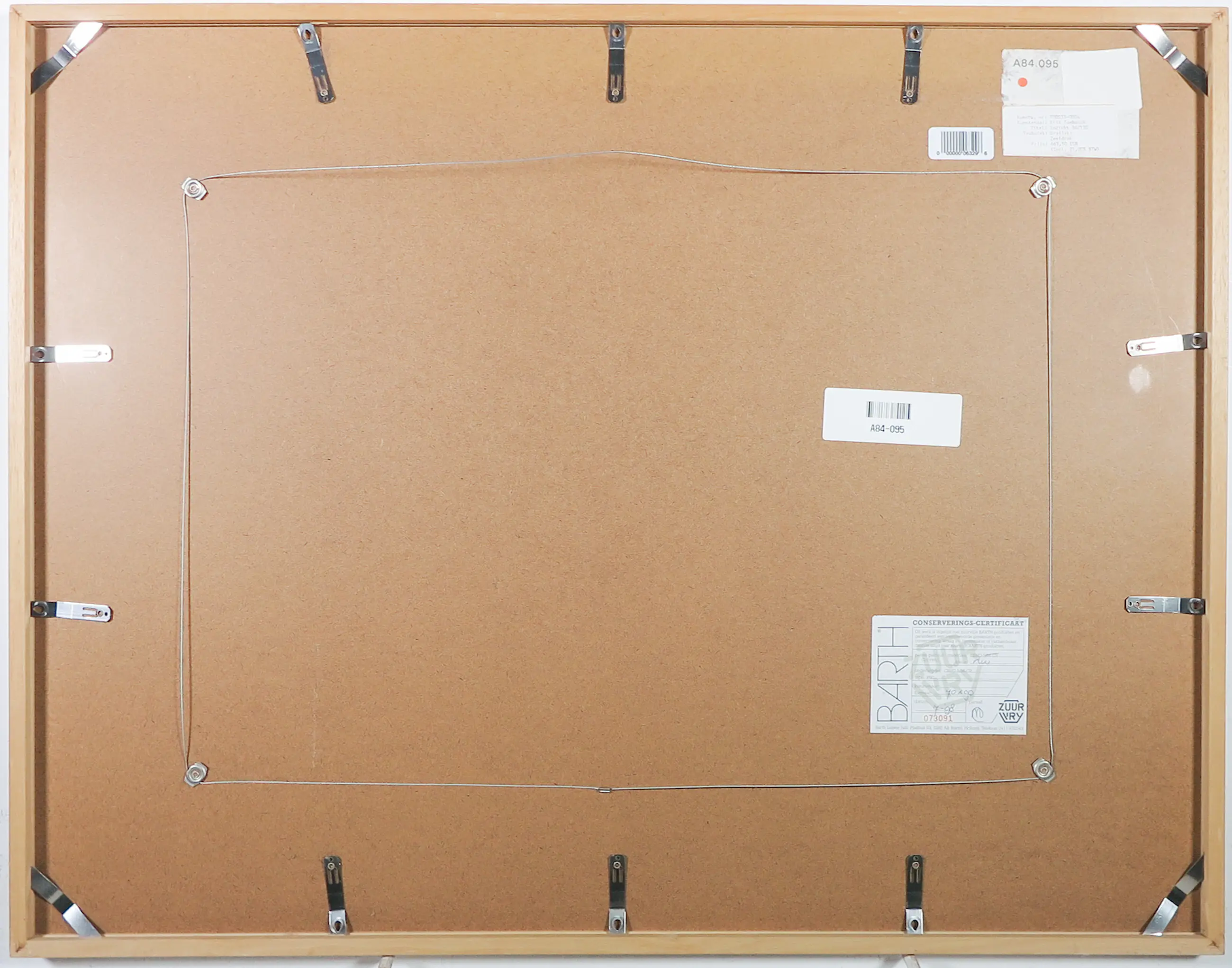 Passe-partout/lijsten: Beschadigingen aan lijsten worden niet beschreven. Indien een werk achter glas is ingelijst en het glas gebroken is, zal dit wel vermeld worden. Passe-partouts worden op geen enkele manier gegarandeerd en ook niet altijd meegezonden.