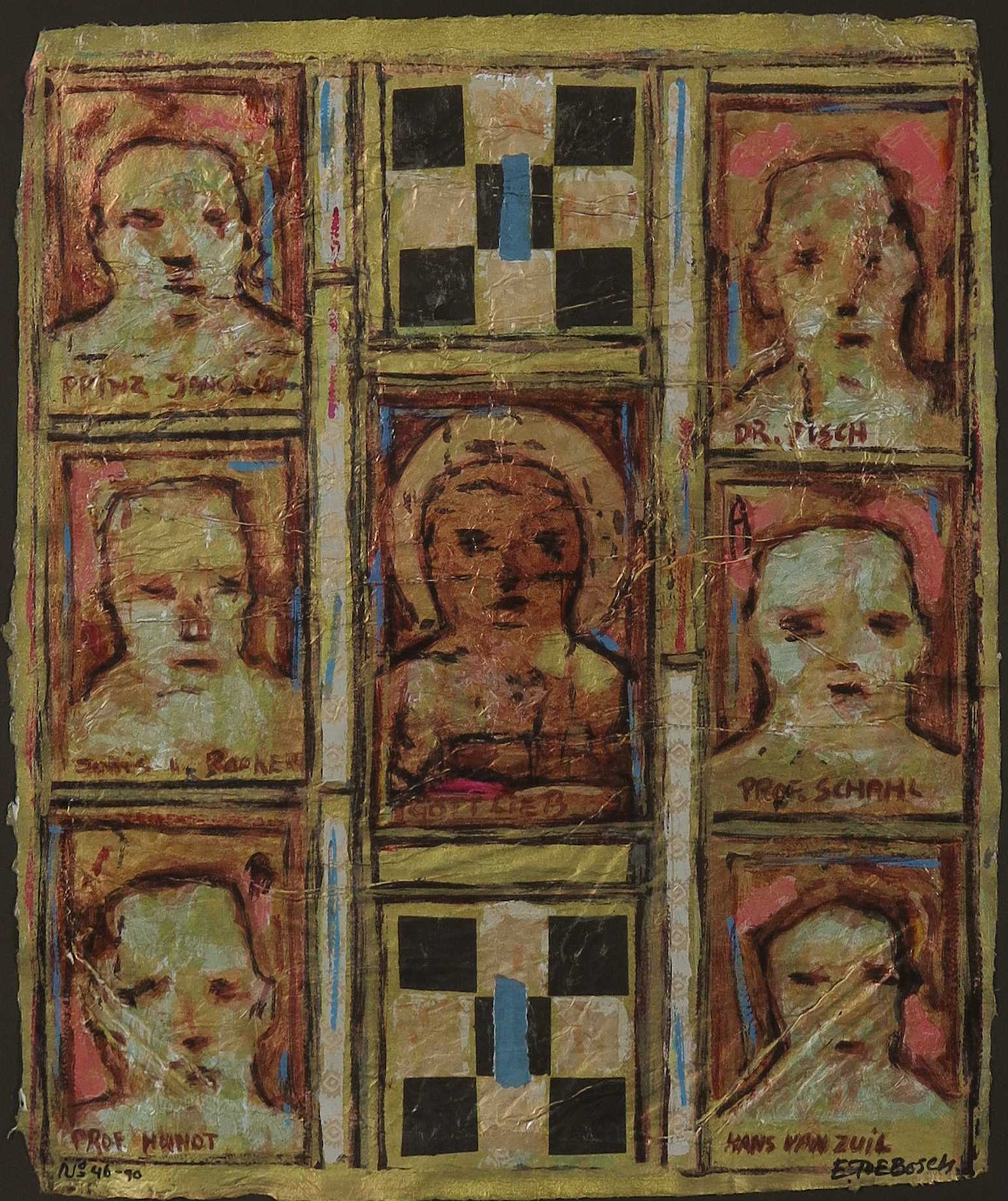 Passe-partout/lijsten: Beschadigingen aan lijsten worden niet beschreven. Indien een werk achter glas is ingelijst en het glas kapot is, zal dit wel vermeld worden. Passe-partouts worden op geen enkele manier gegarandeerd en ook niet altijd meegezonden. Alleen als een werk niet uit het passe-partout te halen is, zal dit vermeld worden.