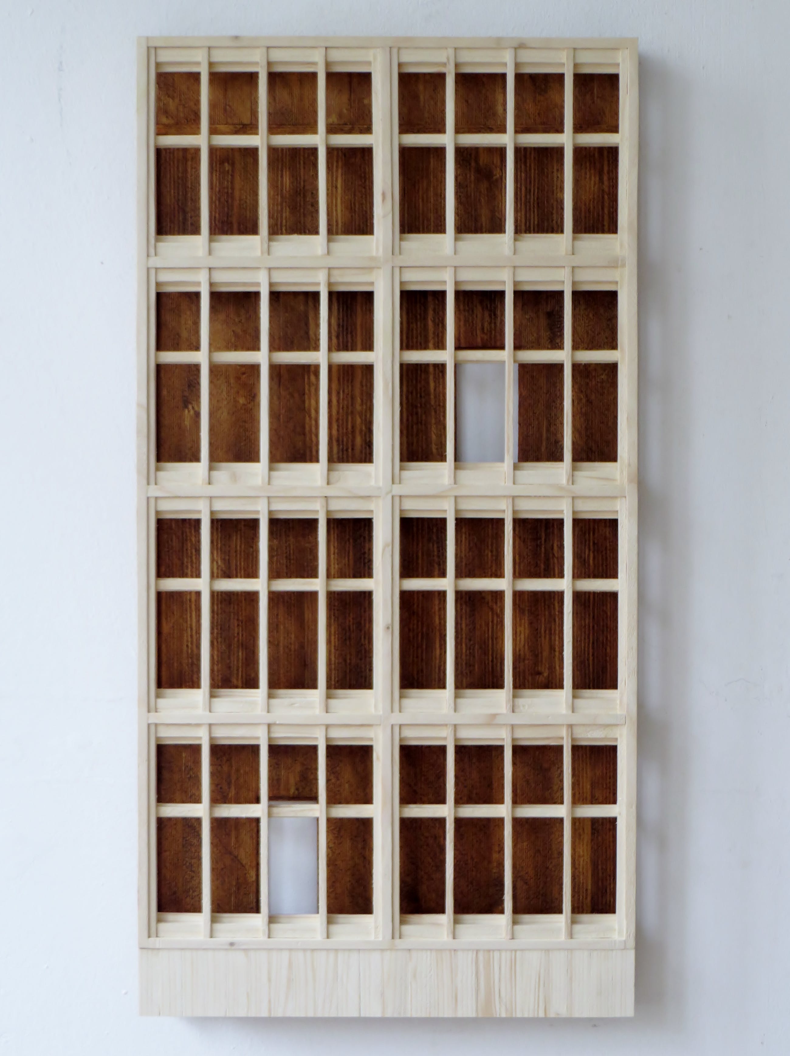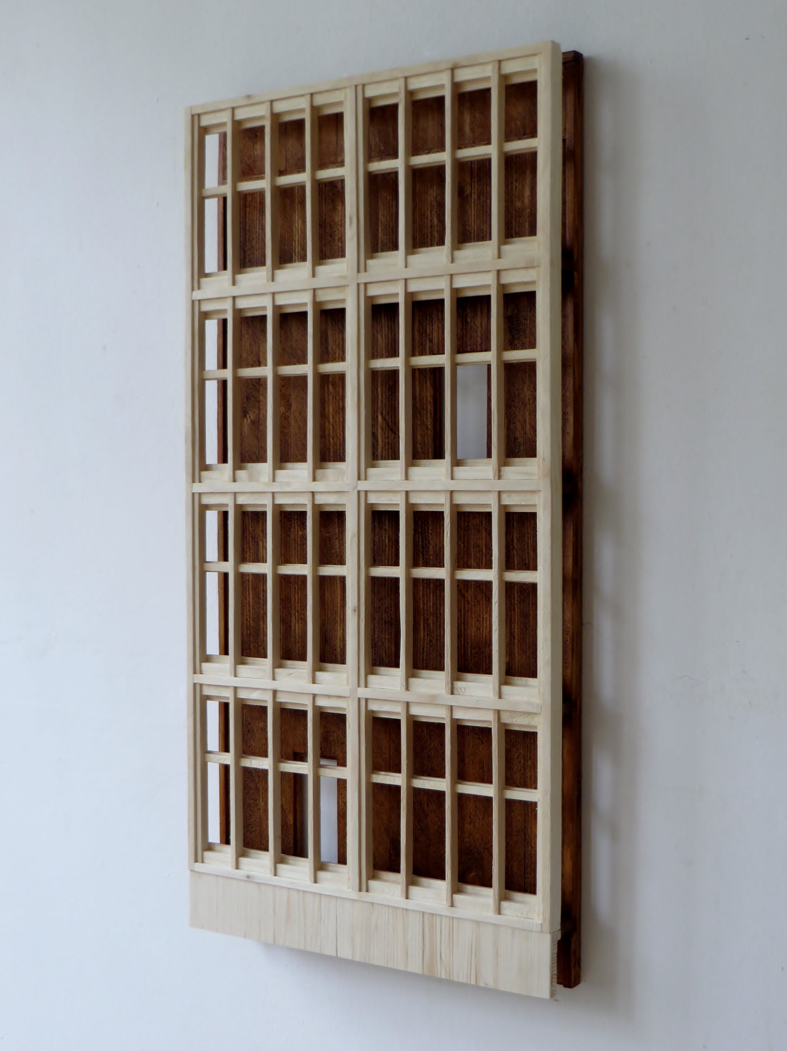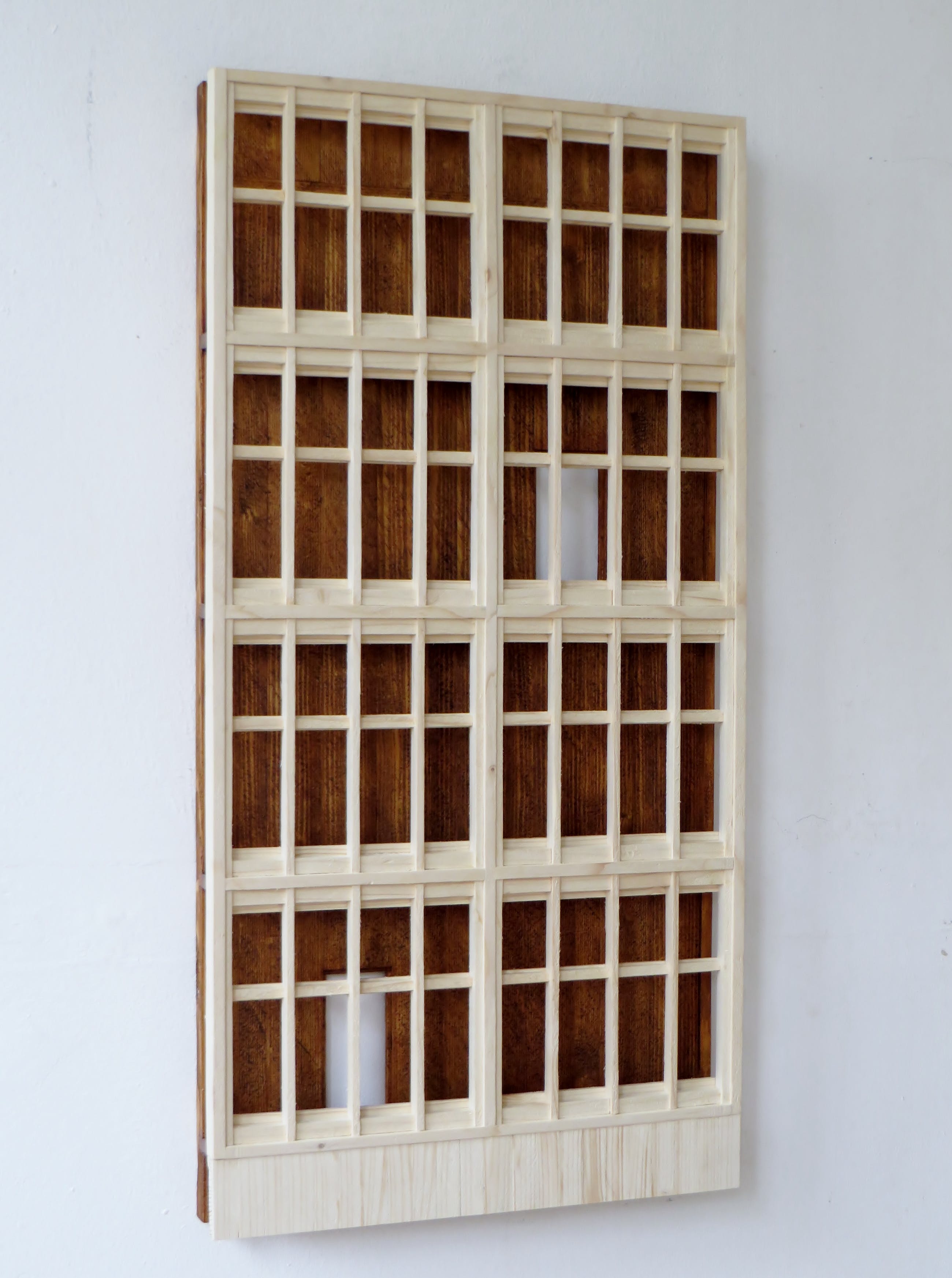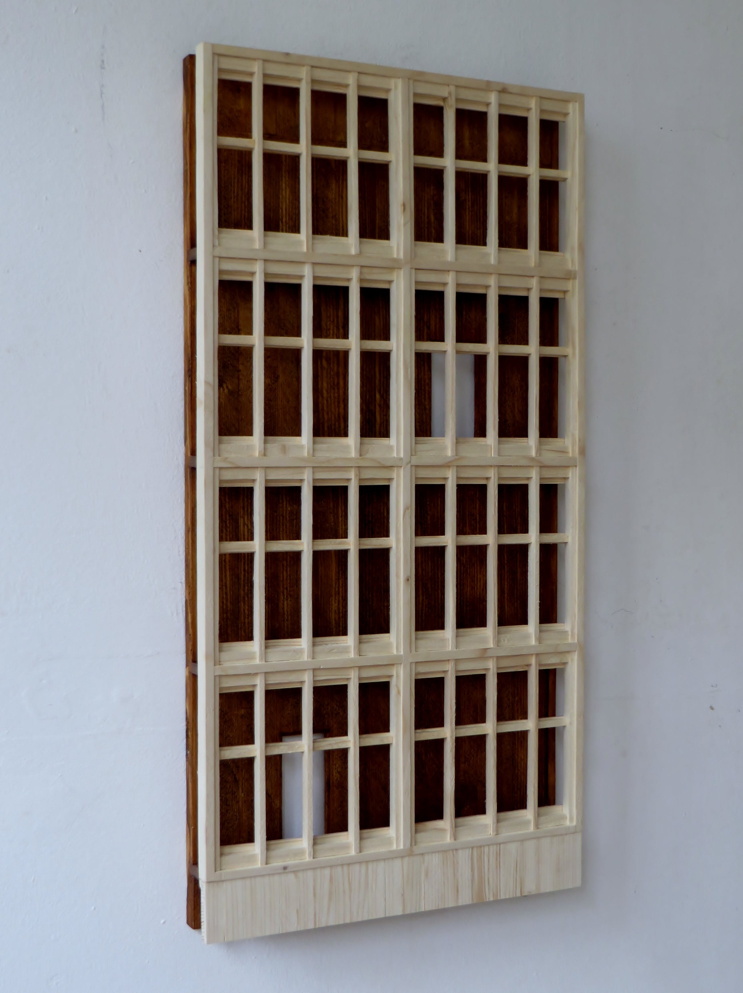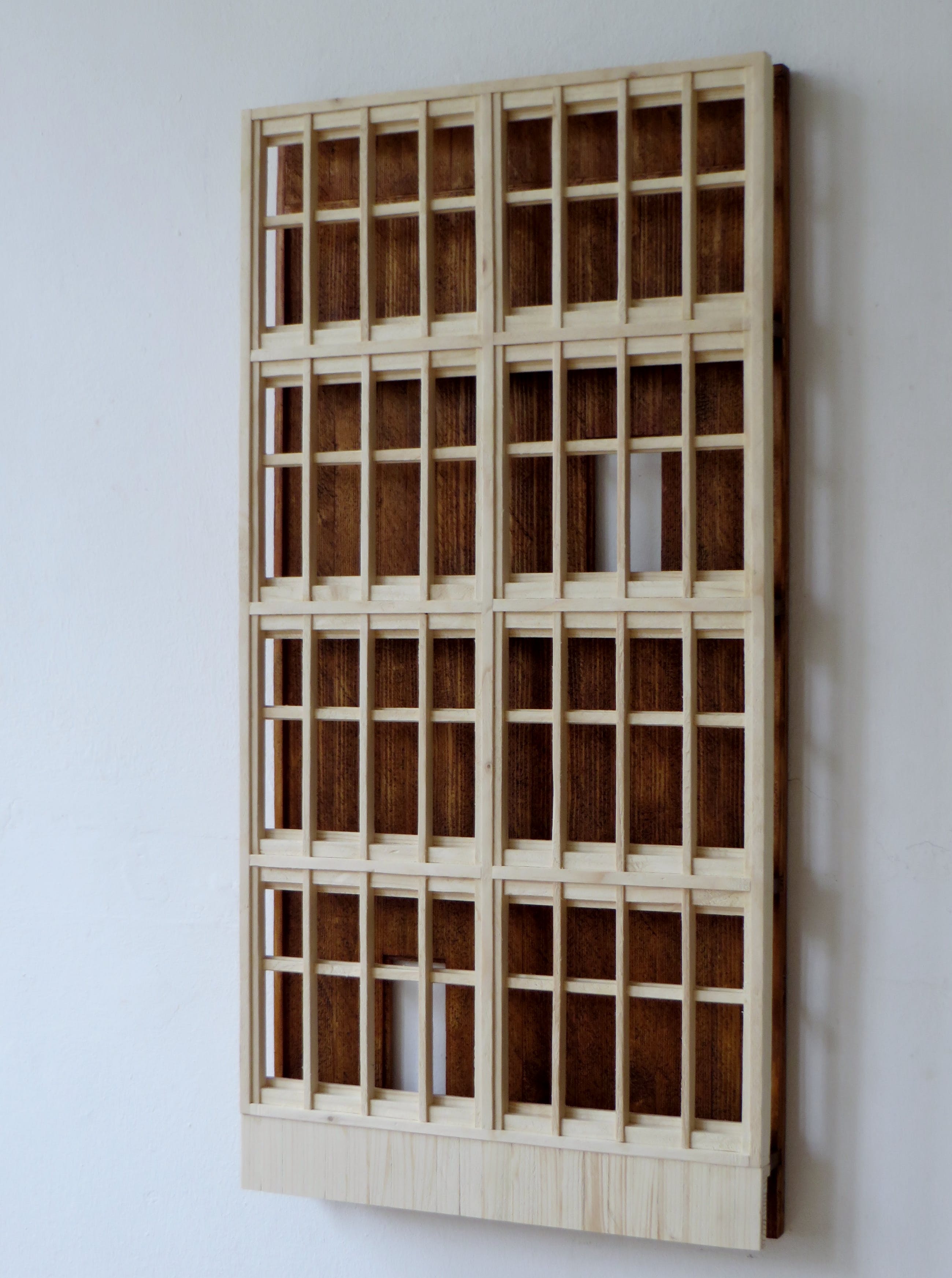 Het houten wandobject is een originele verbeelding van een gebouw. Met 1 schroefhaak aan de muur op te hangen.