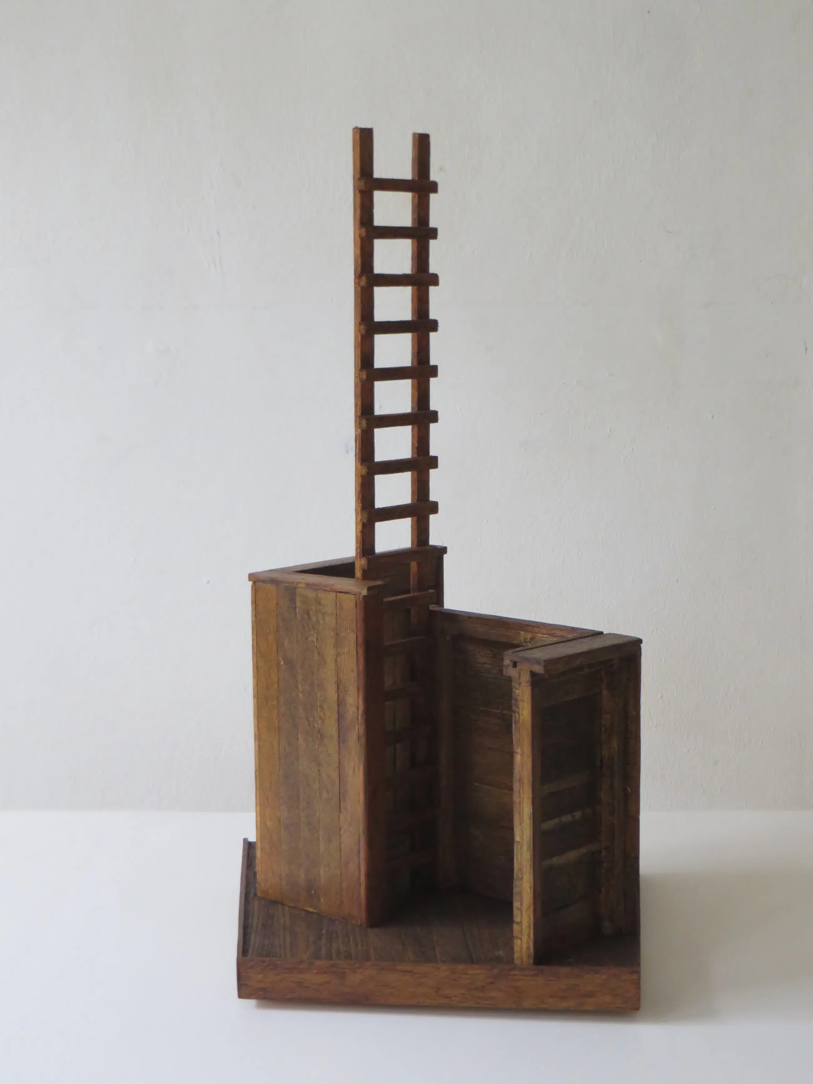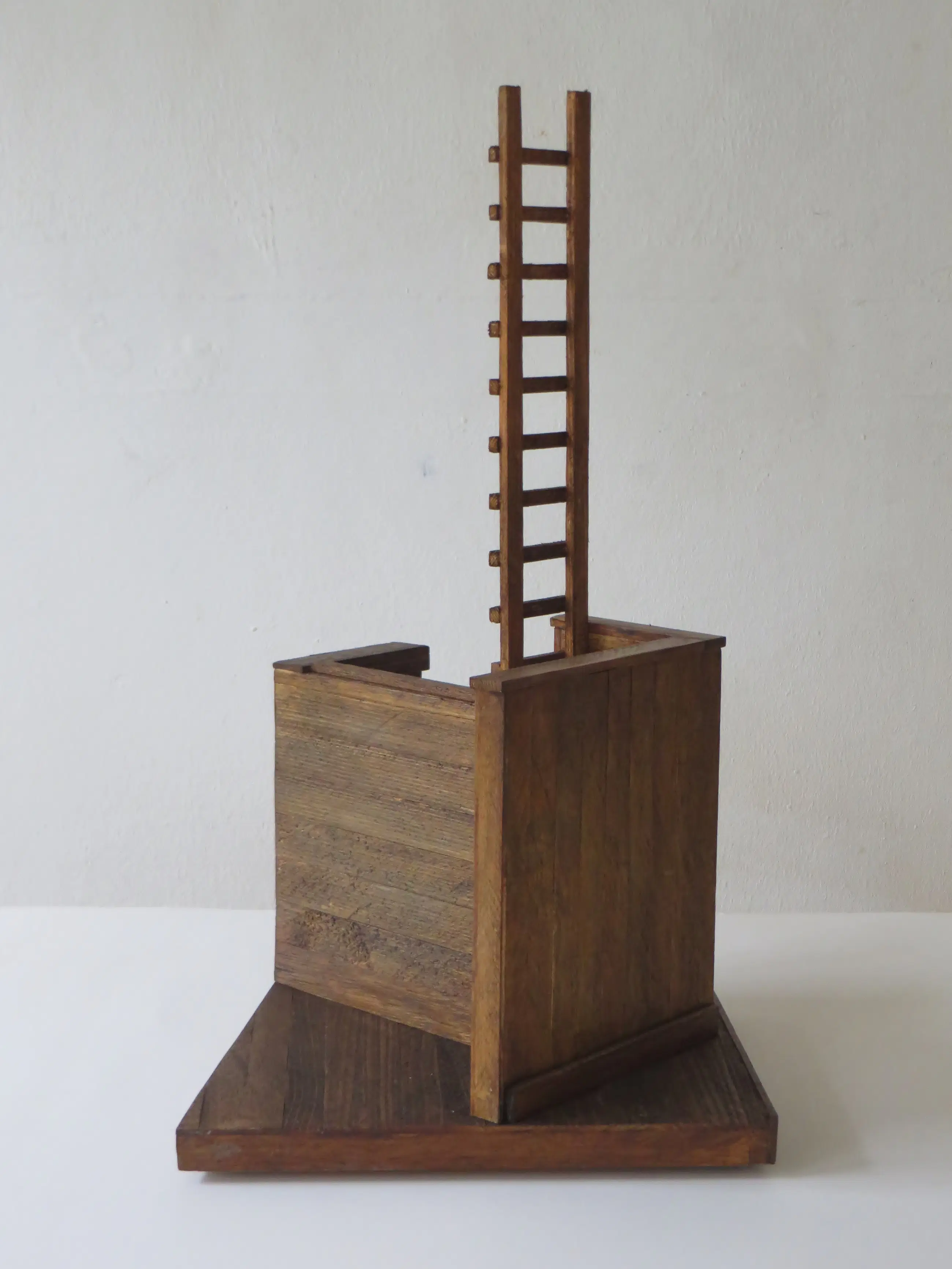 Origineel houten sculptuur verbeeldt de hedendaagse tijd.