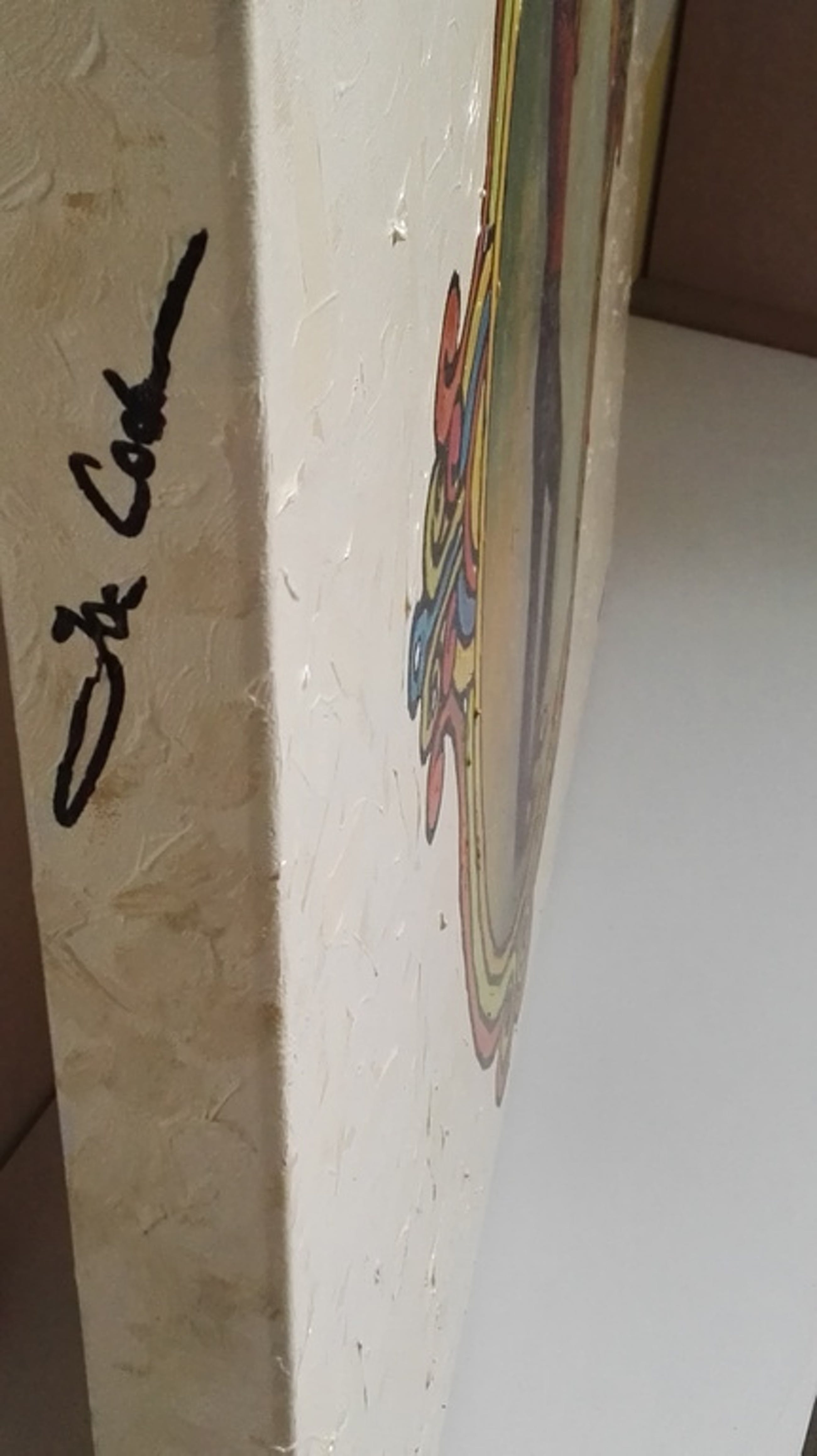 Uniek is , dat Joe Cocker zijn handtekening op de zijkant van dit schilderij heeft gezet