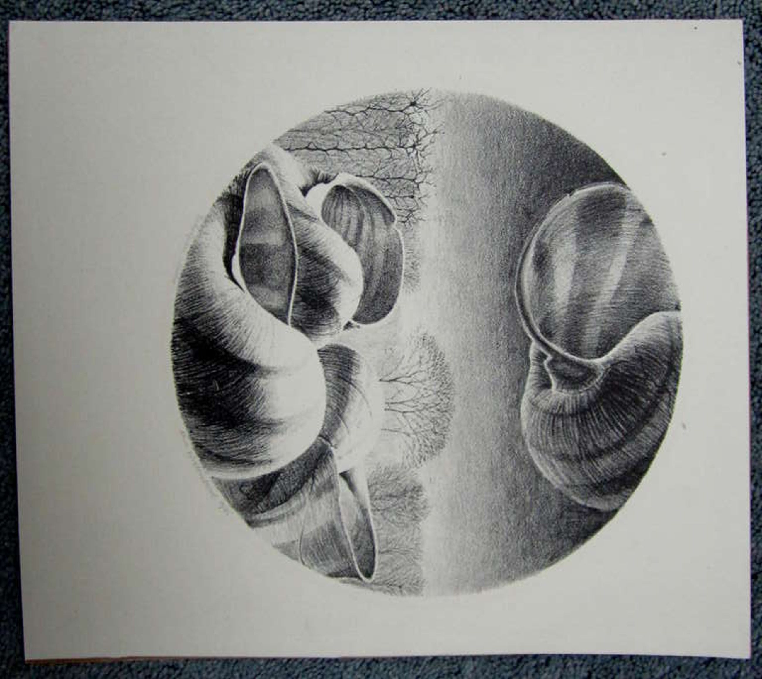 Litho van Eric Wittenberns, schelpen, oplage 14/25,